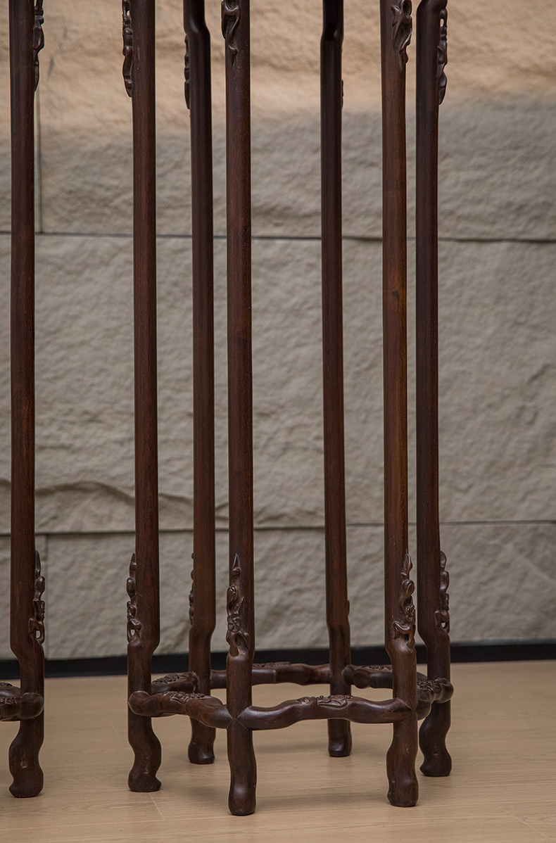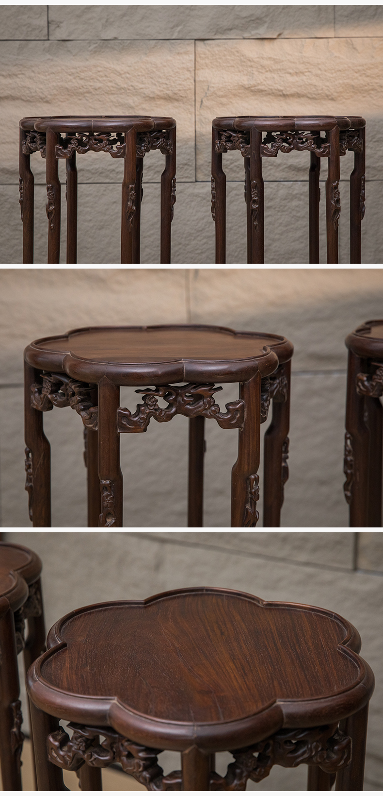 清 红木梅花形六足花几(一对)