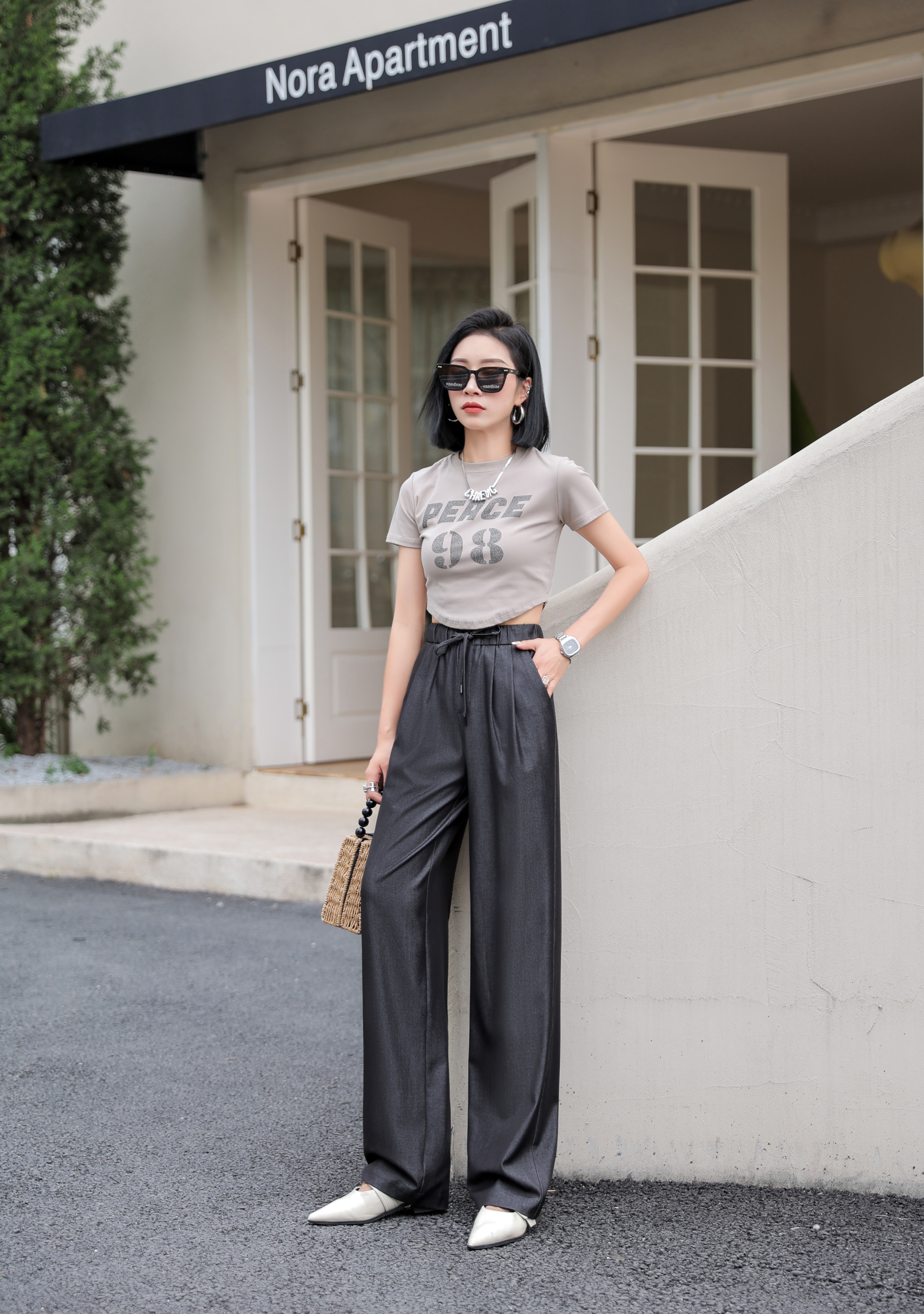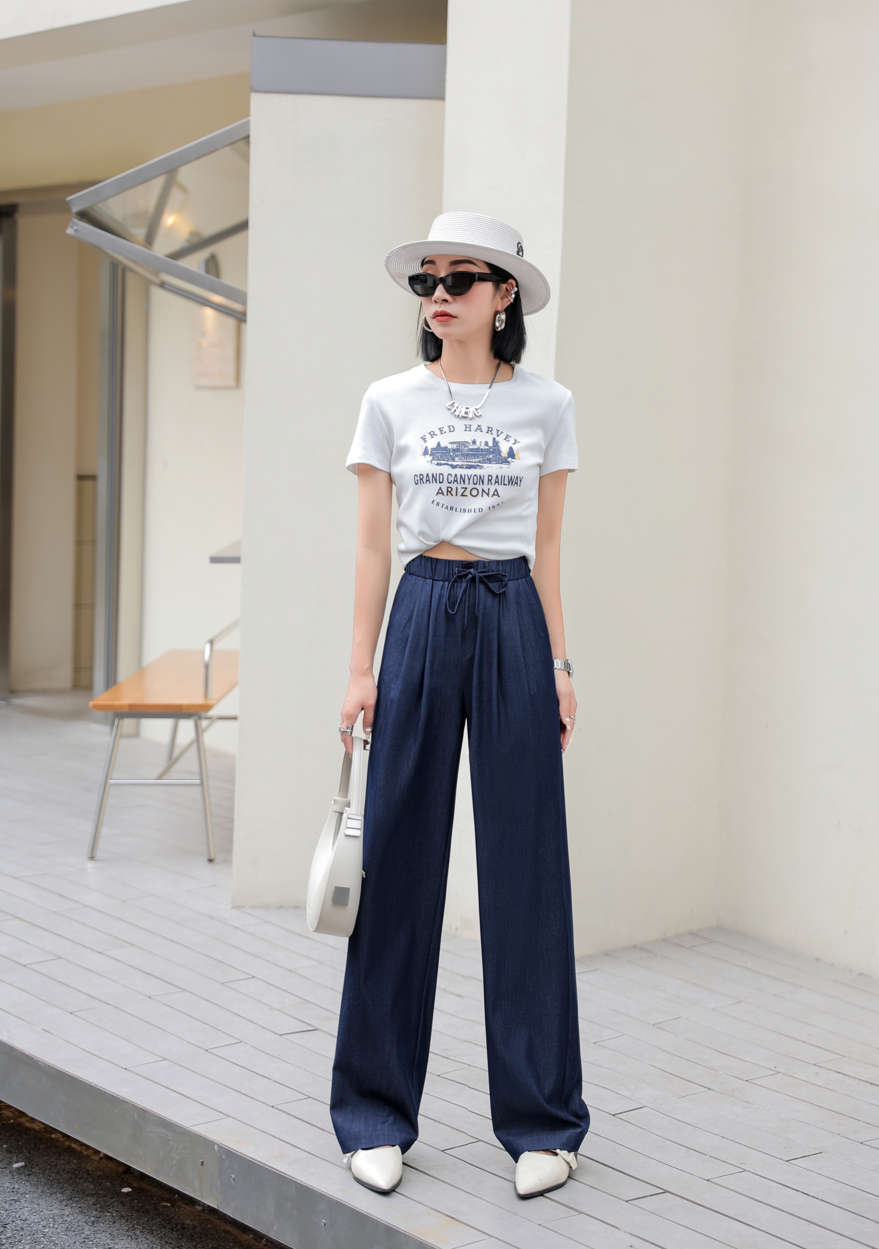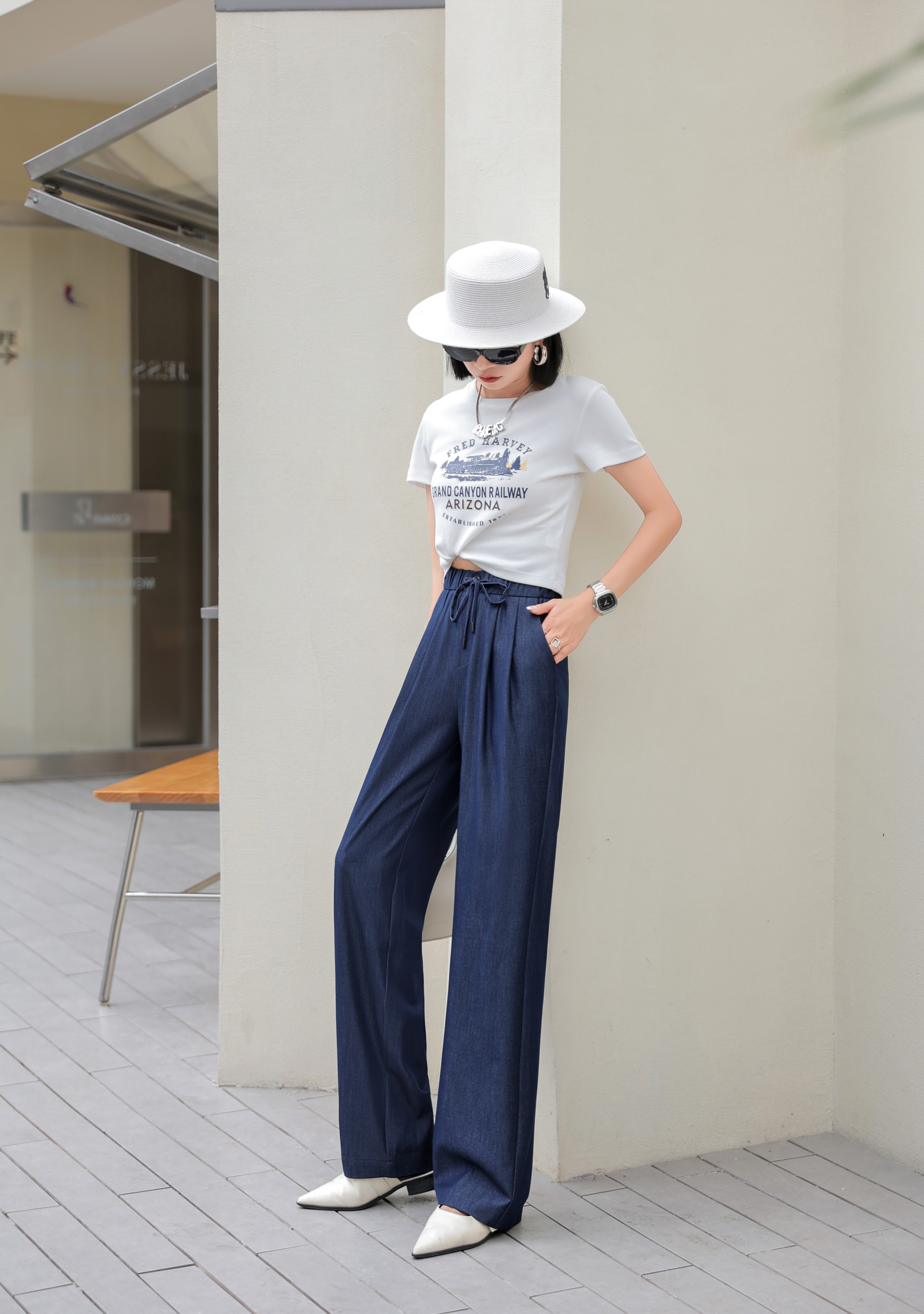 物理凉感科技 采用新型面料,通过吸热速度慢、散热速度快,已达到持续给人体带来清凉感。 面料选好会让日常LOOK变得出彩,柔软面料,垂顺舒适,让你意想不到的舒适。这种阔腿裤版型真的是藏肉显瘦呀~大腿小腿粗的穿上真的看不出来啦~上镜后ins博主就是你~重点是它还不显胯宽,垂感指数满满!!!一穿即瘦,一条懂你的裤子,即穿即瘦~ #穿起来|高一截# 显瘦藏肉版型,腰头抽绳设计包容度up