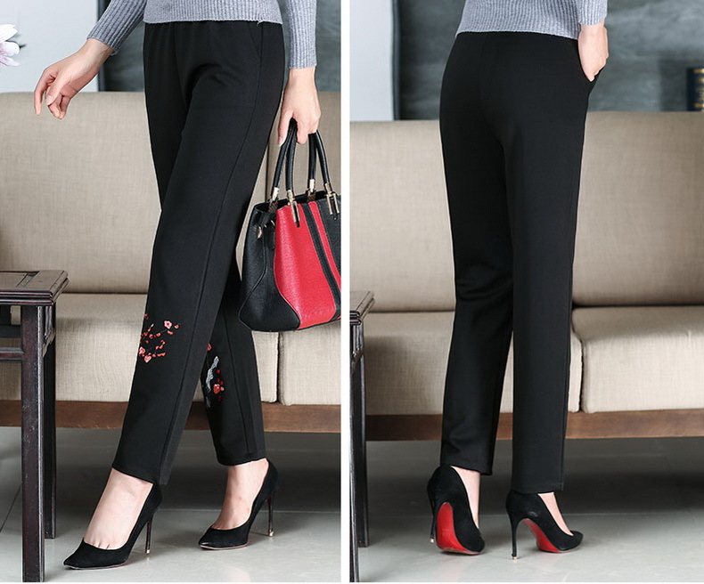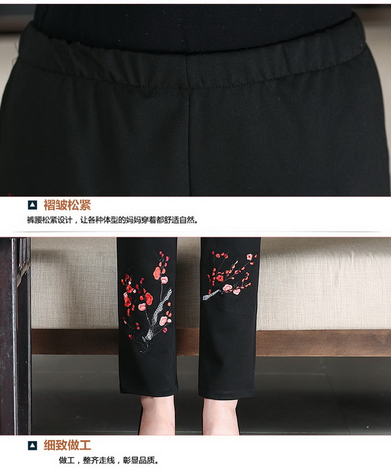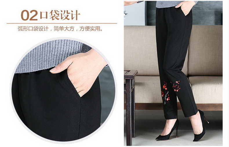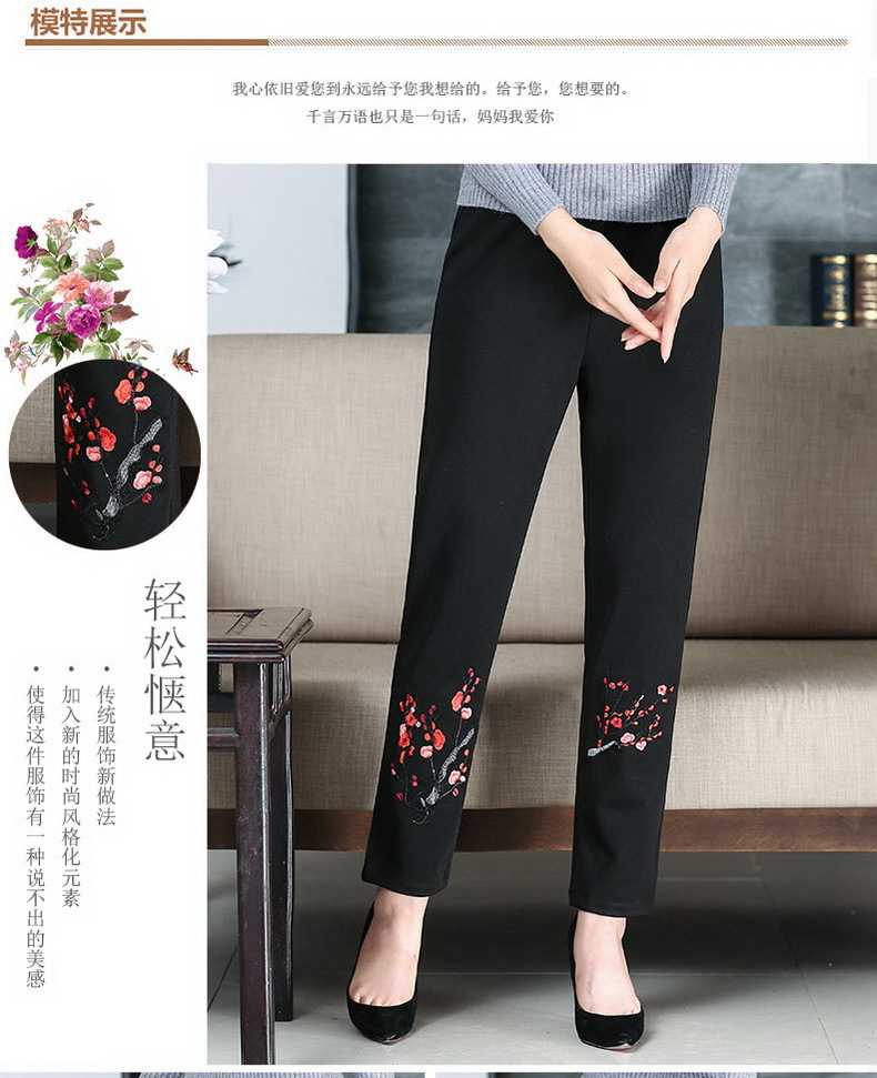 YSM-75P-707女松紧腰妈妈装绣花裤子女新款休闲裤