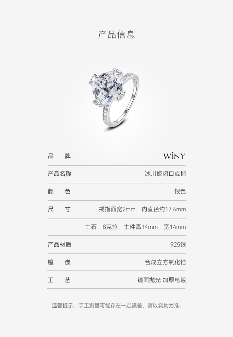 Winy925纯银冰川姬戒指送女友闺蜜节日生日礼物