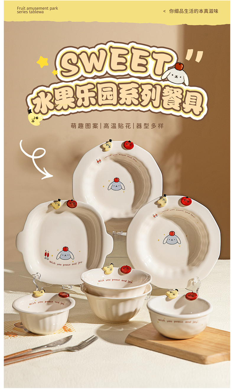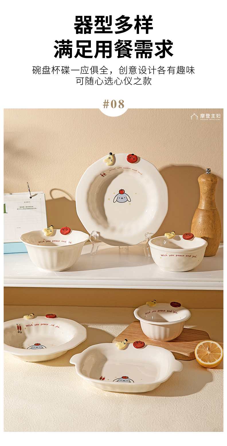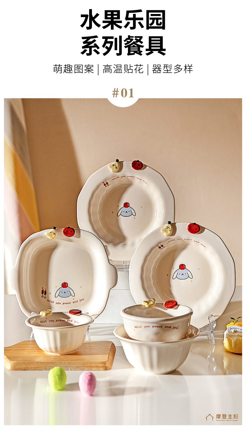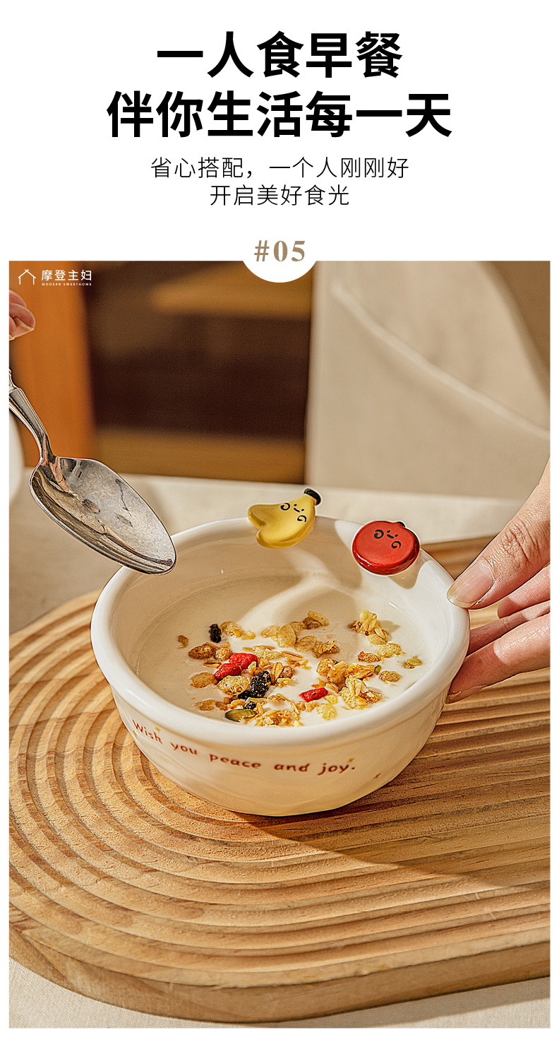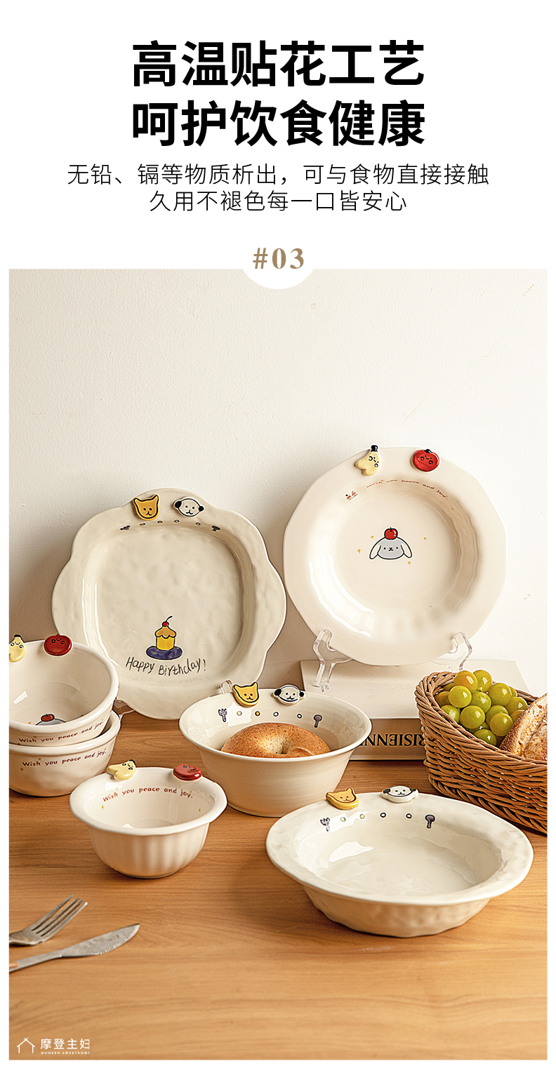 摩登主妇漂亮餐具一人食早餐盘子儿童饭碗家用酸奶碗生日快乐碗具