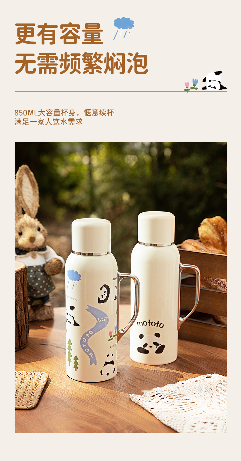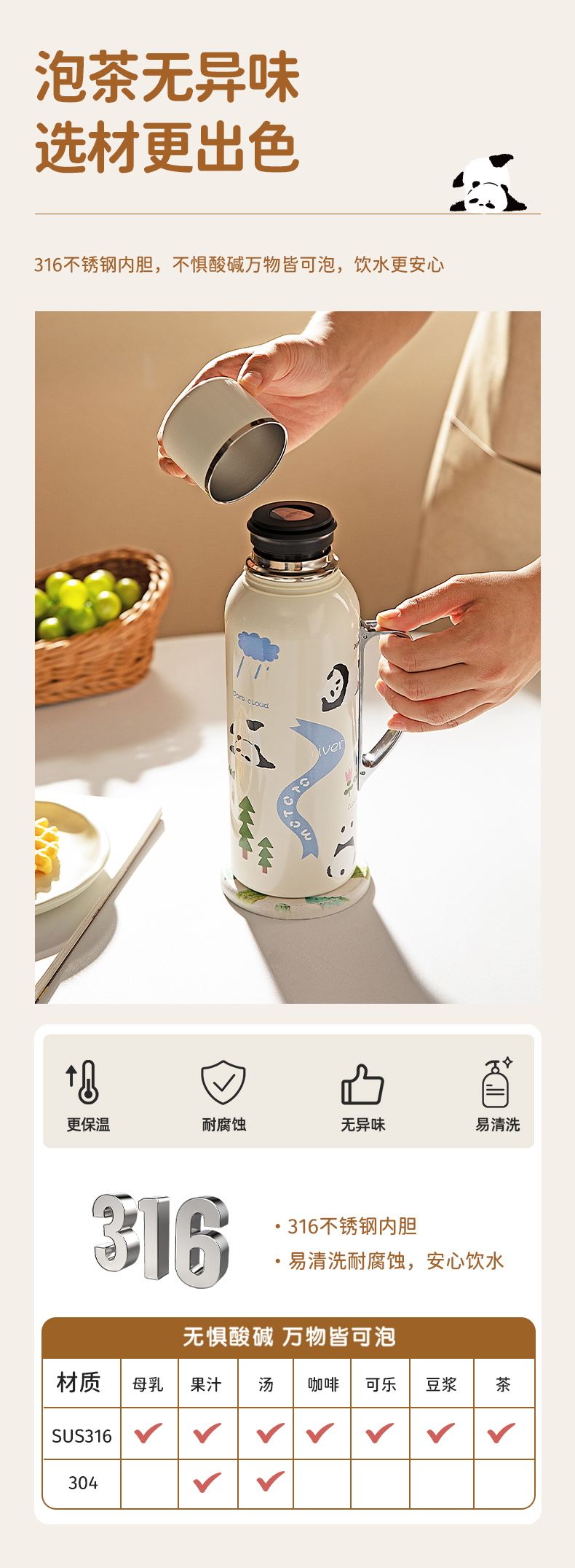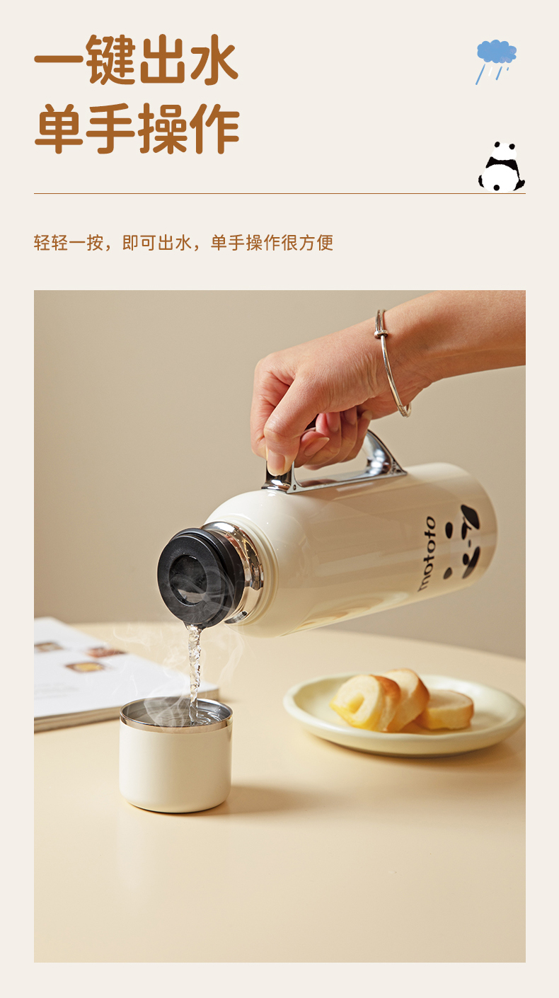 摩登主妇mototo熊猫不锈钢保温壶办公室暖壶水瓶焖茶壶家用热水壶