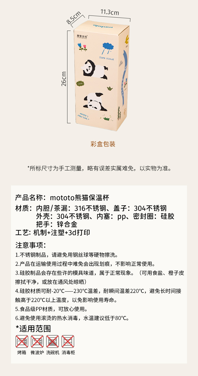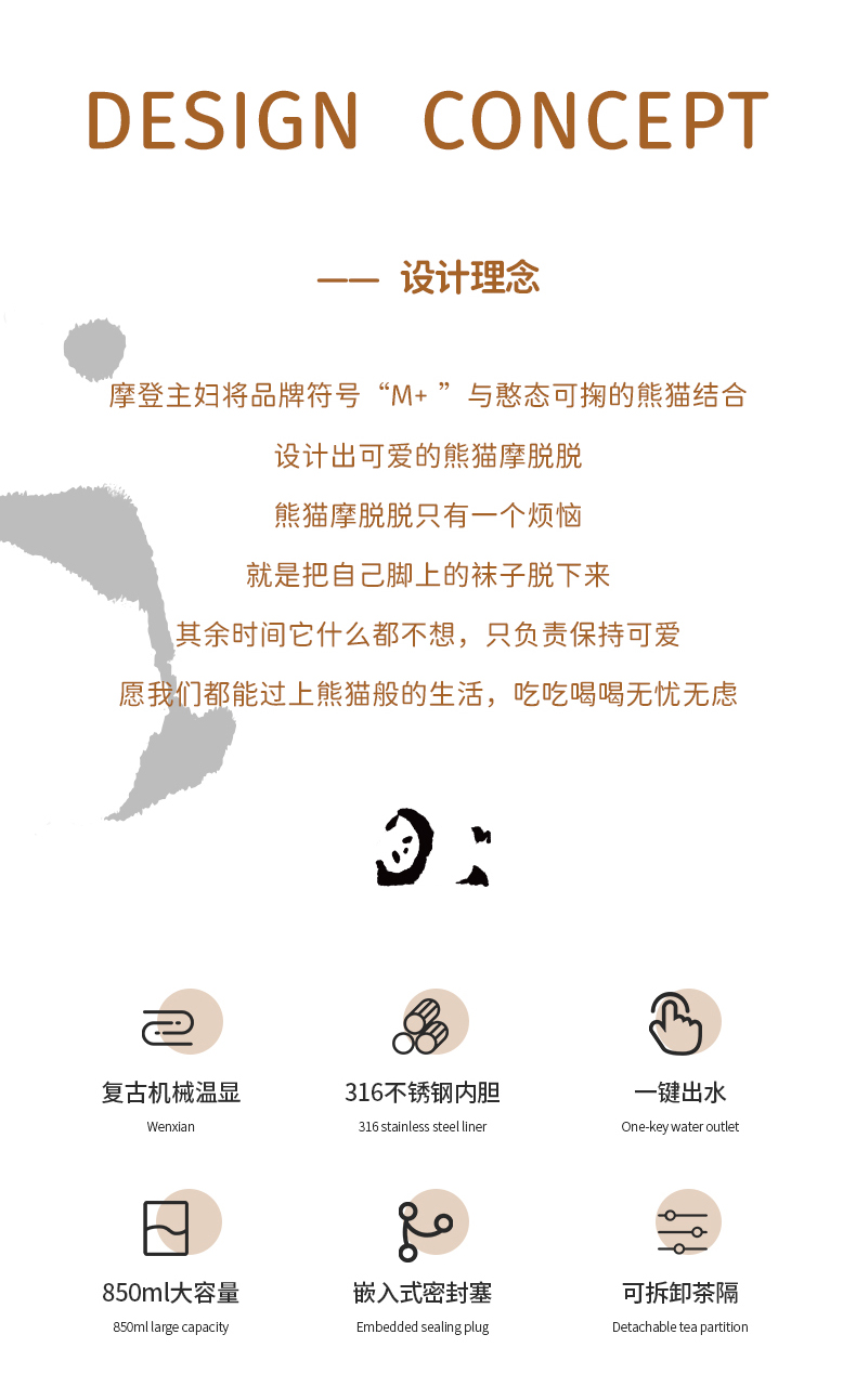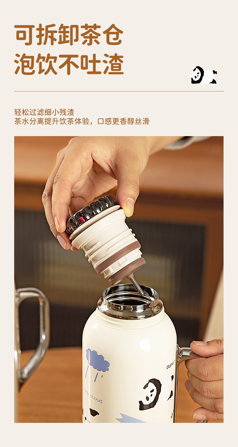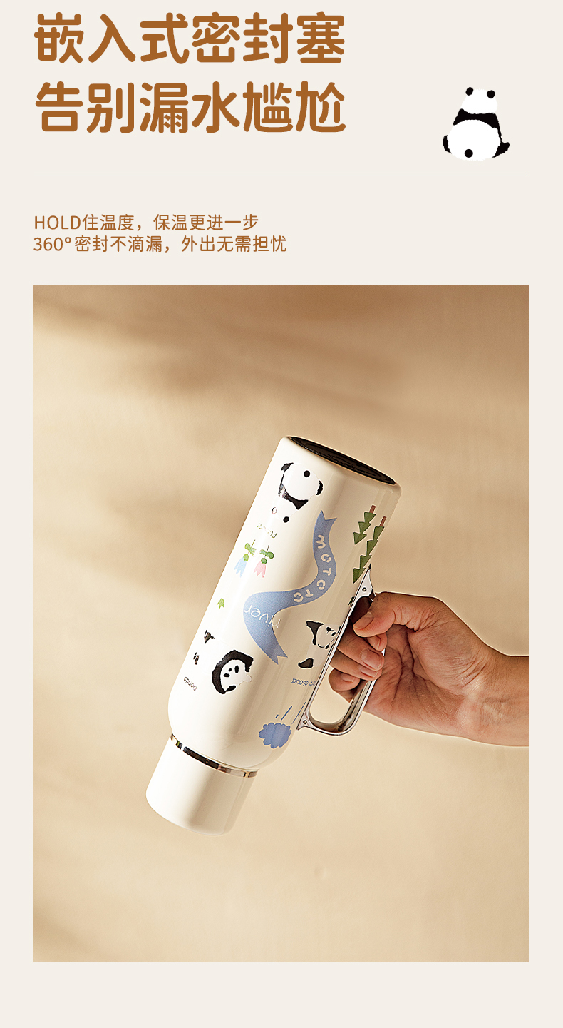 摩登主妇mototo熊猫不锈钢保温壶办公室暖壶水瓶焖茶壶家用热水壶