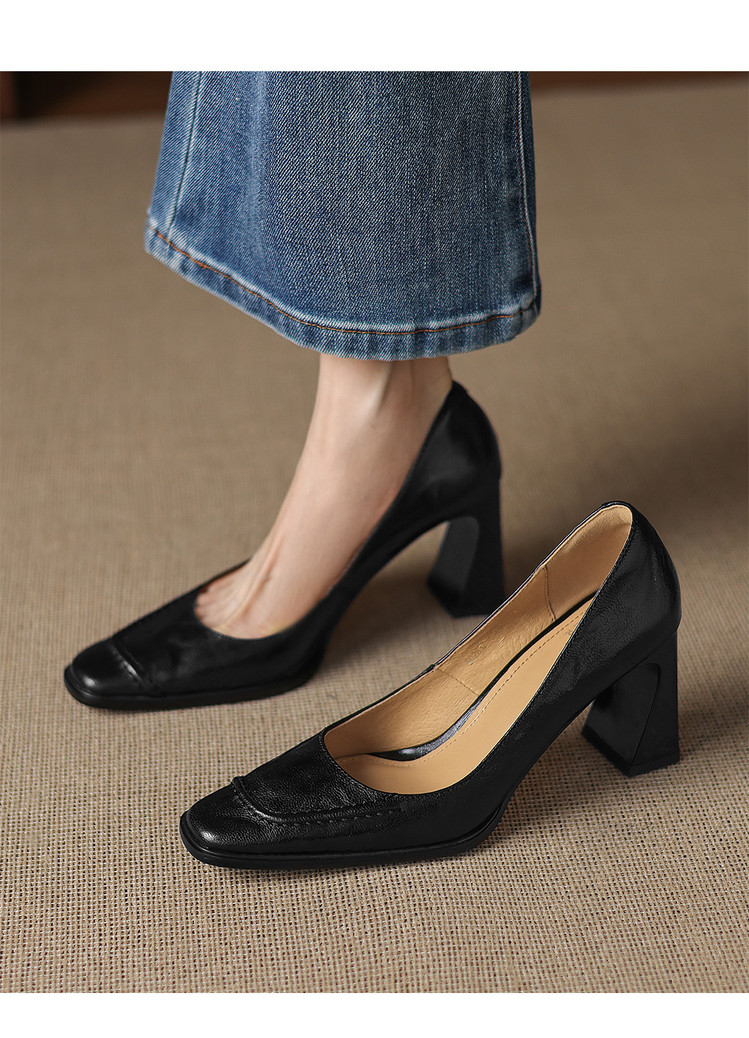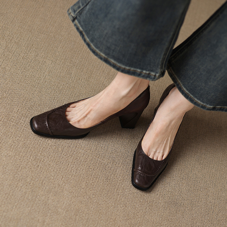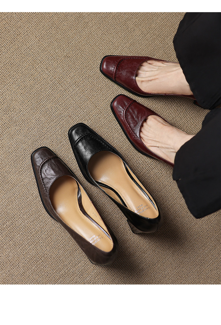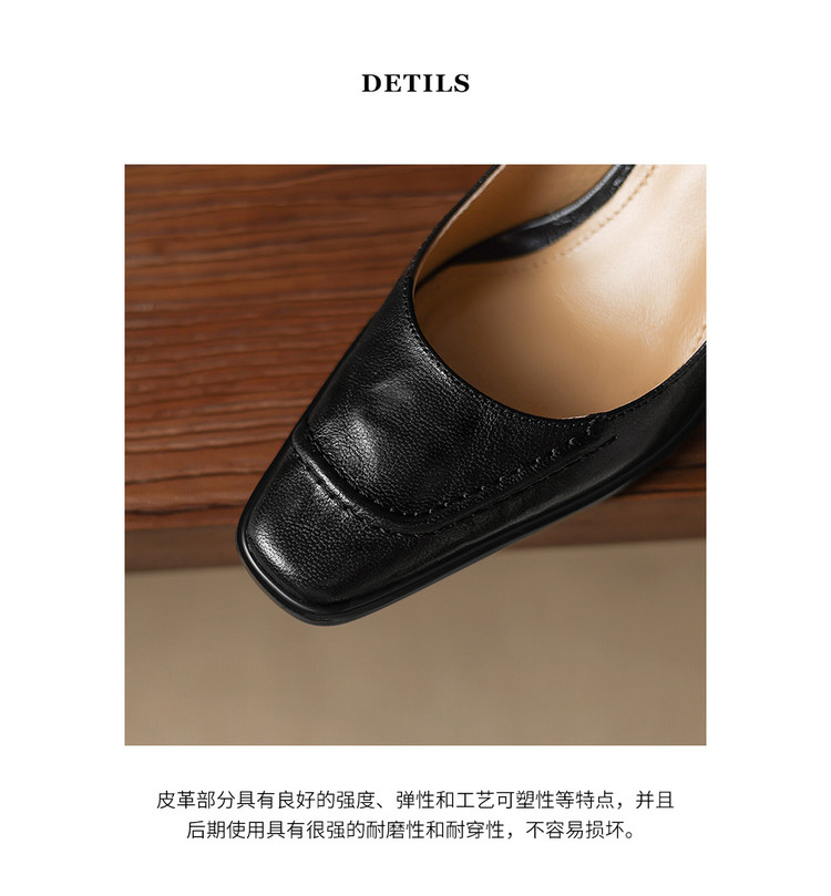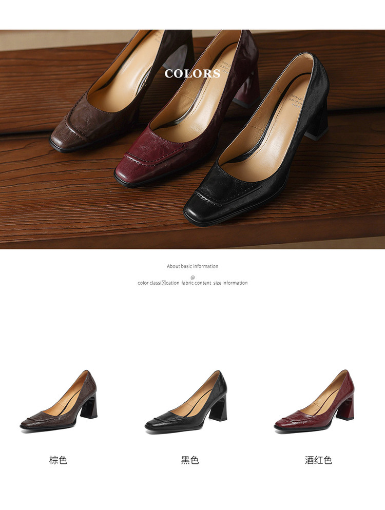 【预售5天】柔软羊皮方头浅口一脚蹬单鞋女春秋季新款简约气质复古OL职业粗高跟鞋HB&5549