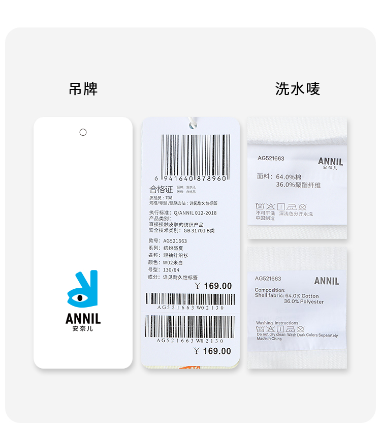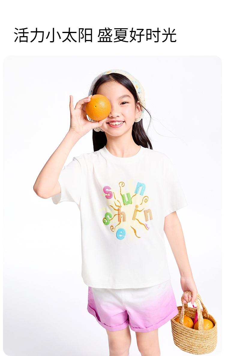 【实体店同款】女童SORONA凉感短袖针织衫夏季新款安奈儿童装AG521663