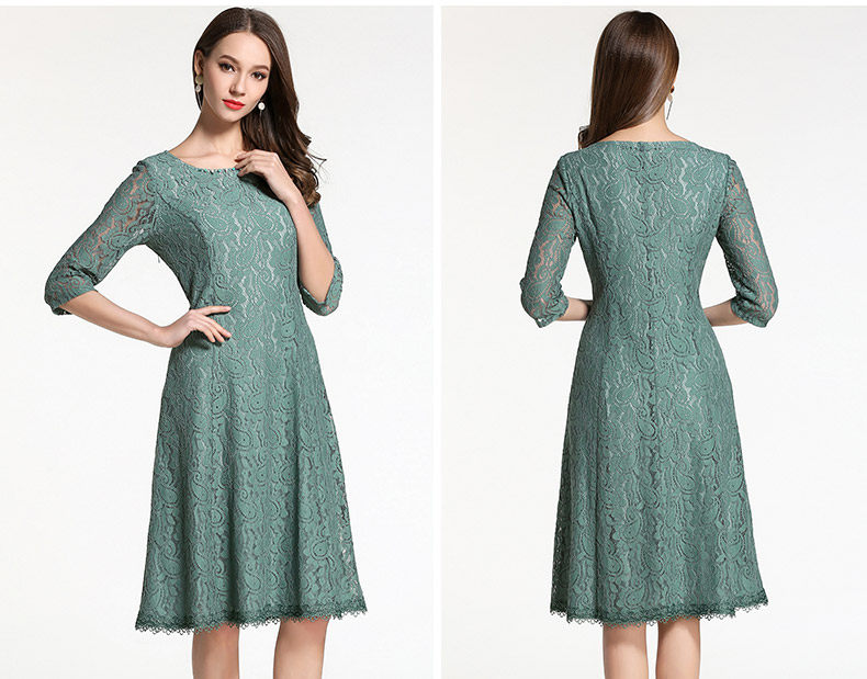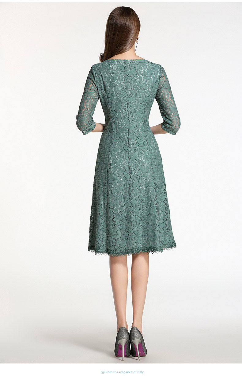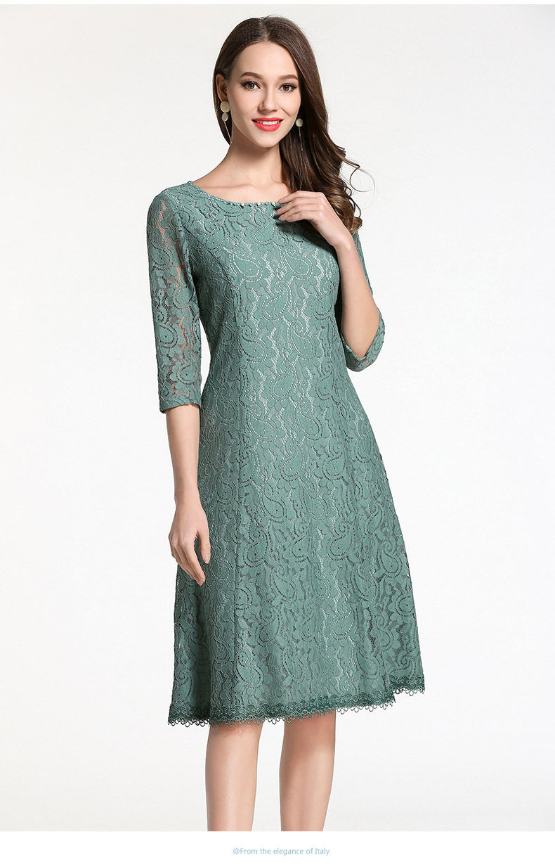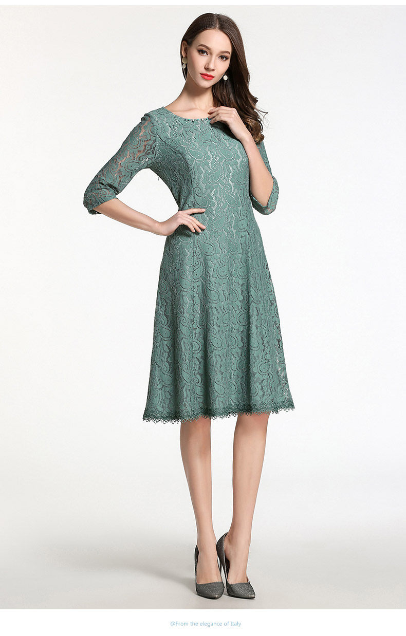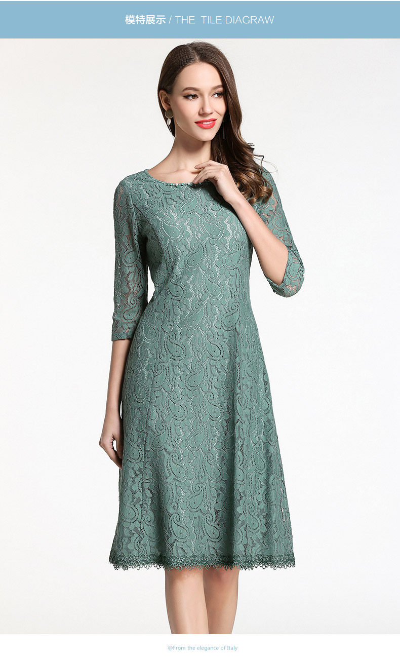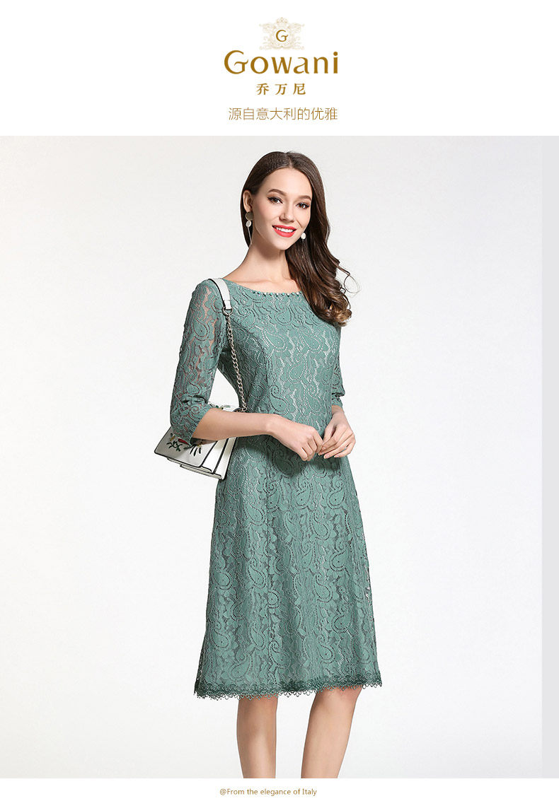 乔万尼连衣裙春装女韩版中长款修身蕾丝镂空a字裙EB1E715