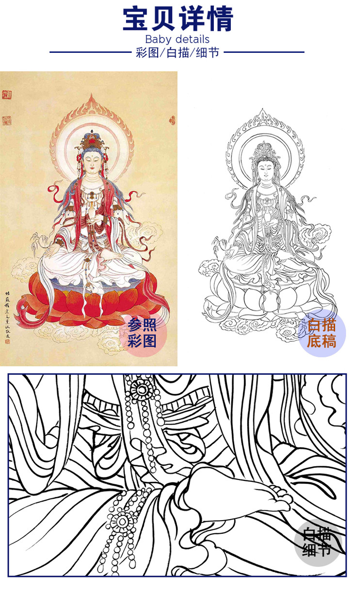 程宗元竖幅工笔人物白描底稿-观音佛像菩萨-B090