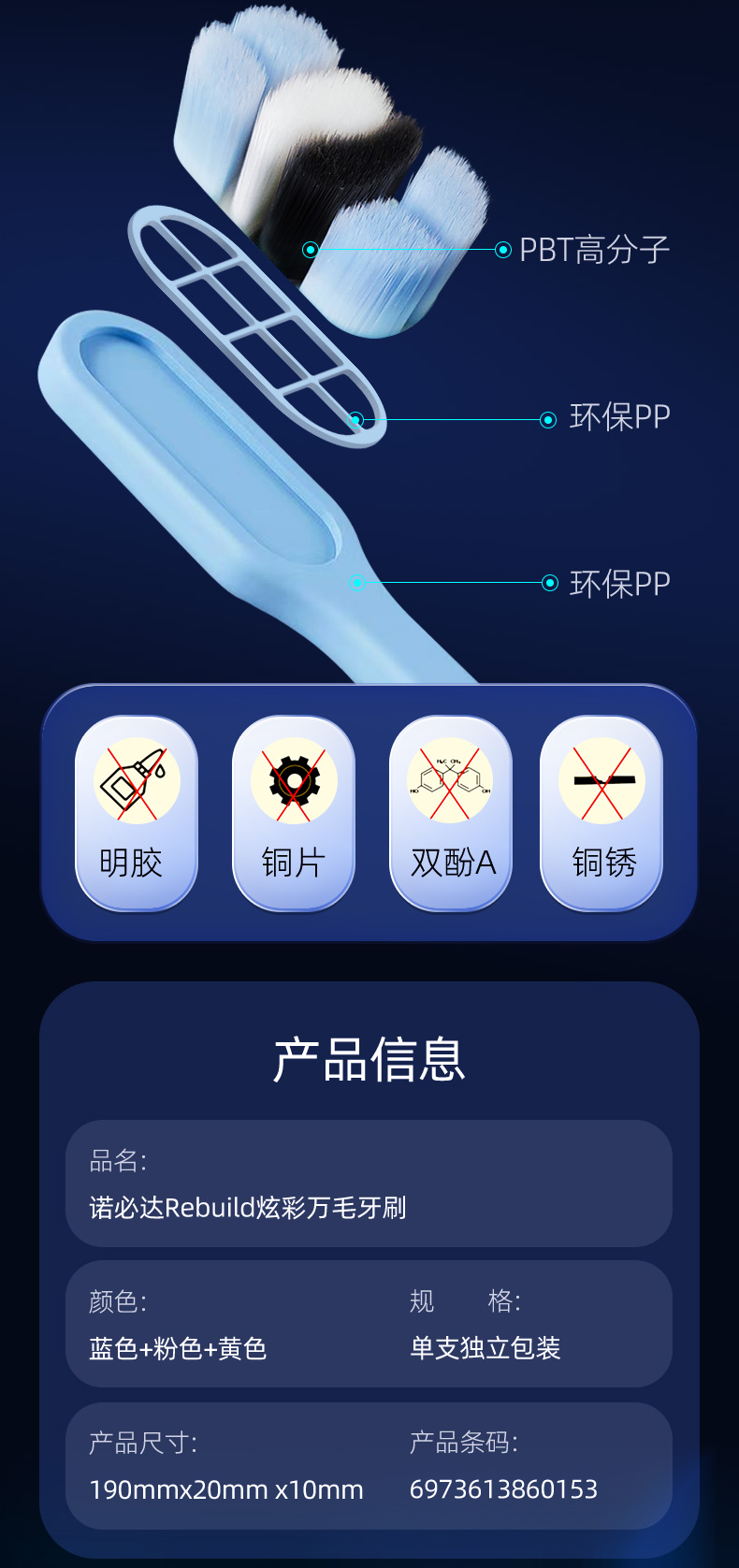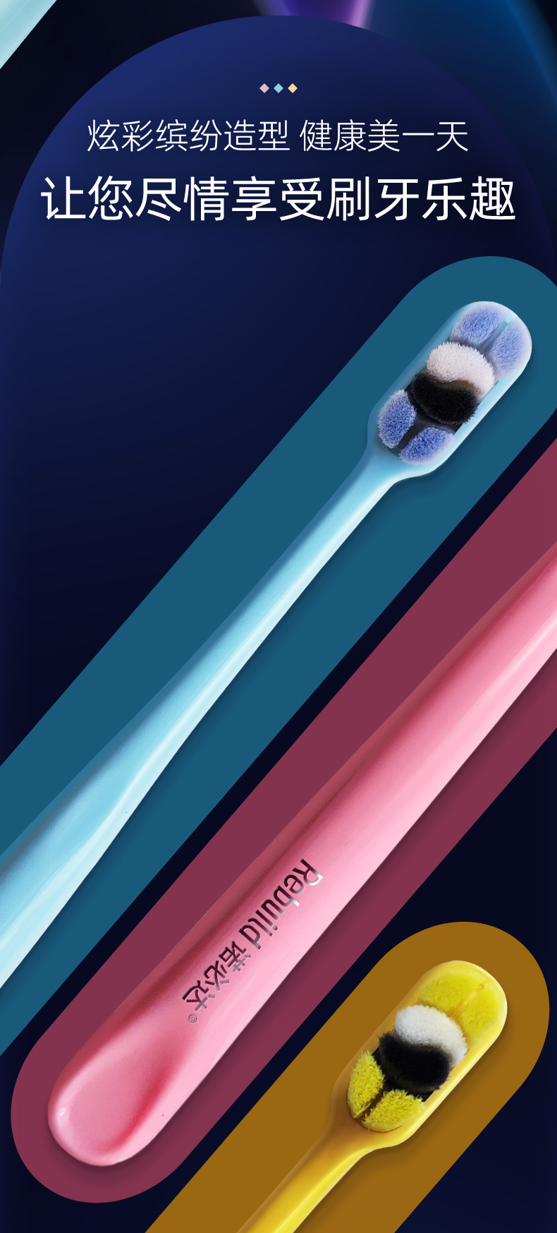 【品牌直发】诺必达Rebuild炫彩万毛护龈牙刷【3支装】成人款 深入牙缝清理残留 清理牙垢和牙渍 微米软毛 呵护牙龈