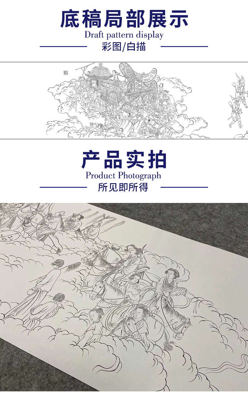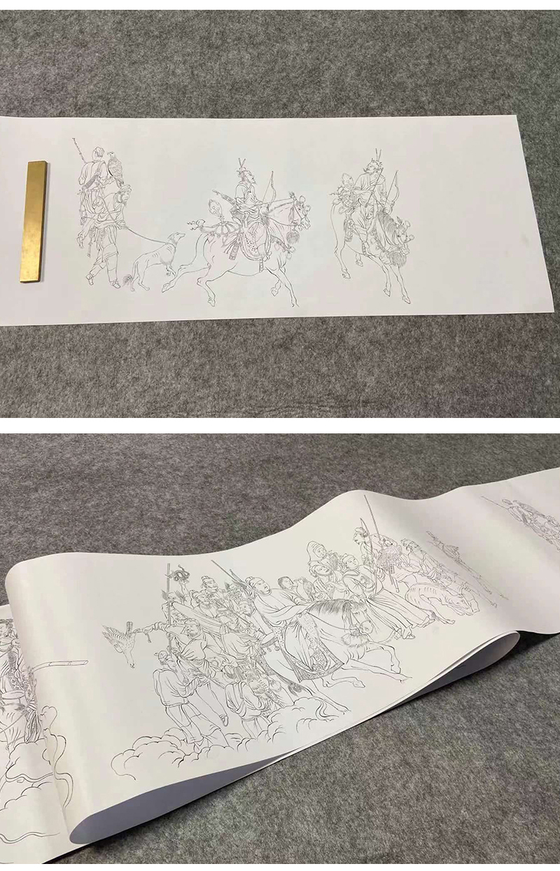 【长卷】工笔人物画白描底稿古画长卷李公麟《西岳降灵图》多种白描尺寸可选G016