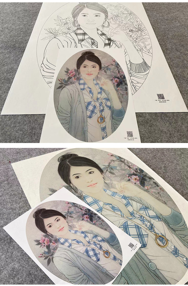 【大彩图】盘虎杰工笔画白描底稿小品《海棠》现代人物高清打印稿HJ40