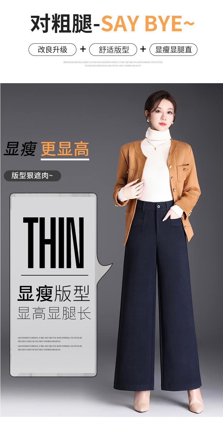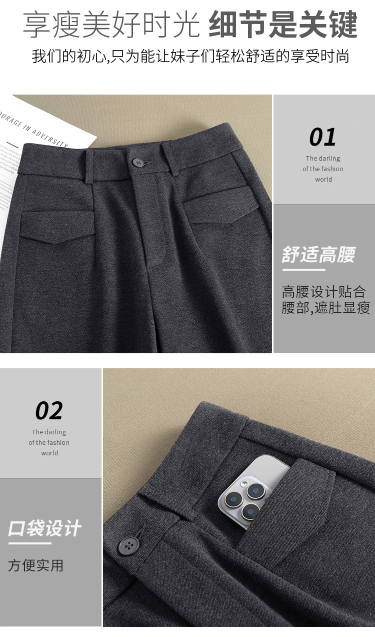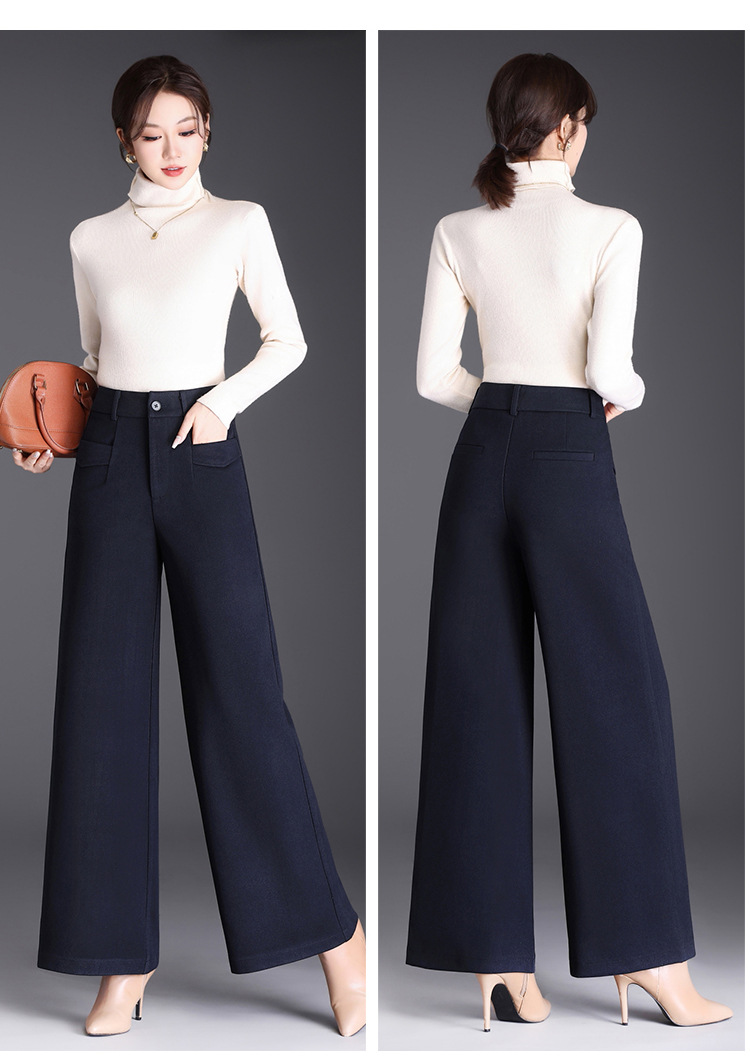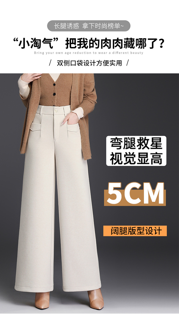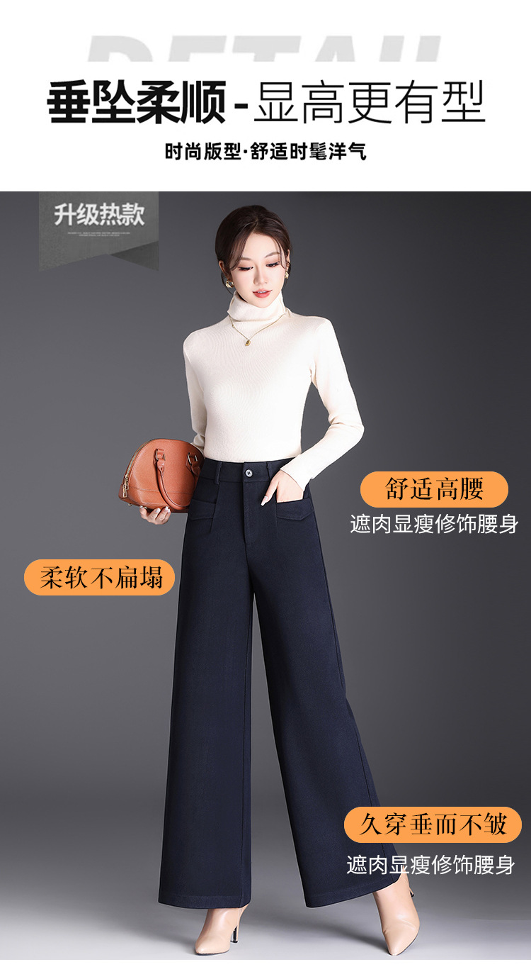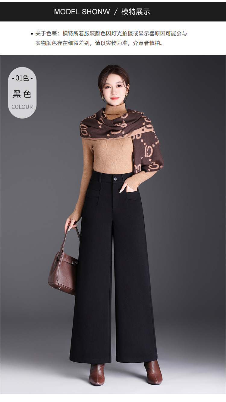 QYM 3516-Y妈妈装毛呢阔腿裤宽松休闲裤直筒裤 商品图4