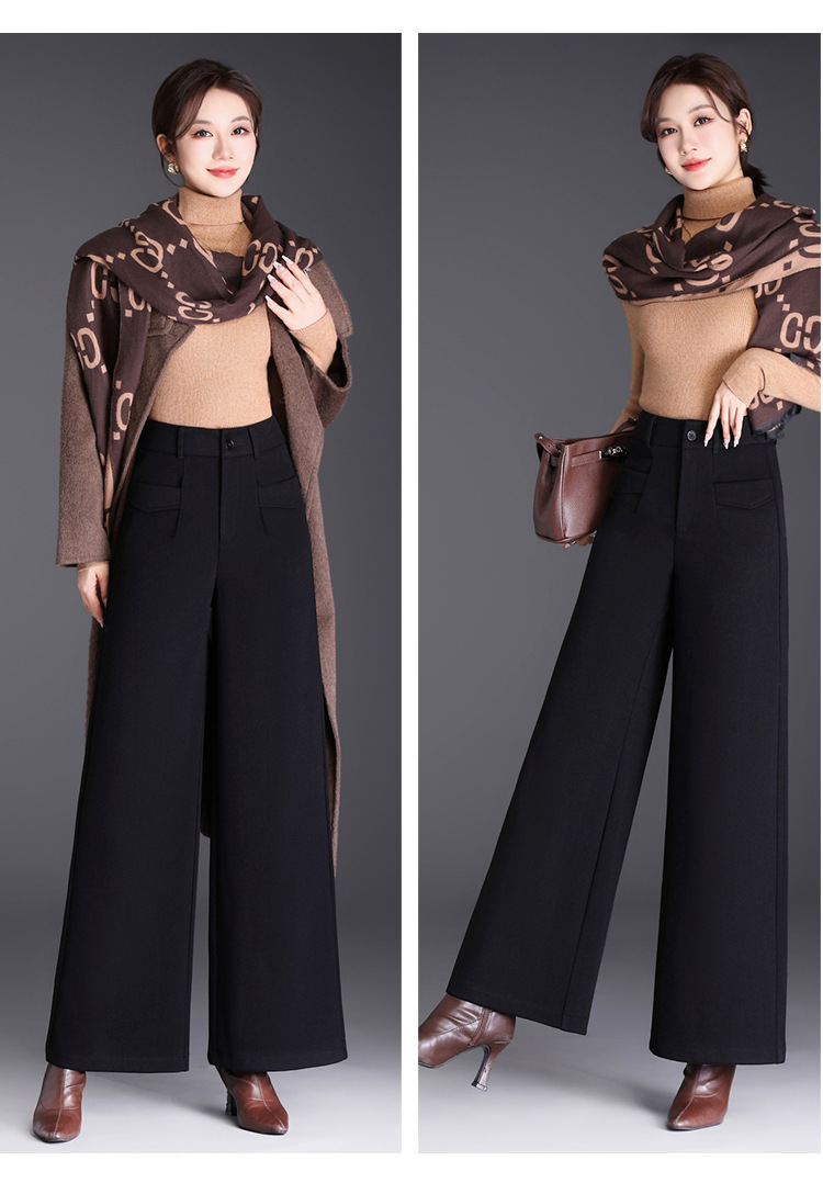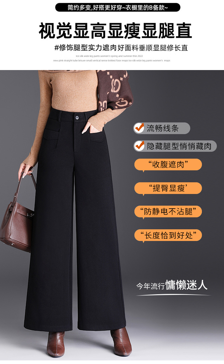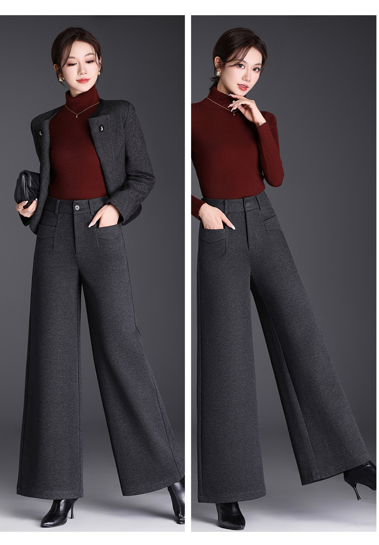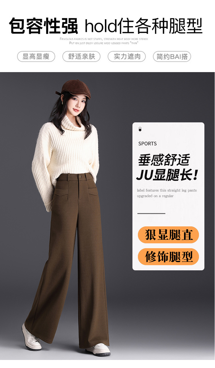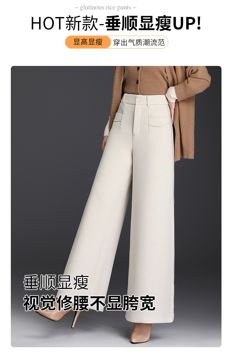 QYM 3516-Y妈妈装毛呢阔腿裤宽松休闲裤直筒裤 商品图1
