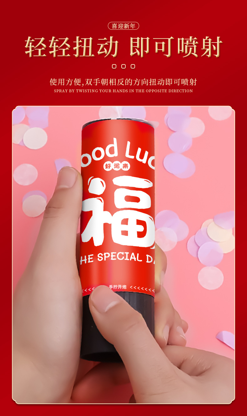 【轻轻扭动,即可喷射】2024龙年新年礼花筒礼炮福字,搬家派对氛围新家用品乔迁搬家推推乐,轻松添加过年的喜庆氛围!