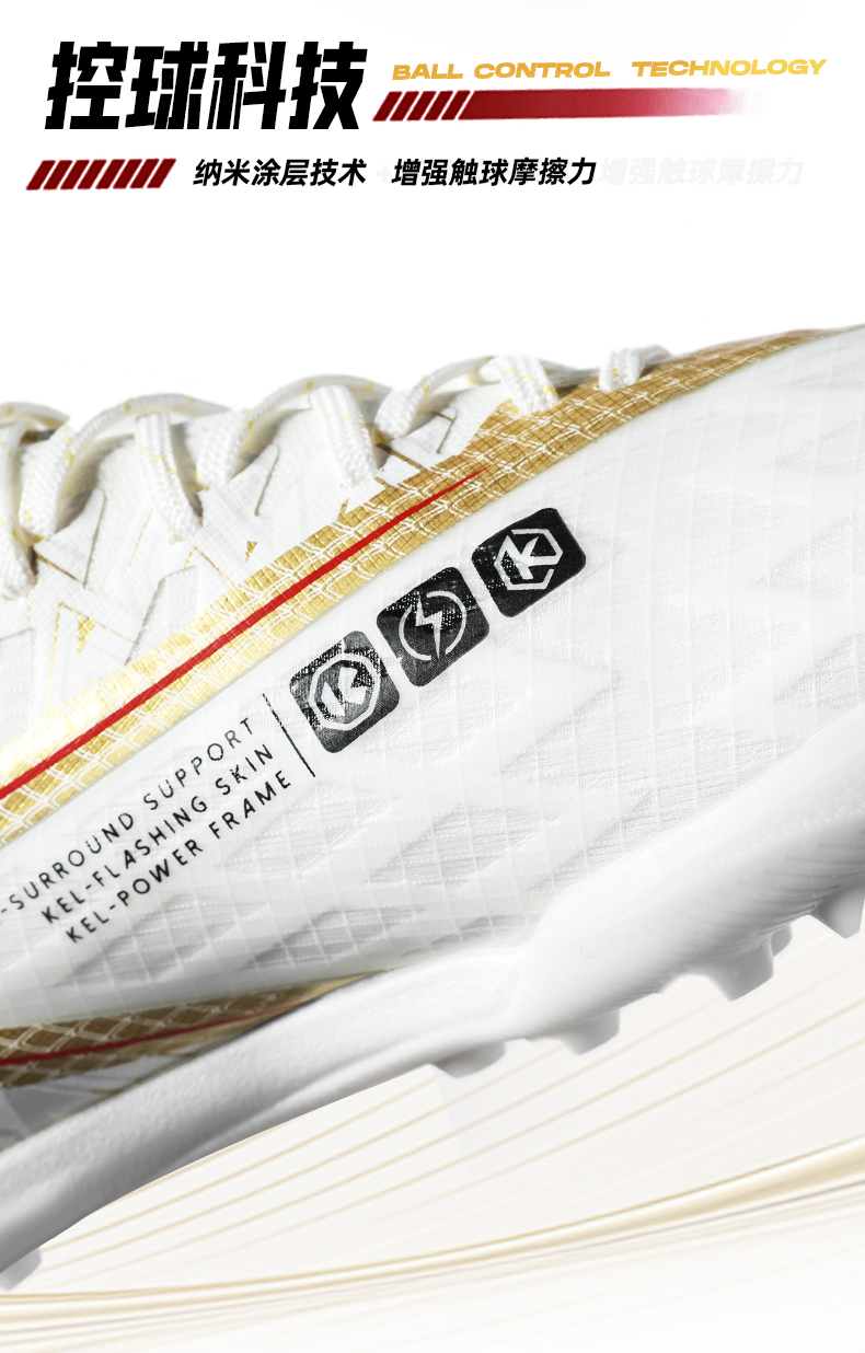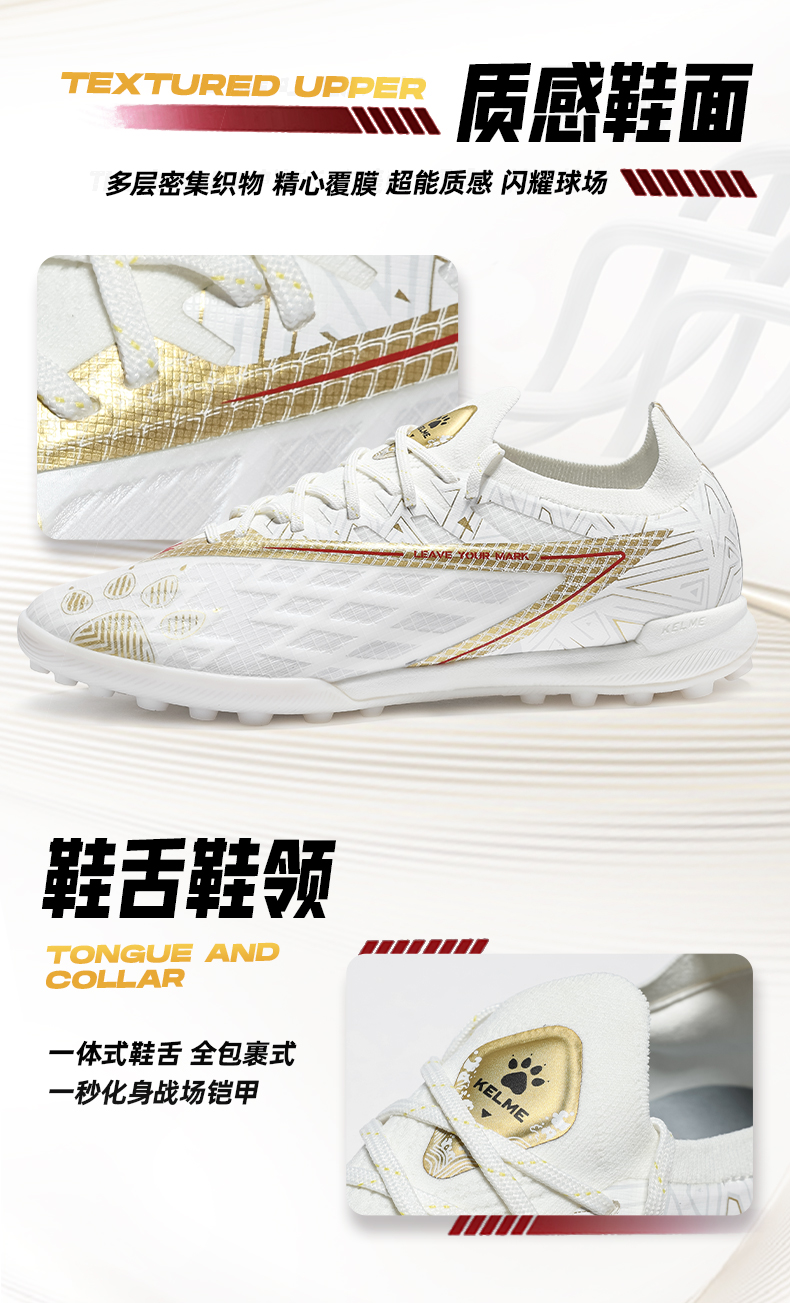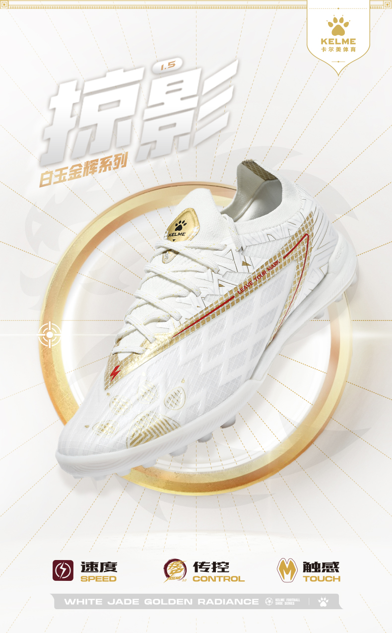 卡尔美白玉金辉系列掠影1.5TF碎钉大底成人足球鞋