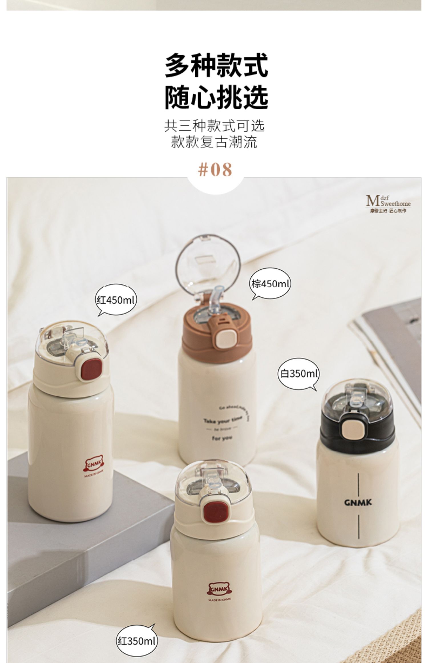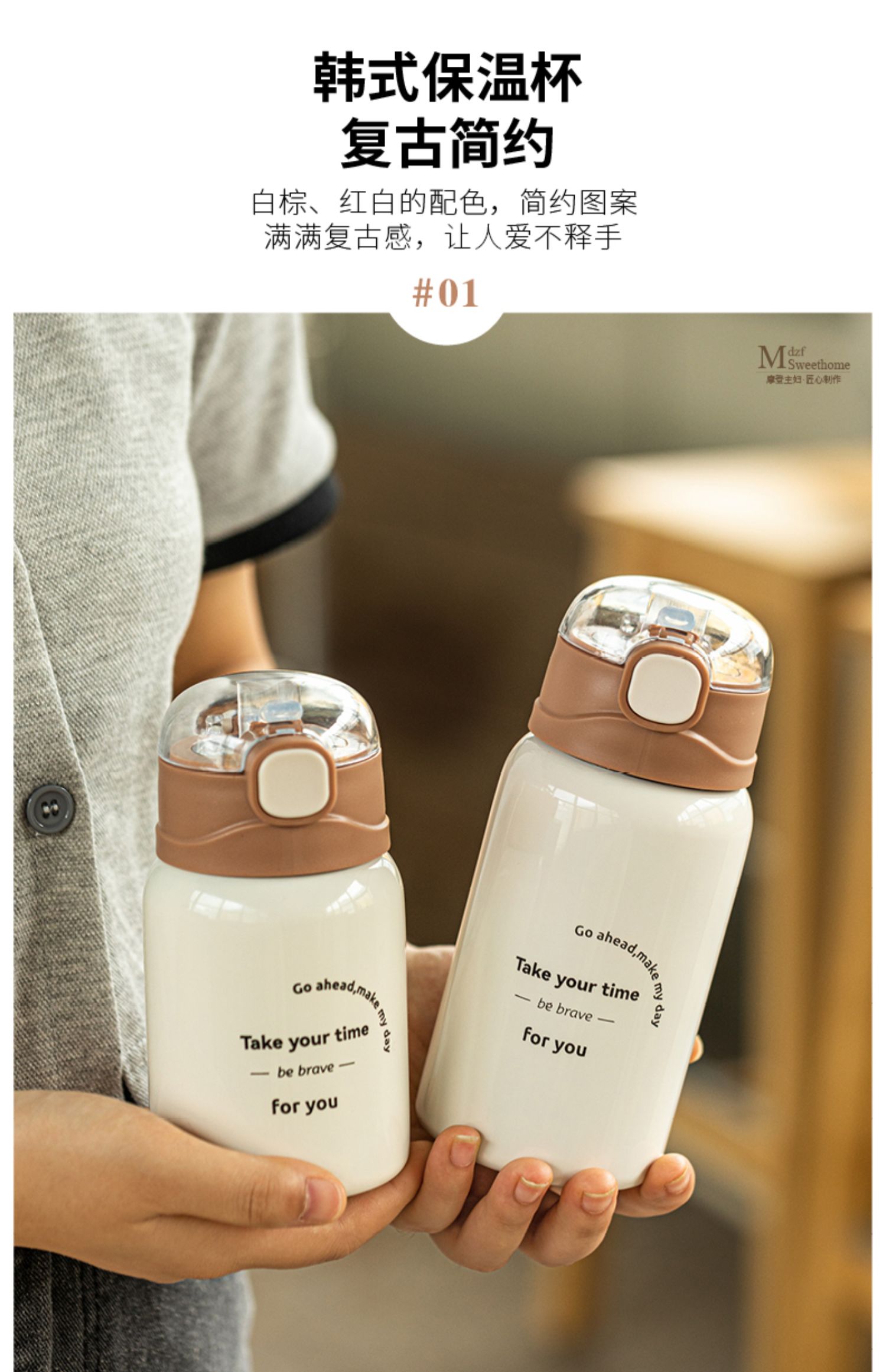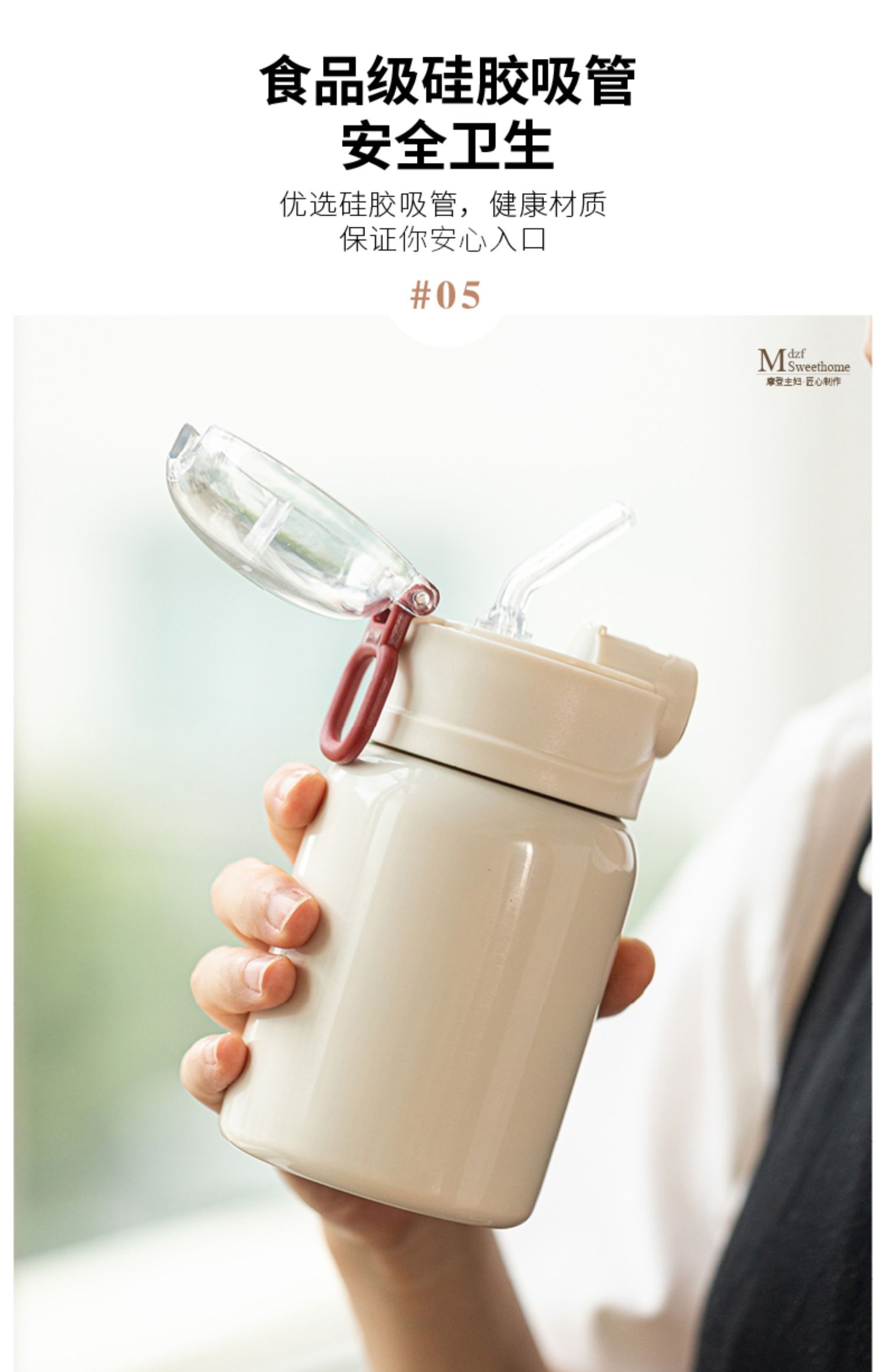 摩登主妇304不锈钢保温杯女高颜值儿童保冷水杯上学专用吸管杯子