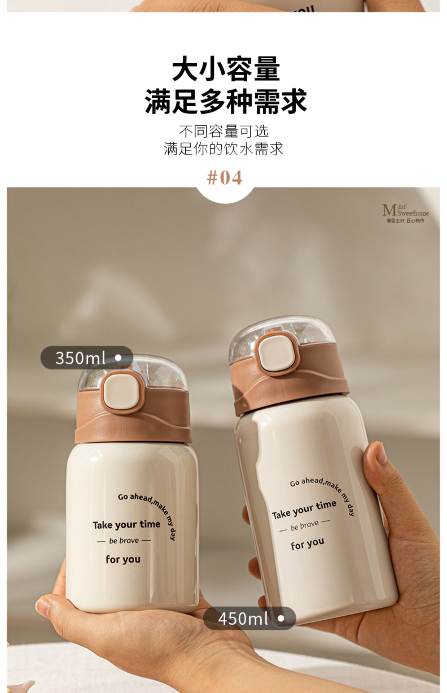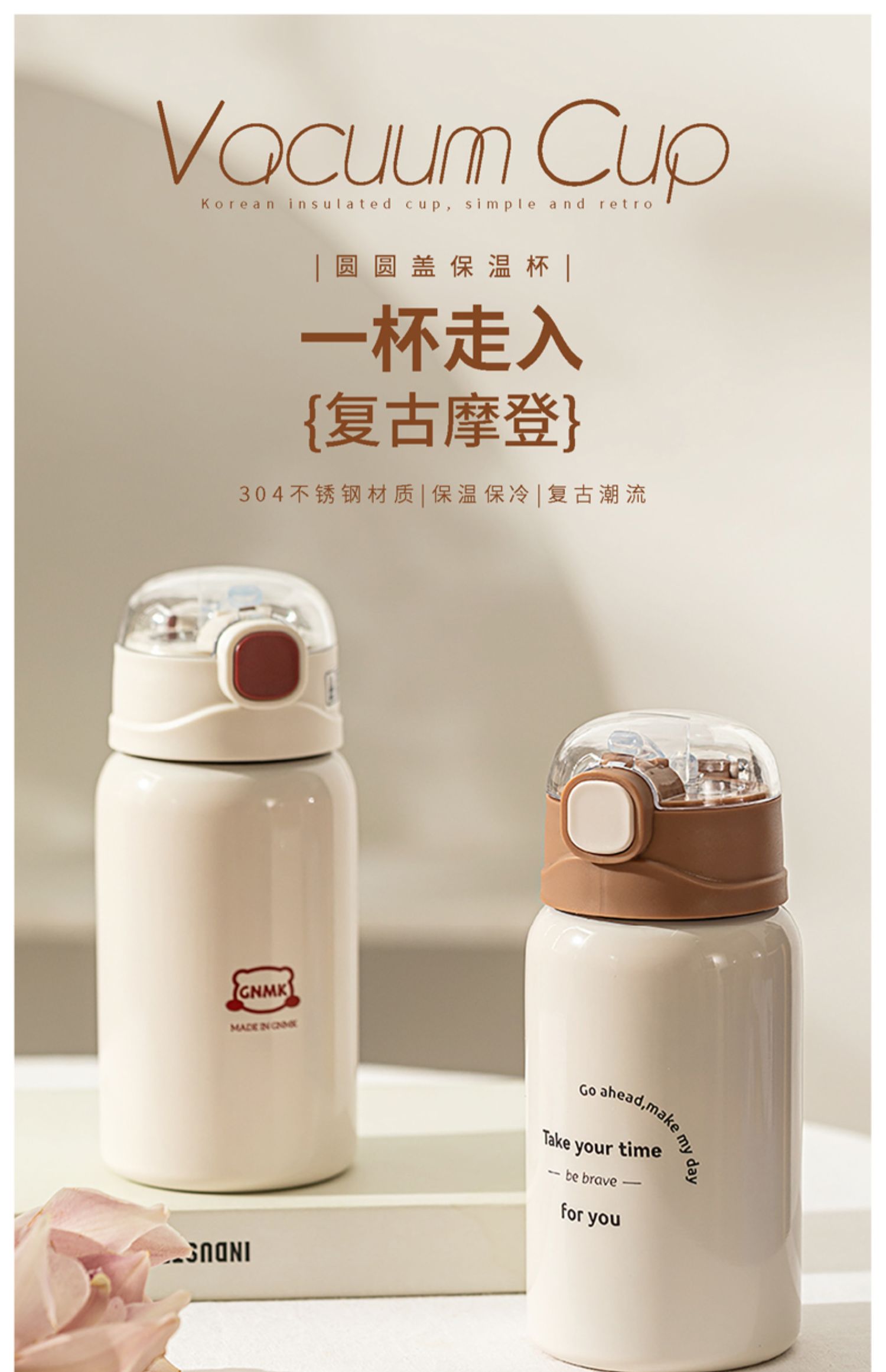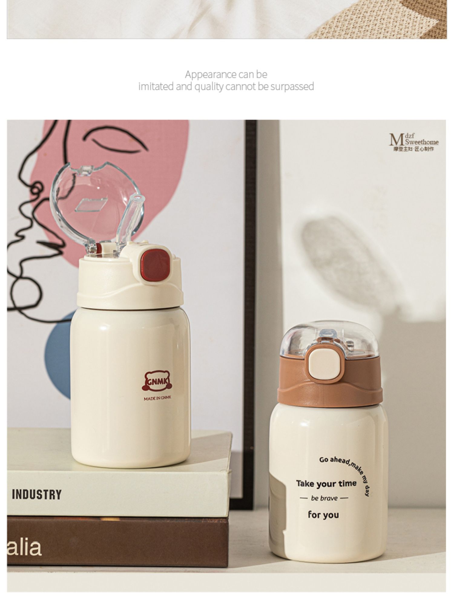 摩登主妇304不锈钢保温杯女高颜值儿童保冷水杯上学专用吸管杯子