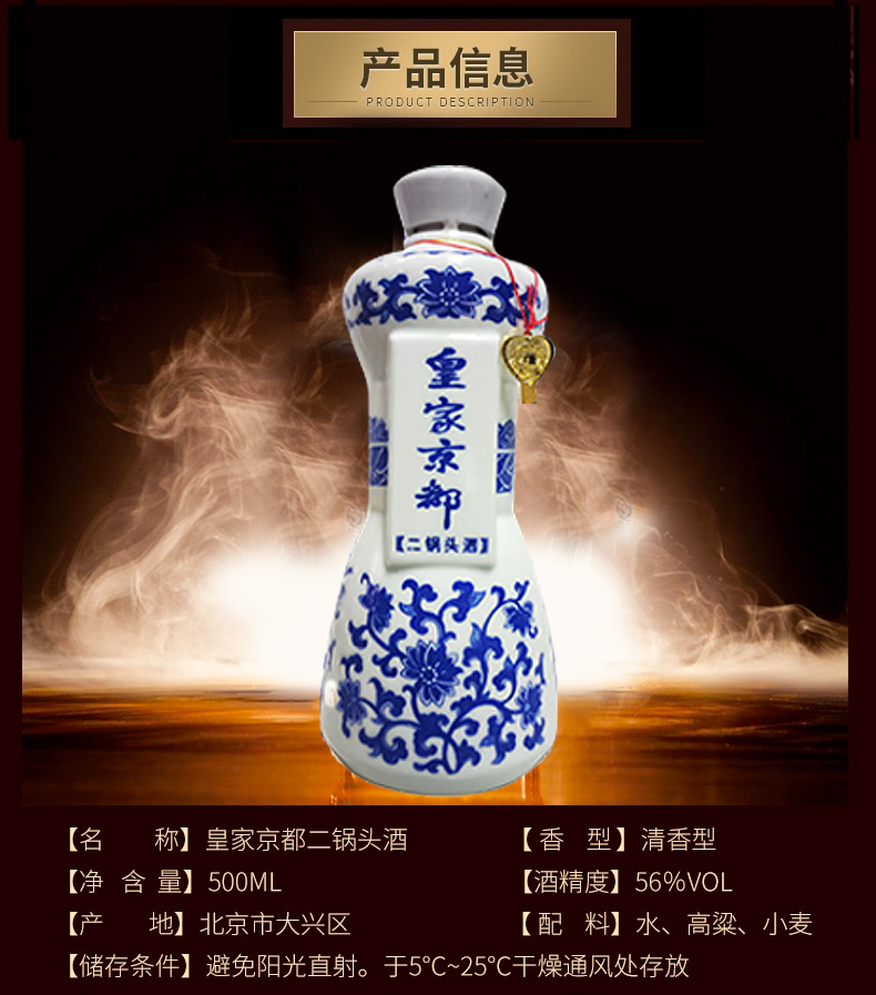 【推荐】京都 皇家精品宴会瓷瓶二锅头(2017)56度清香型500ml*6瓶【整箱装】