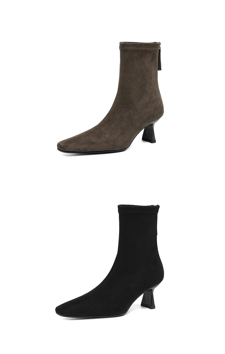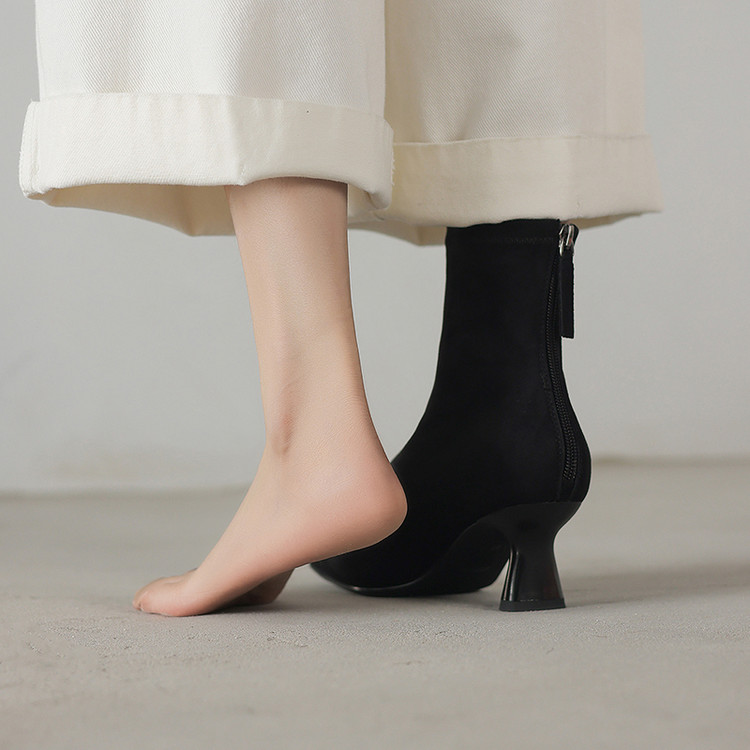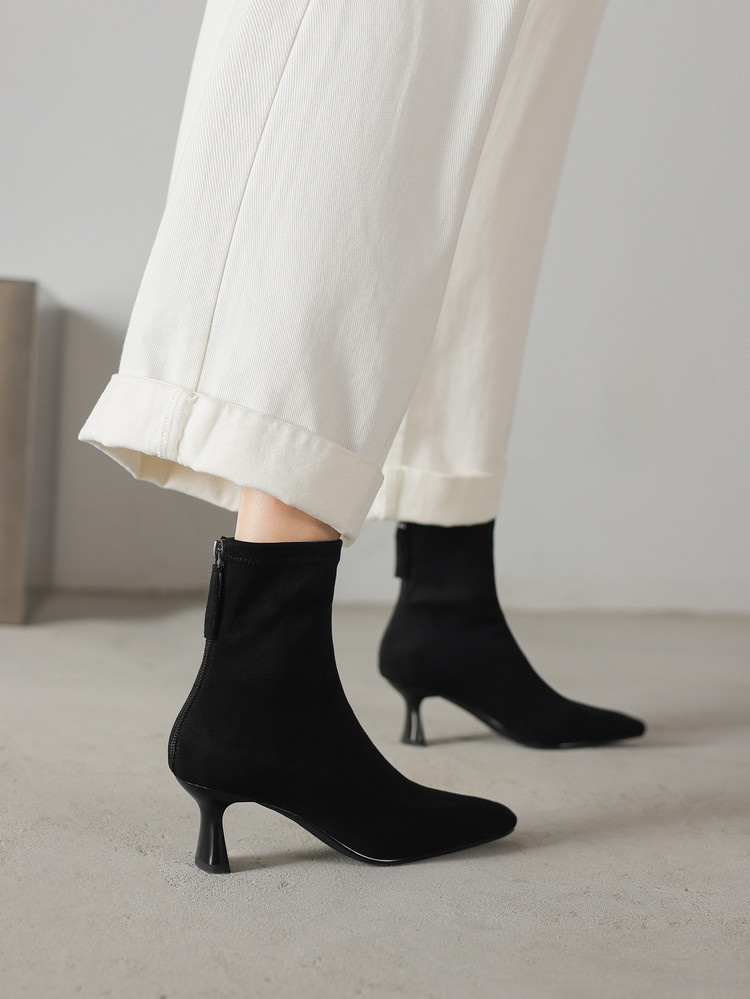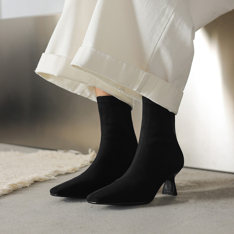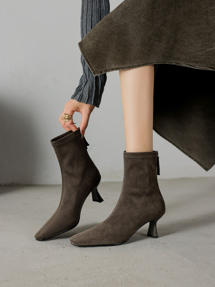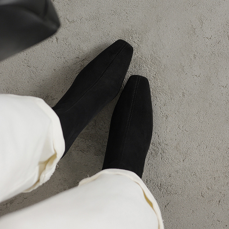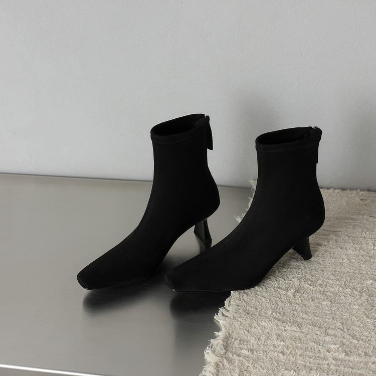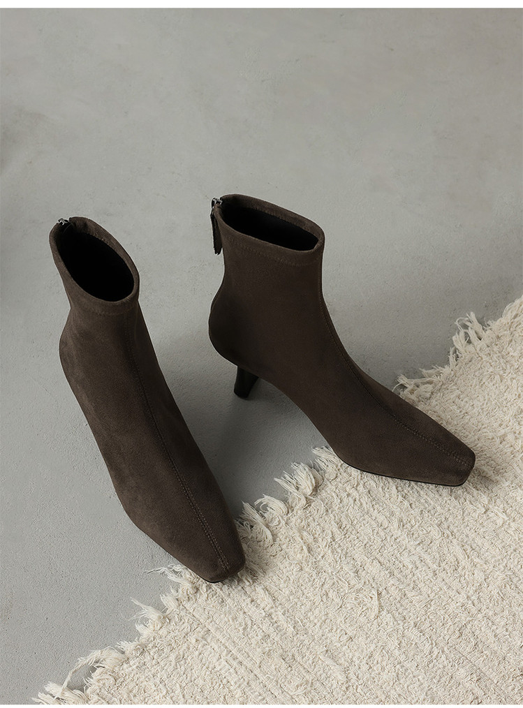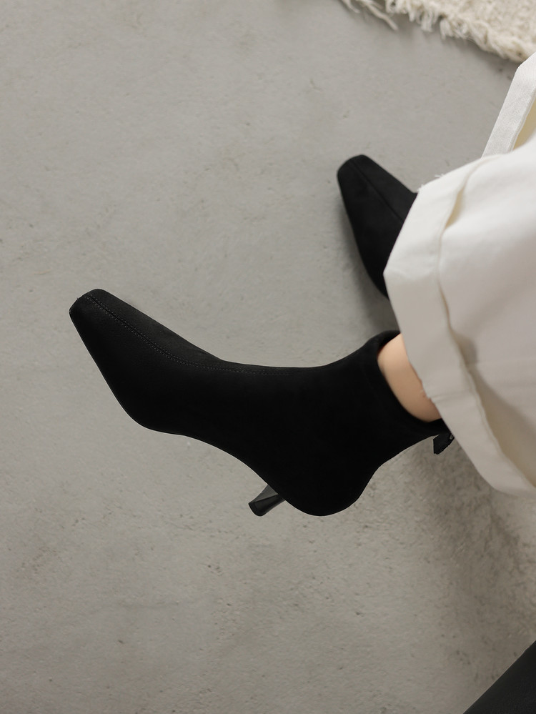 【预售5天】时尚绒面复古粗跟弹力靴女新款气质百搭方头高跟裸靴瘦瘦短靴WC&M3530