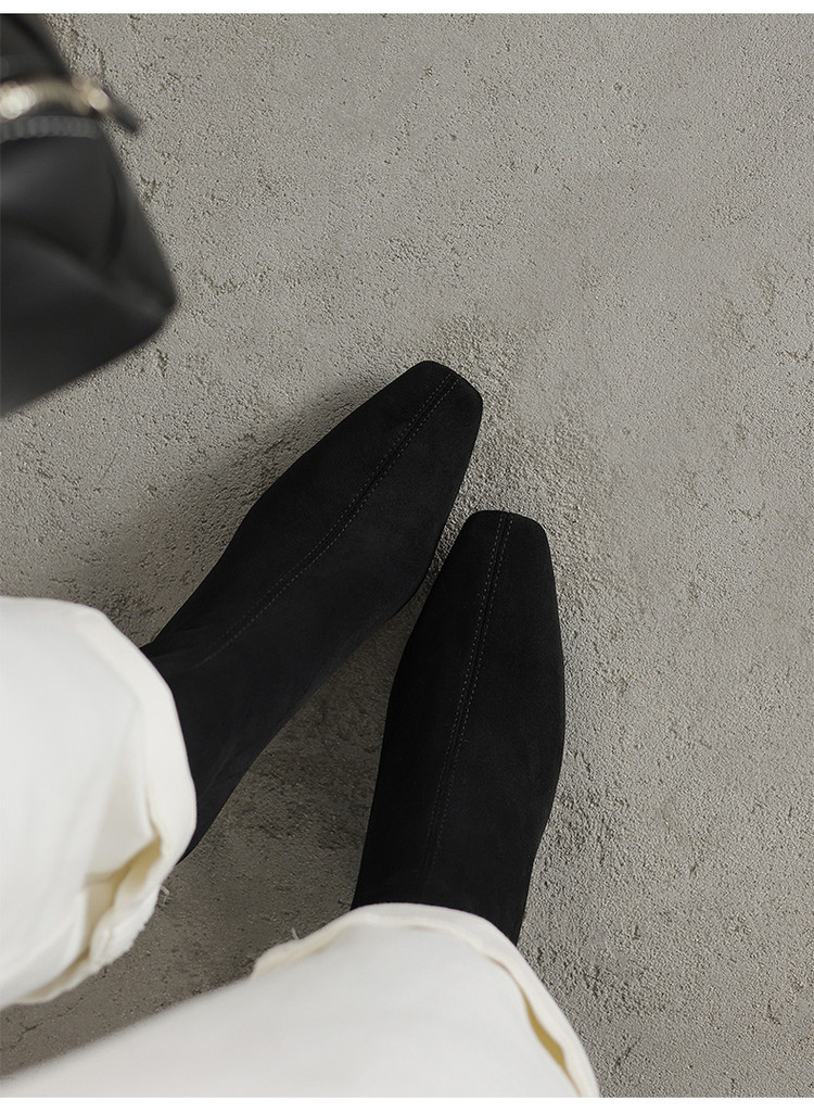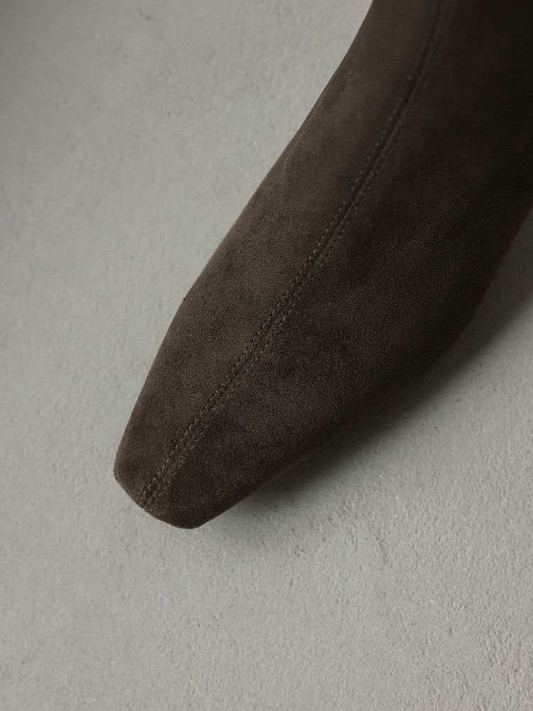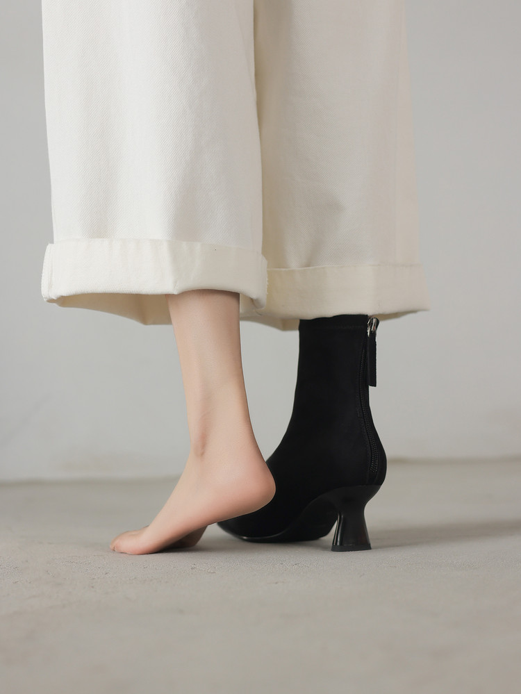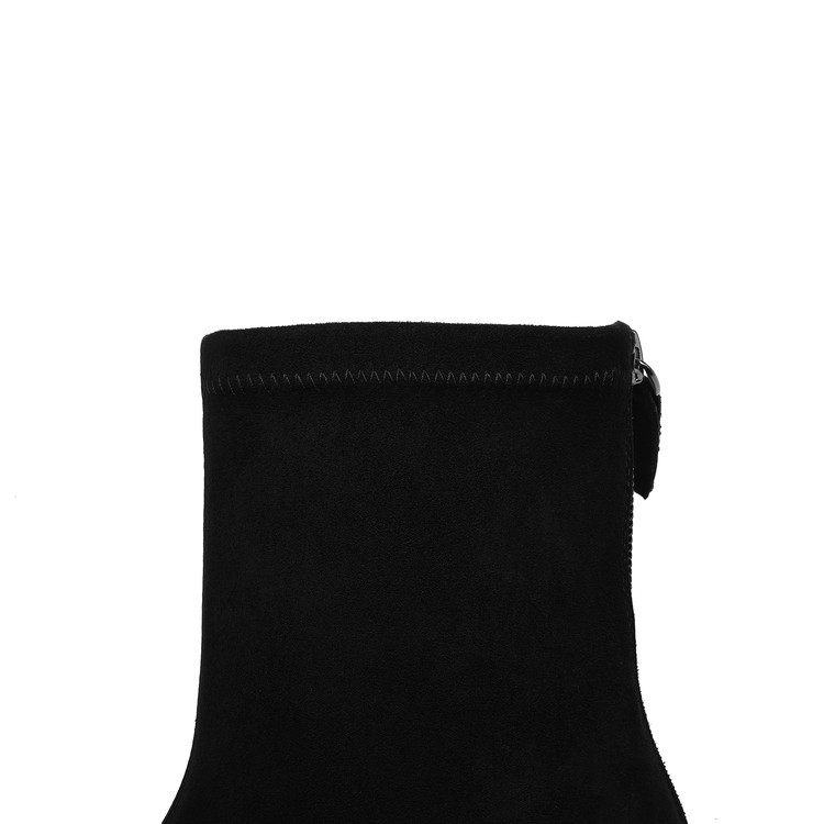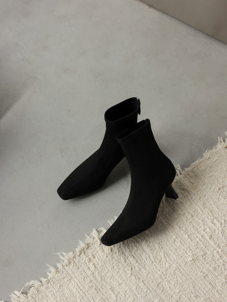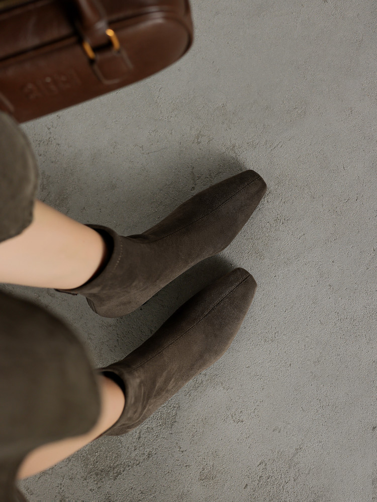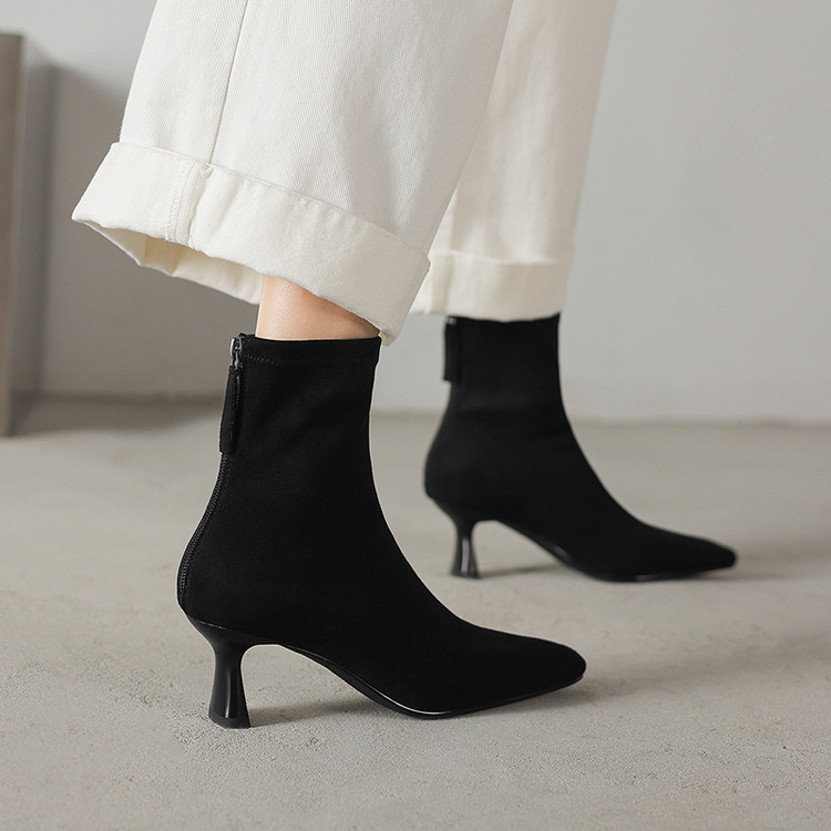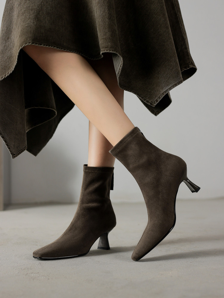 【预售5天】时尚绒面复古粗跟弹力靴女新款气质百搭方头高跟裸靴瘦瘦短靴WC&M3530