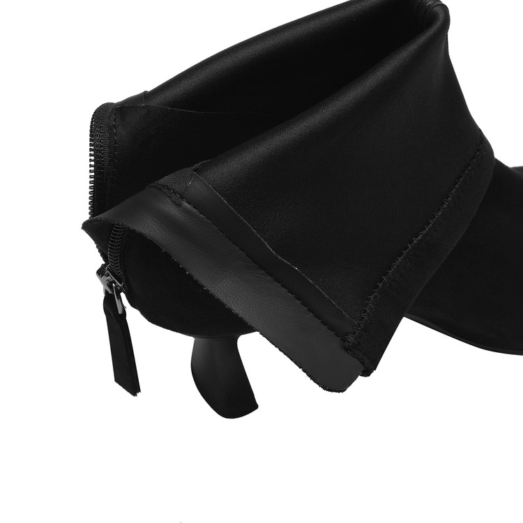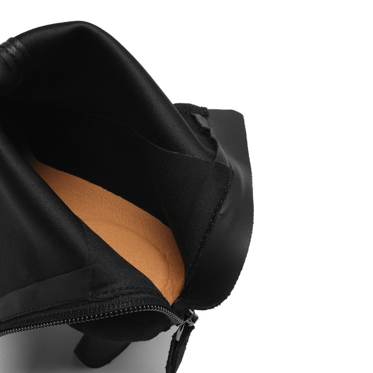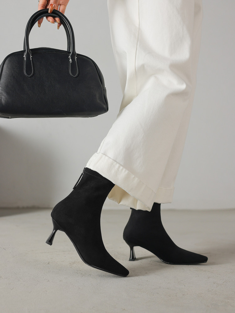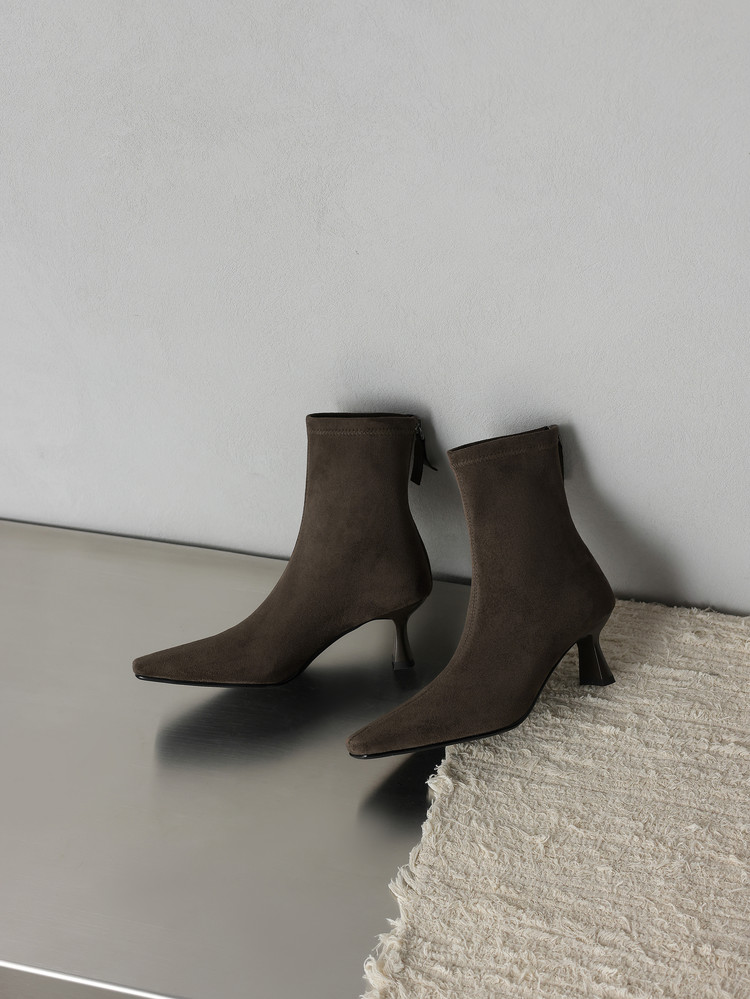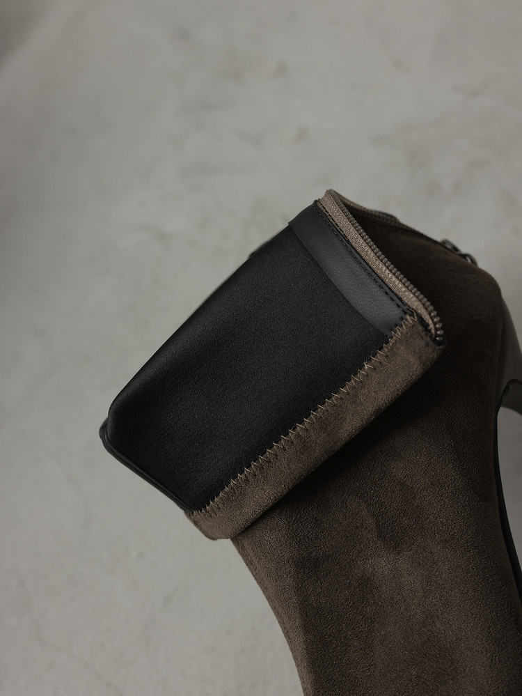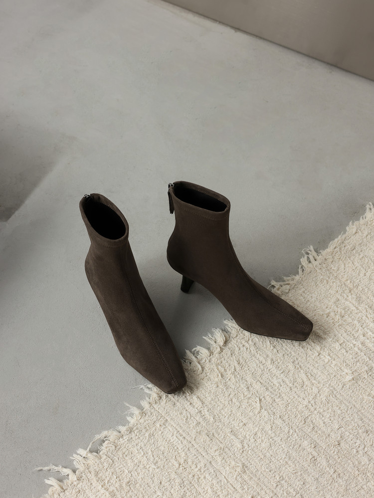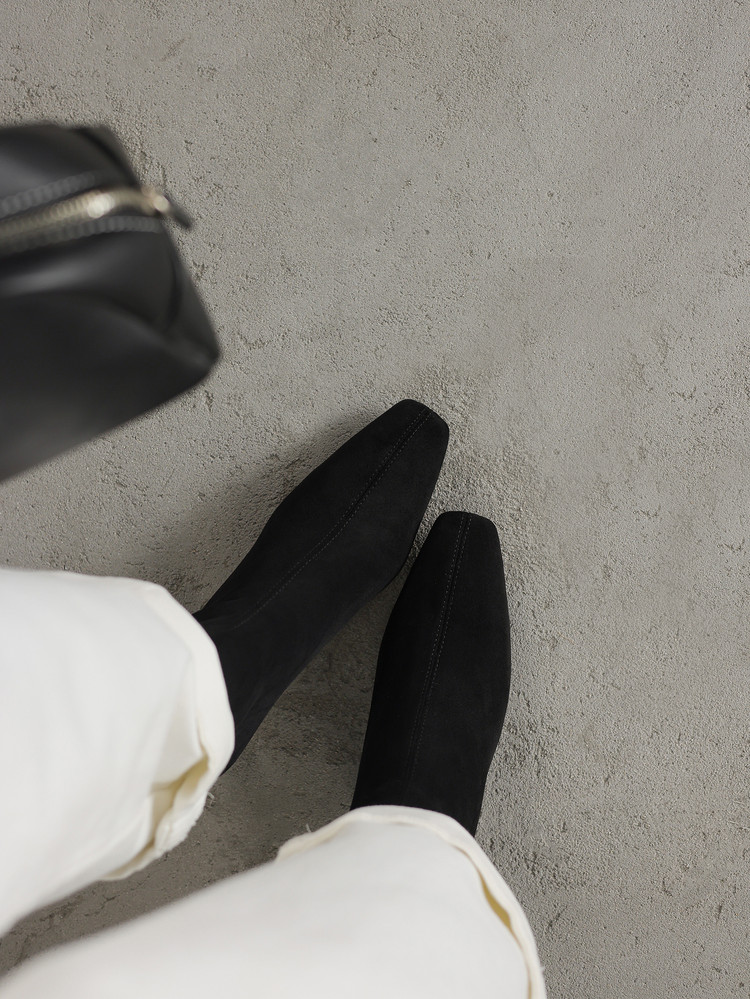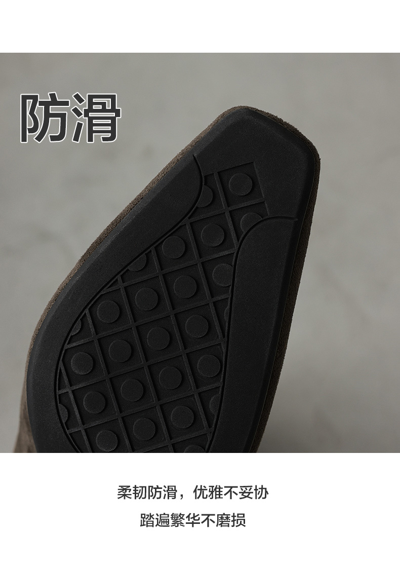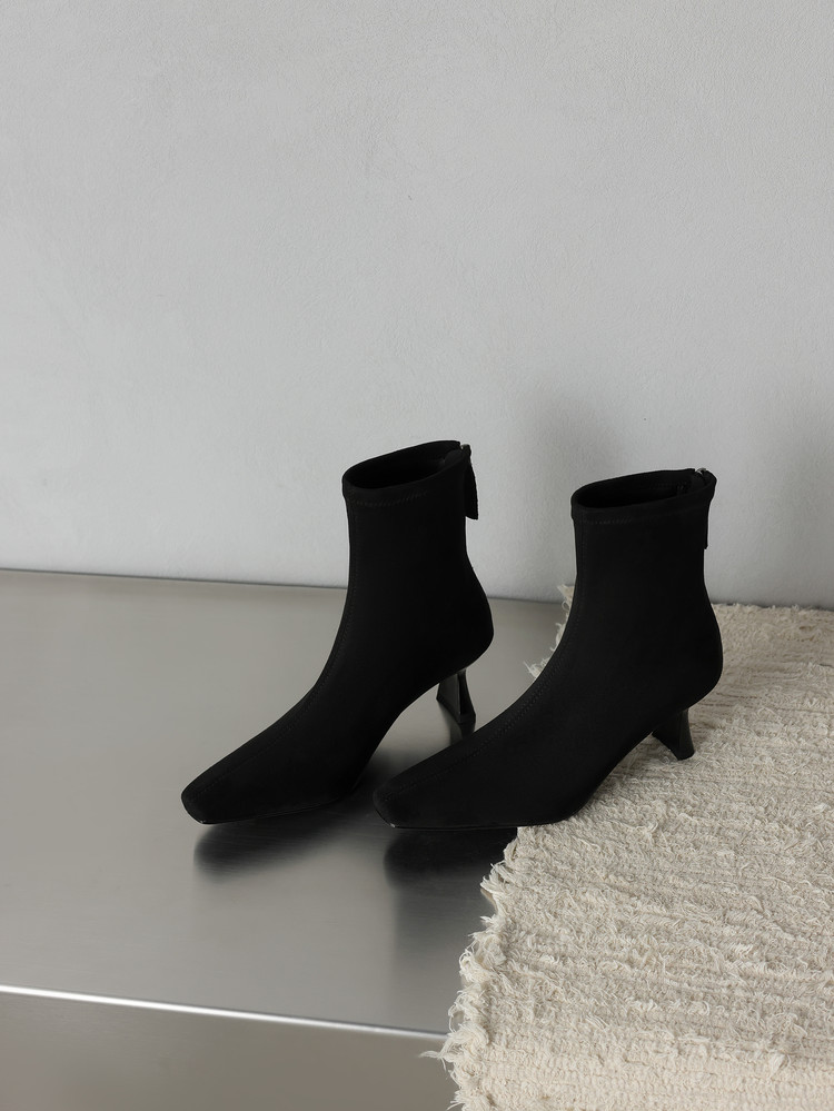 【预售5天】时尚绒面复古粗跟弹力靴女新款气质百搭方头高跟裸靴瘦瘦短靴WC&M3530