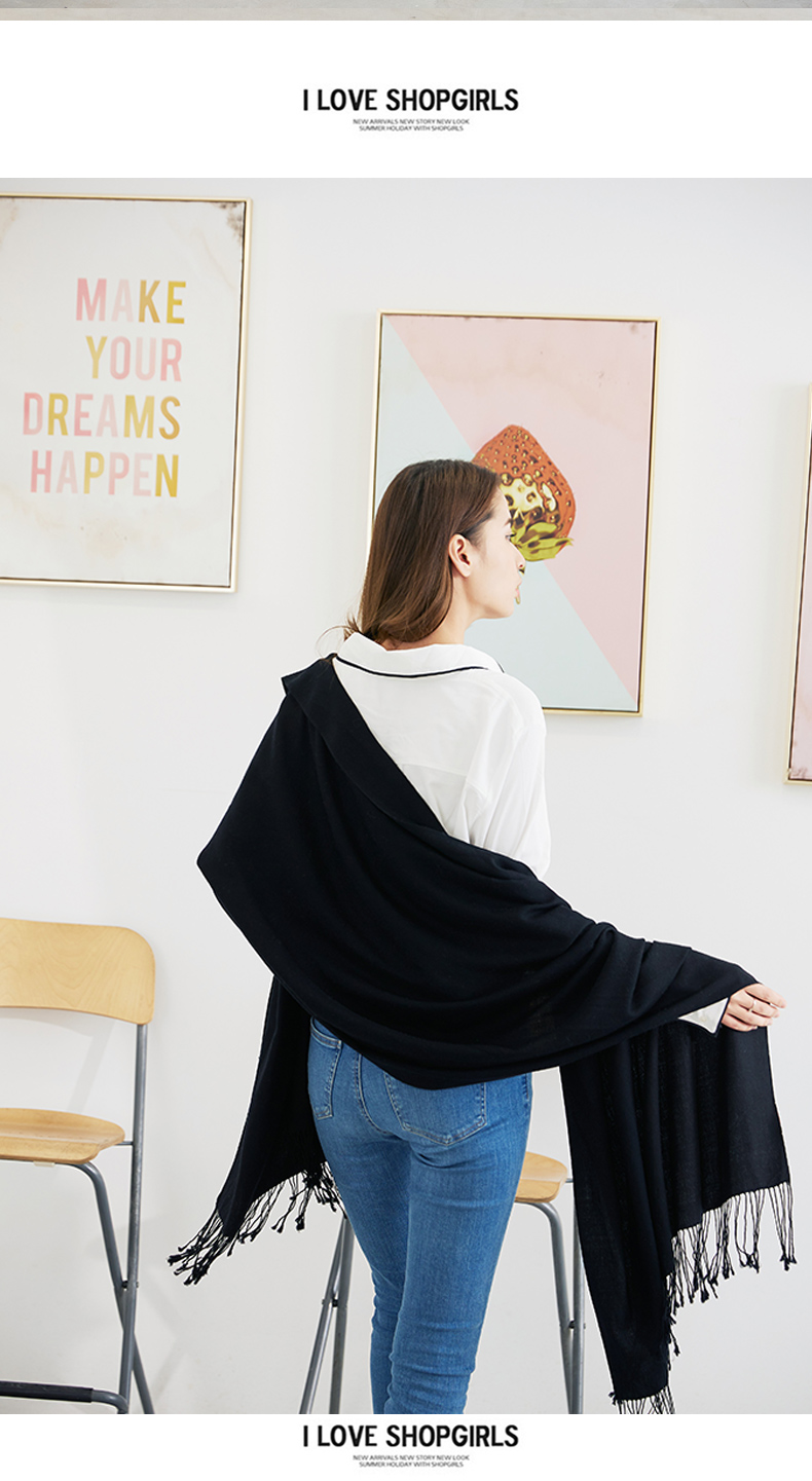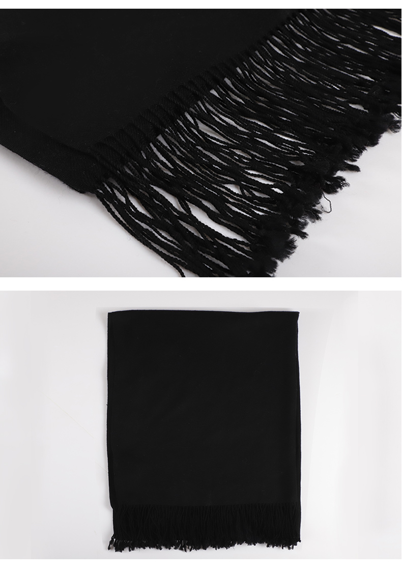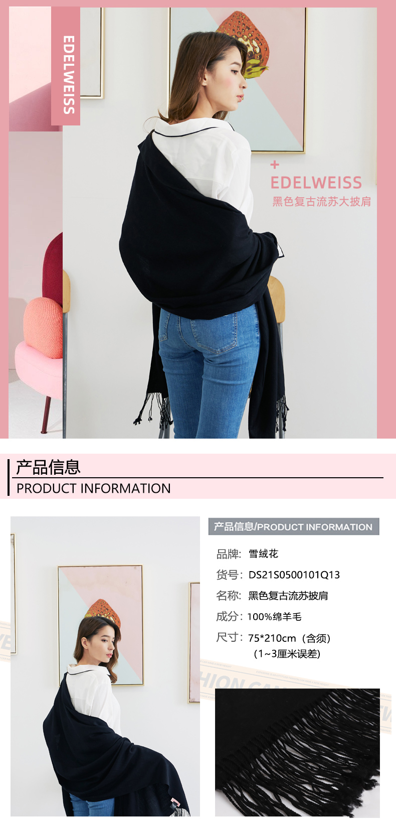 雪绒花Edelweiss 绵羊毛大披肩黑色保暖纯色长方形围巾春秋季通用