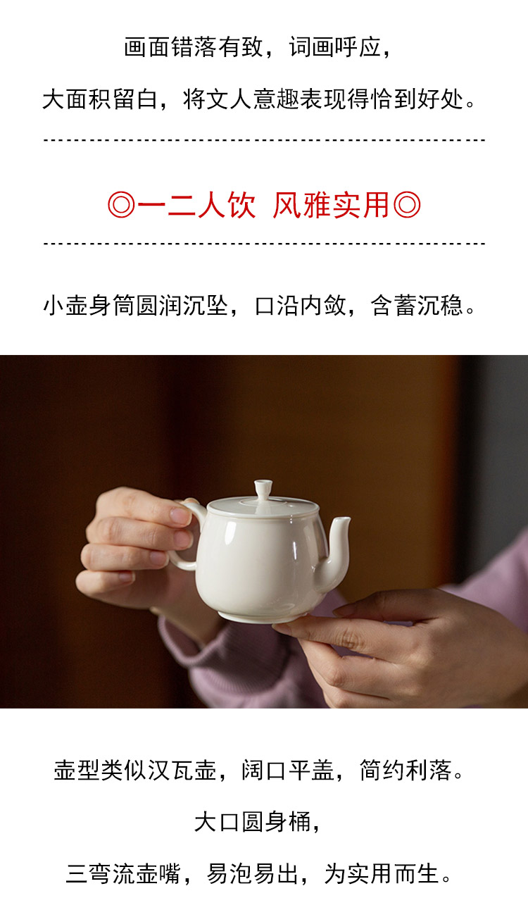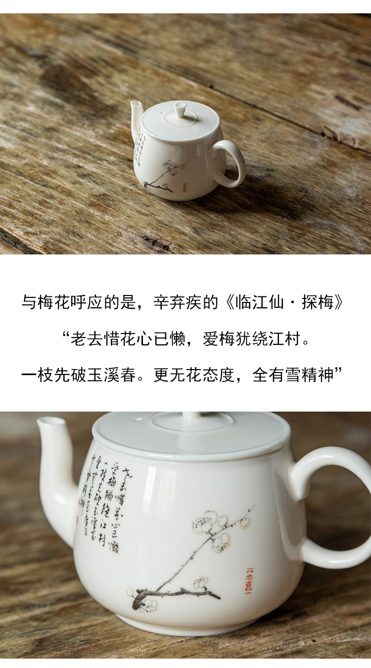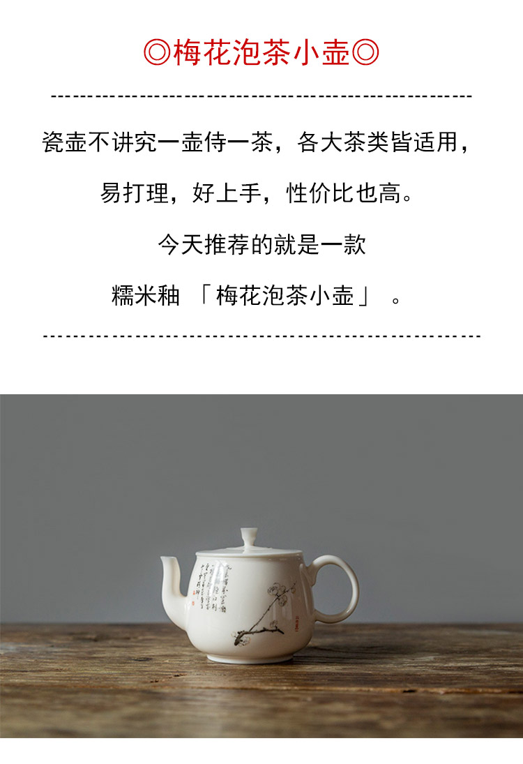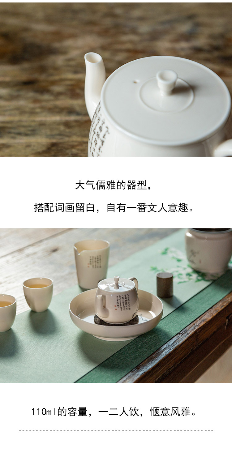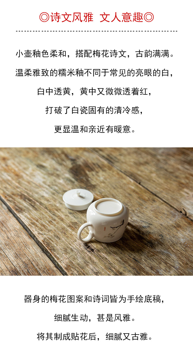 茶香记 梅花泡茶小壶110ml泡茶壶糯米釉诗文风雅陶瓷中式功夫茶具