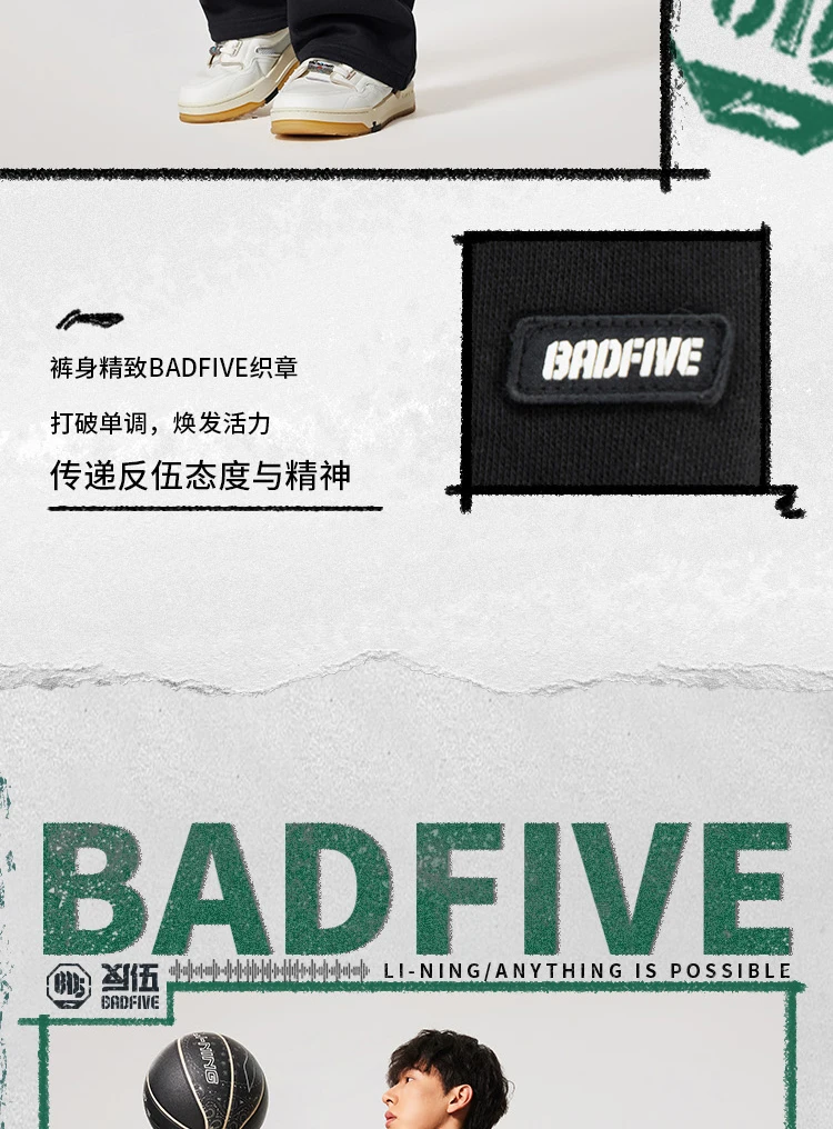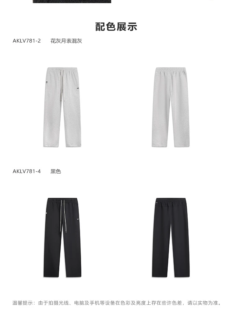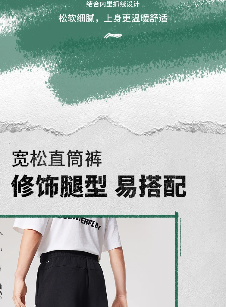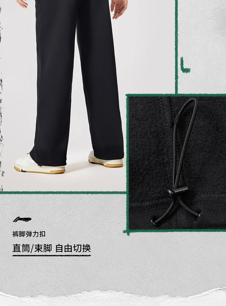 李宁反伍BADFIVE男子直筒加绒保暖宽松卫裤AKLV781