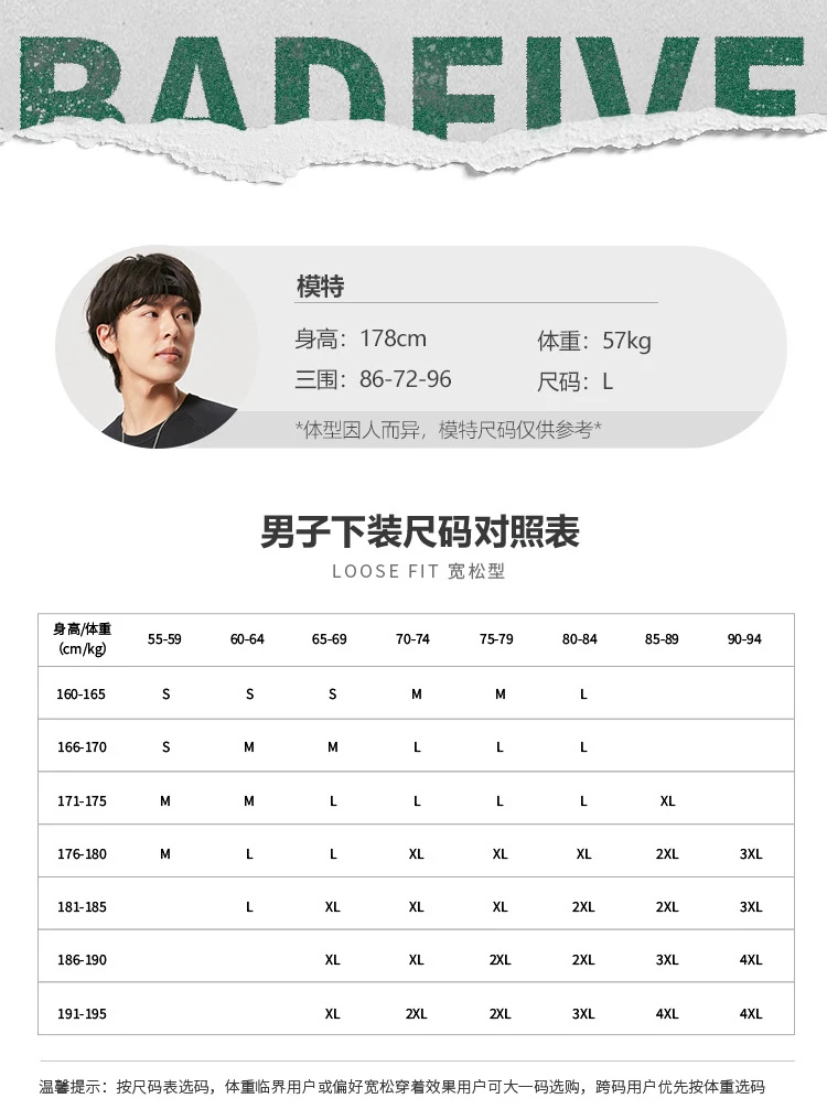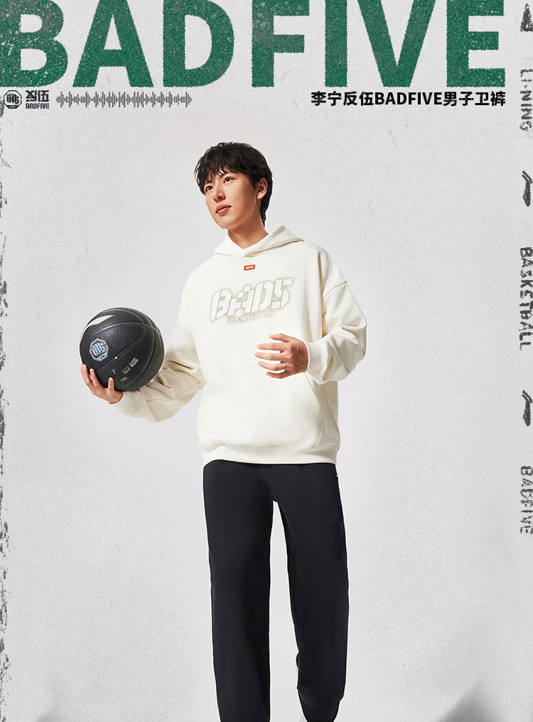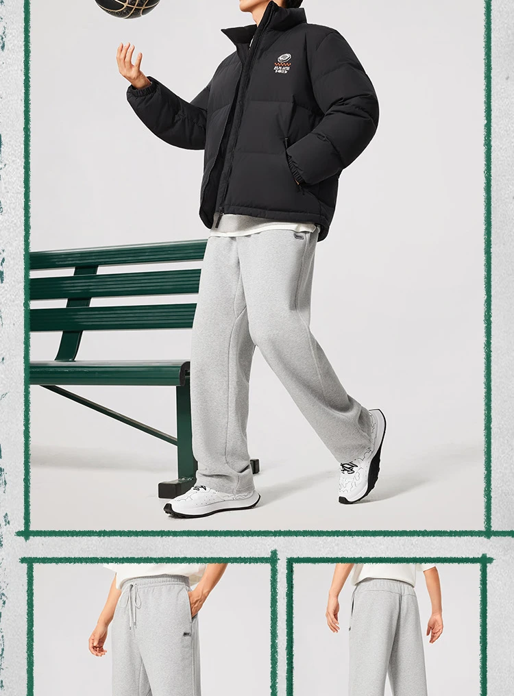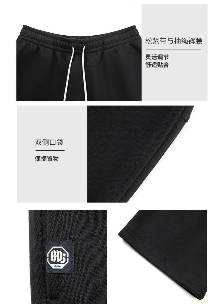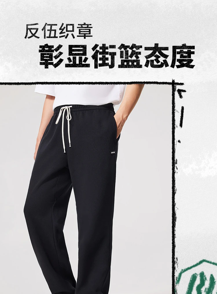 李宁反伍BADFIVE男子直筒加绒保暖宽松卫裤AKLV781