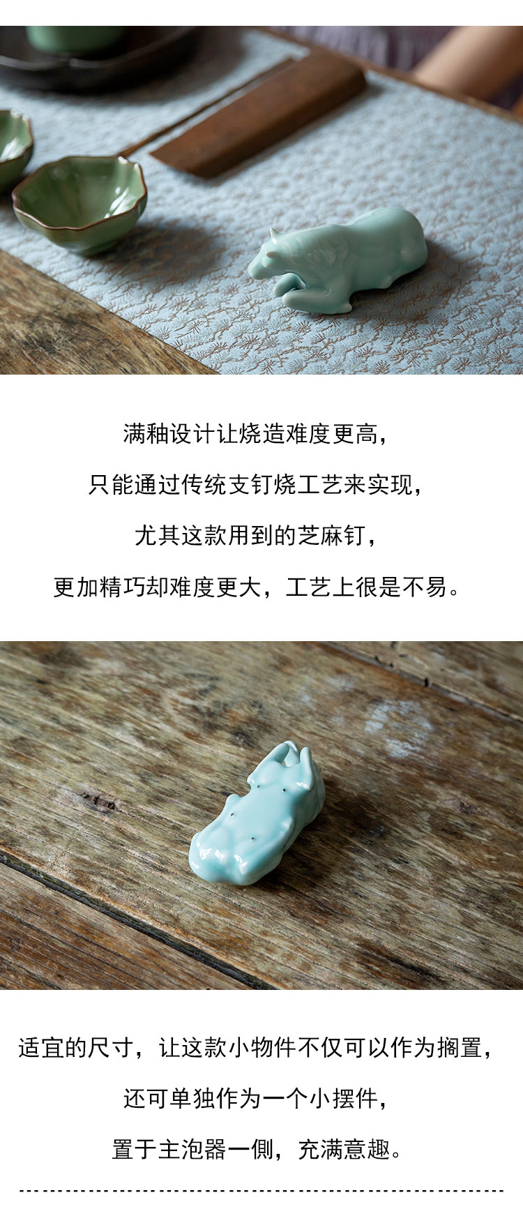 茶香记 青瓷 张英英 茶道摆件 支钉烧粉青小马搁置 摆件 笔搁