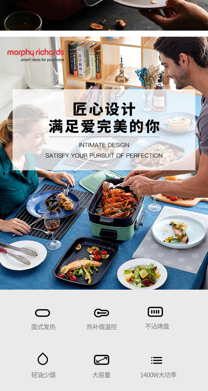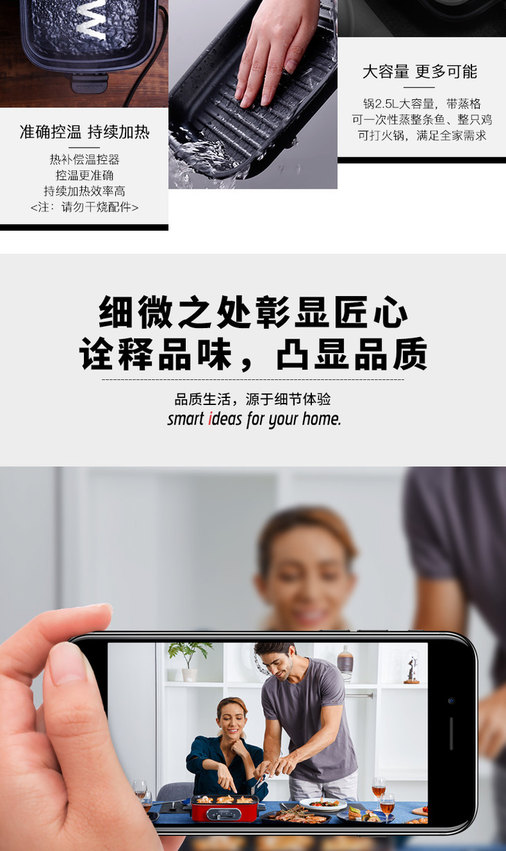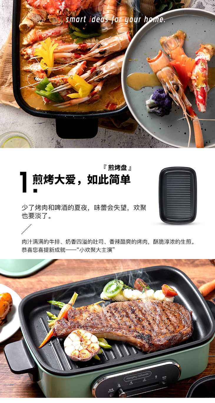 摩飞多功能料理锅电烧烤肉锅炉网红锅一体家用蒸煮炒煎电火锅