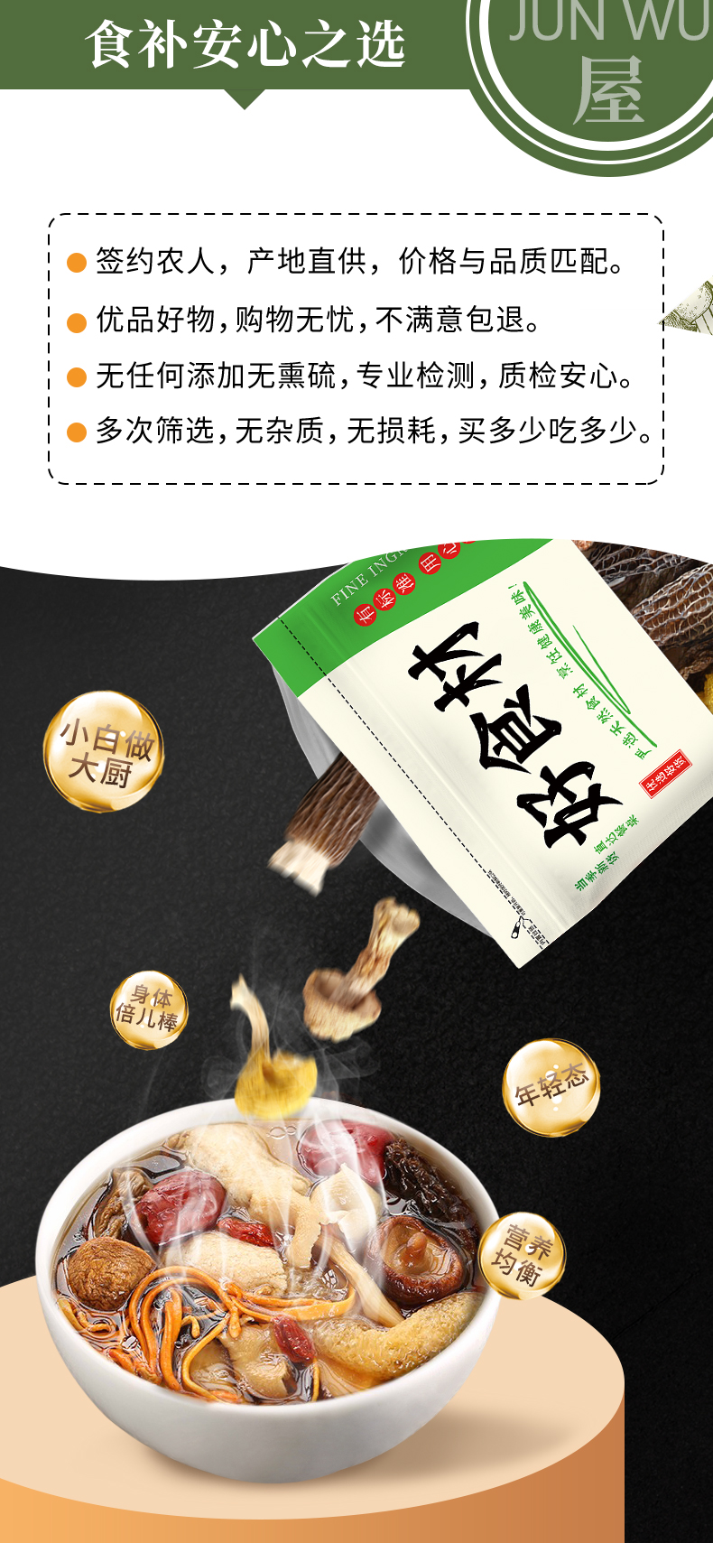 | 【品名】在菌屋云南野生拾菌汤包 【规格】70g/袋(供5-6人食用) 【配料】羊肚菌 姬松茸 鹿茸菇 虫草花 珍珠香菇 雪山菇 鸡油菌 【保质期】12个月 【产地】云南 【发货地】江苏徐州 【发货快递】中通、圆通、顺丰 【不发货地区】港澳台地区不发 【补邮费地区】新疆、西藏+20元,甘肃、青海、宁夏、内蒙、海南+8元 【发货时效】48小时发货,节假日顺延 |