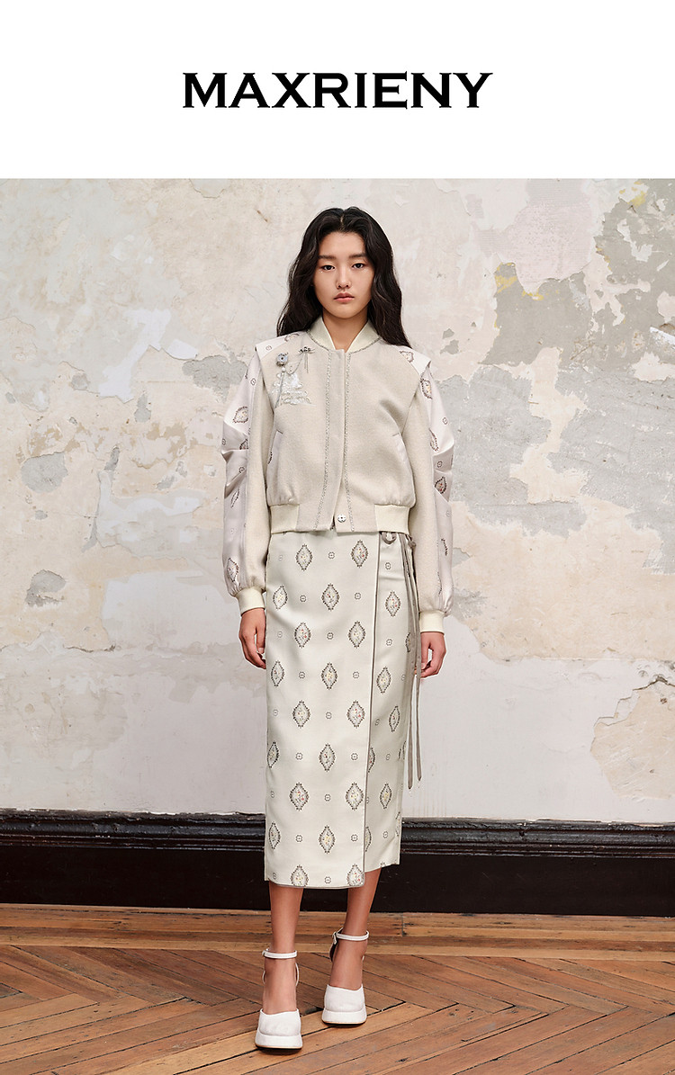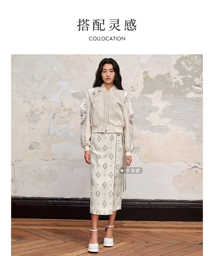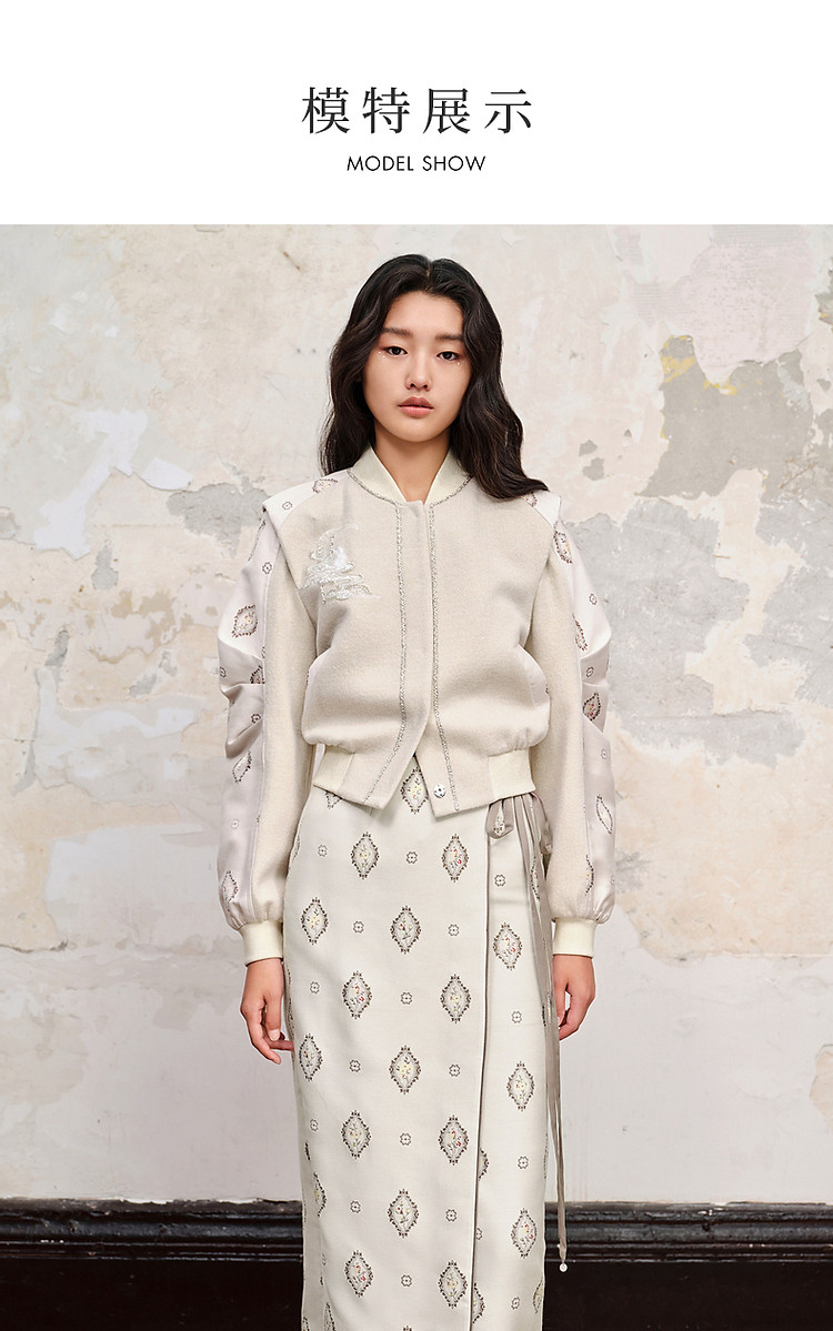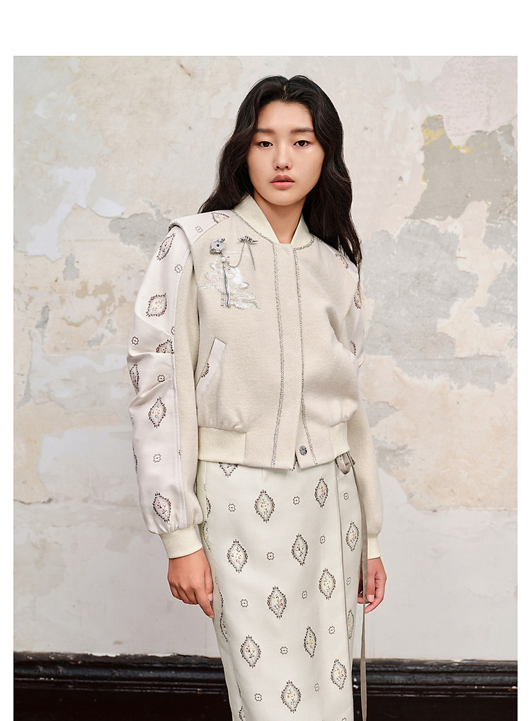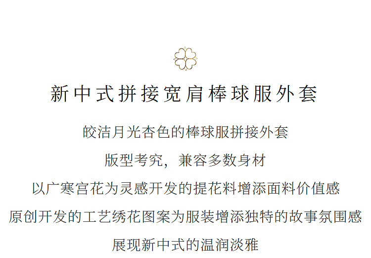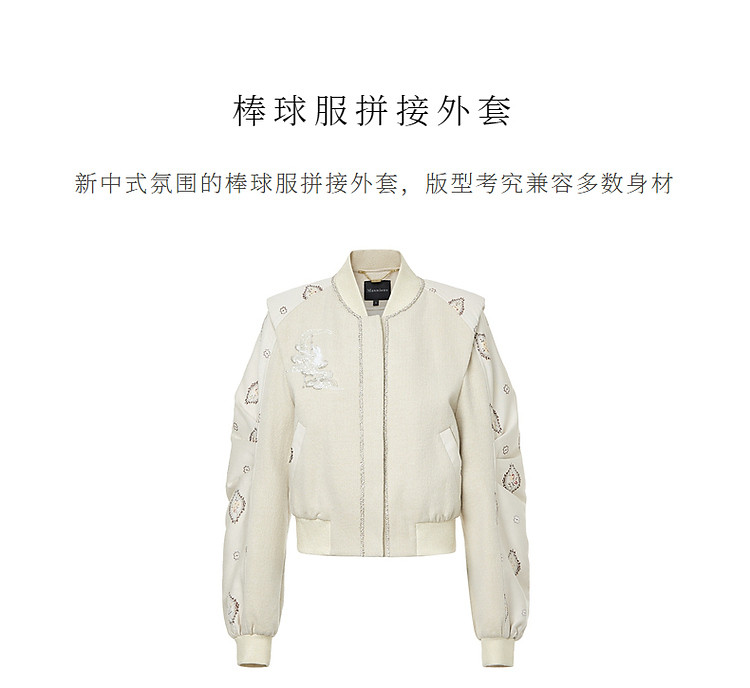 新中式拼接宽肩棒球服绣花外套23秋冬