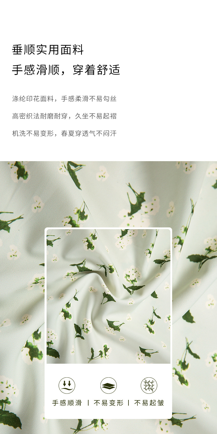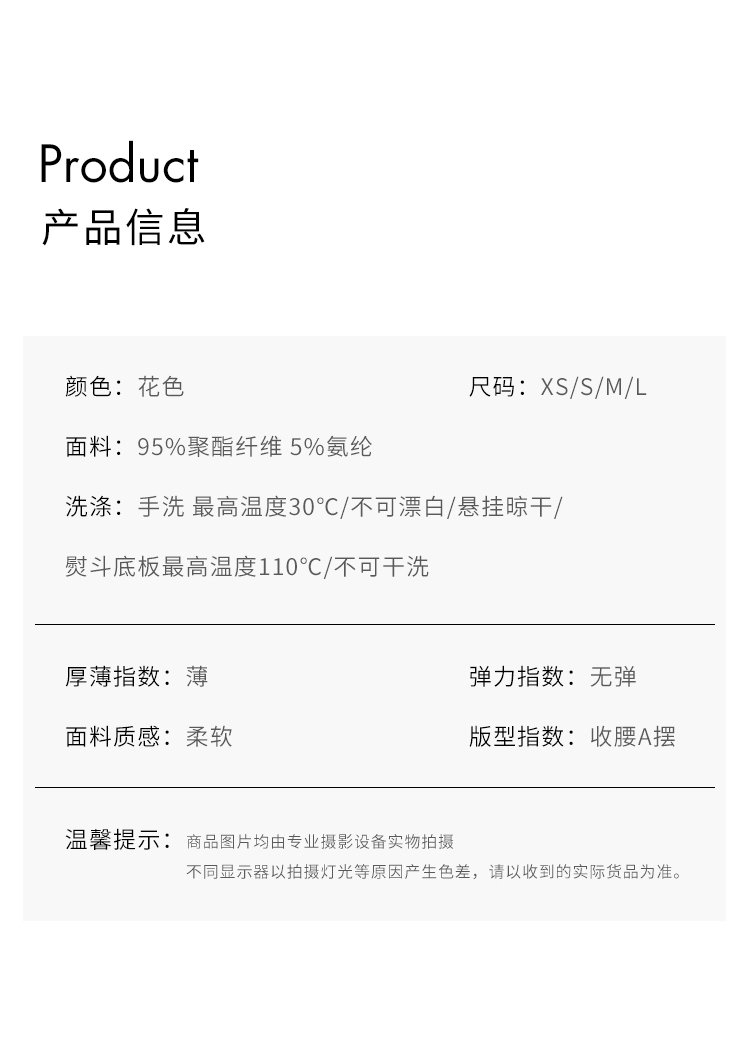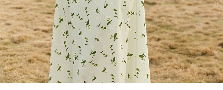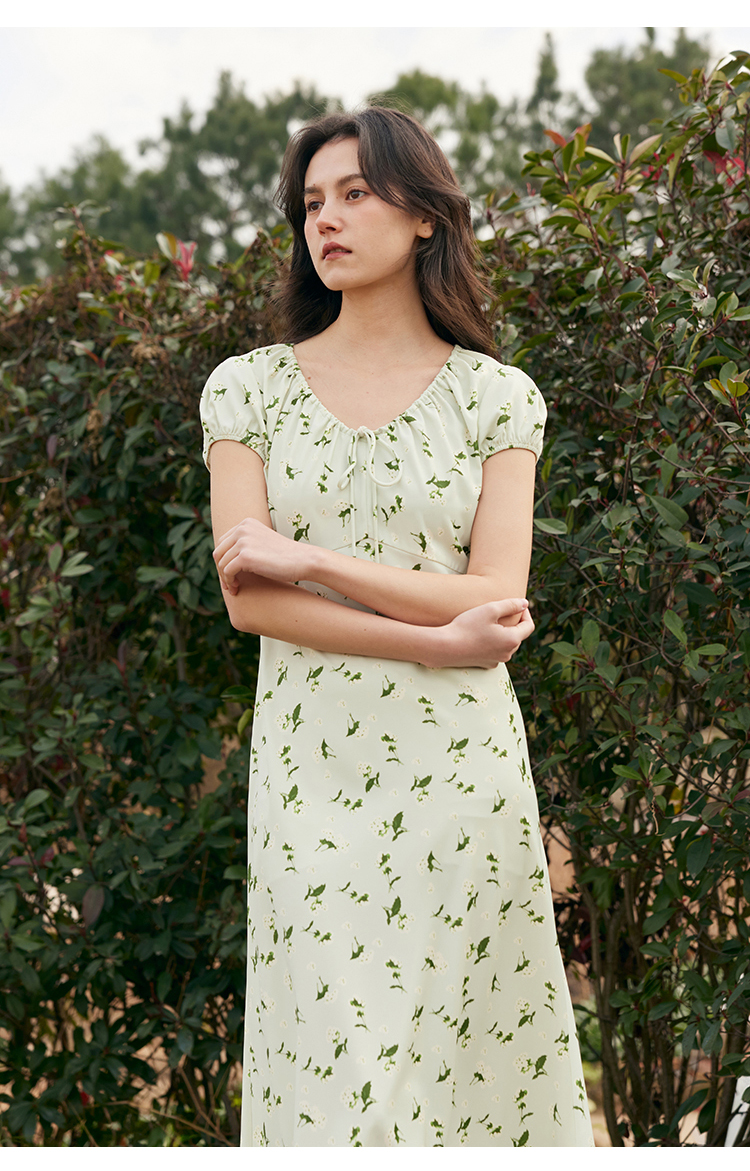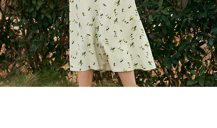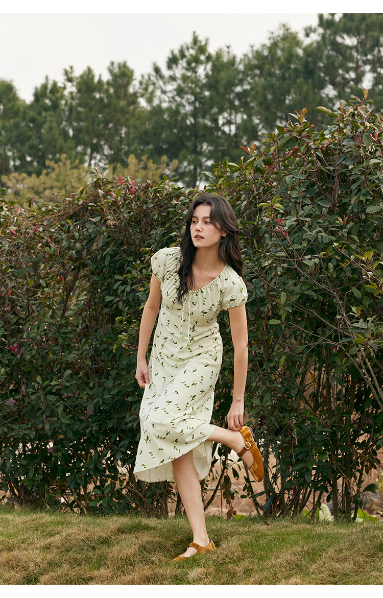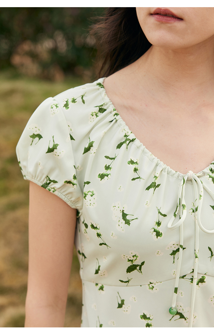 HeyDress法式茉莉印花连衣裙女夏季V领收腰设计浪漫气质度假裙子