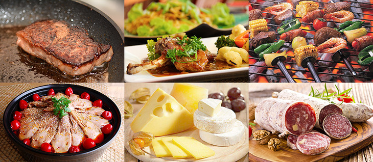 煎牛排、羊肉、烧烤及川菜,芝士、腊肠等。