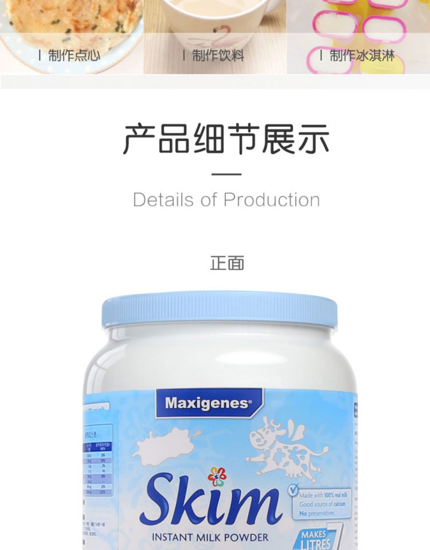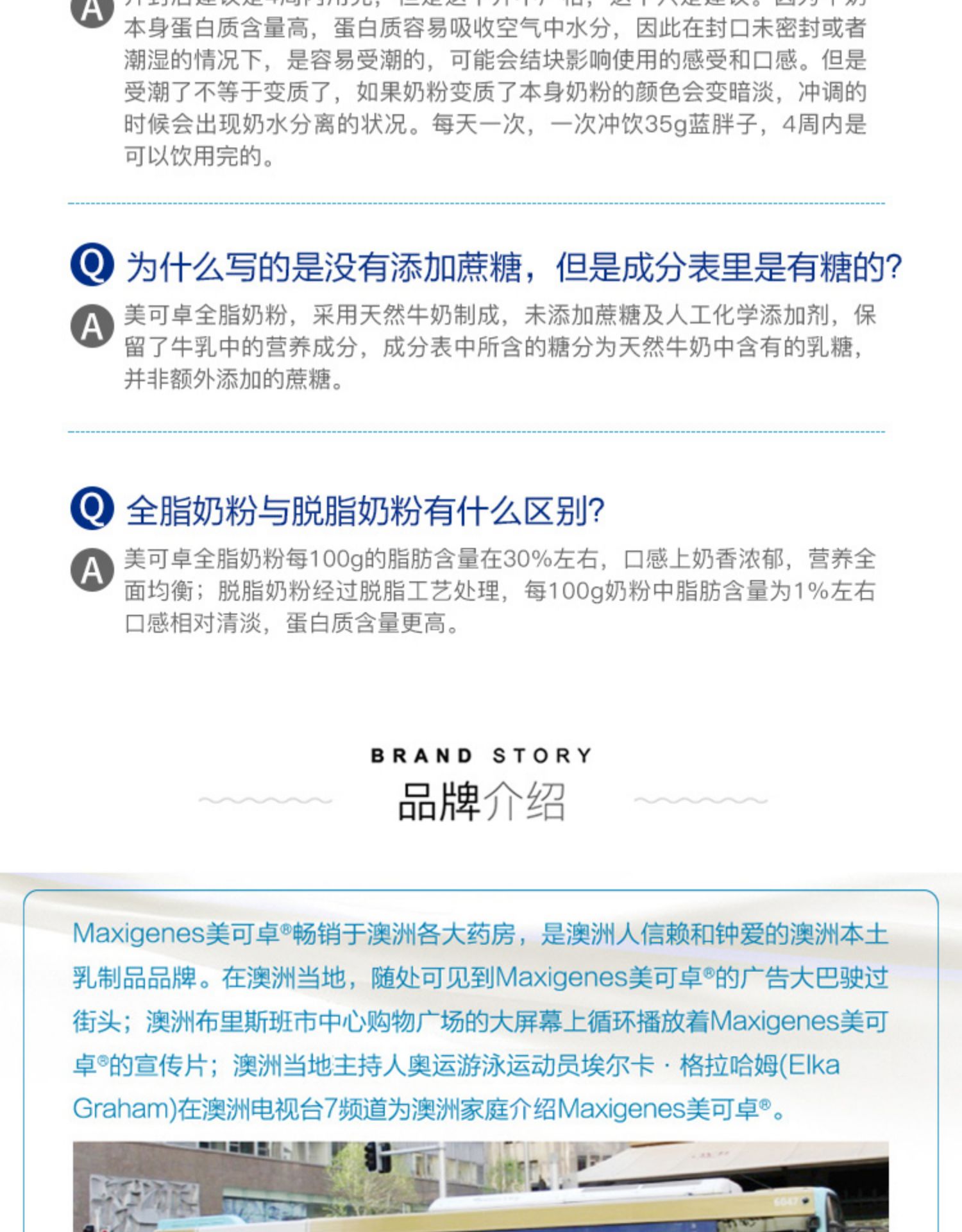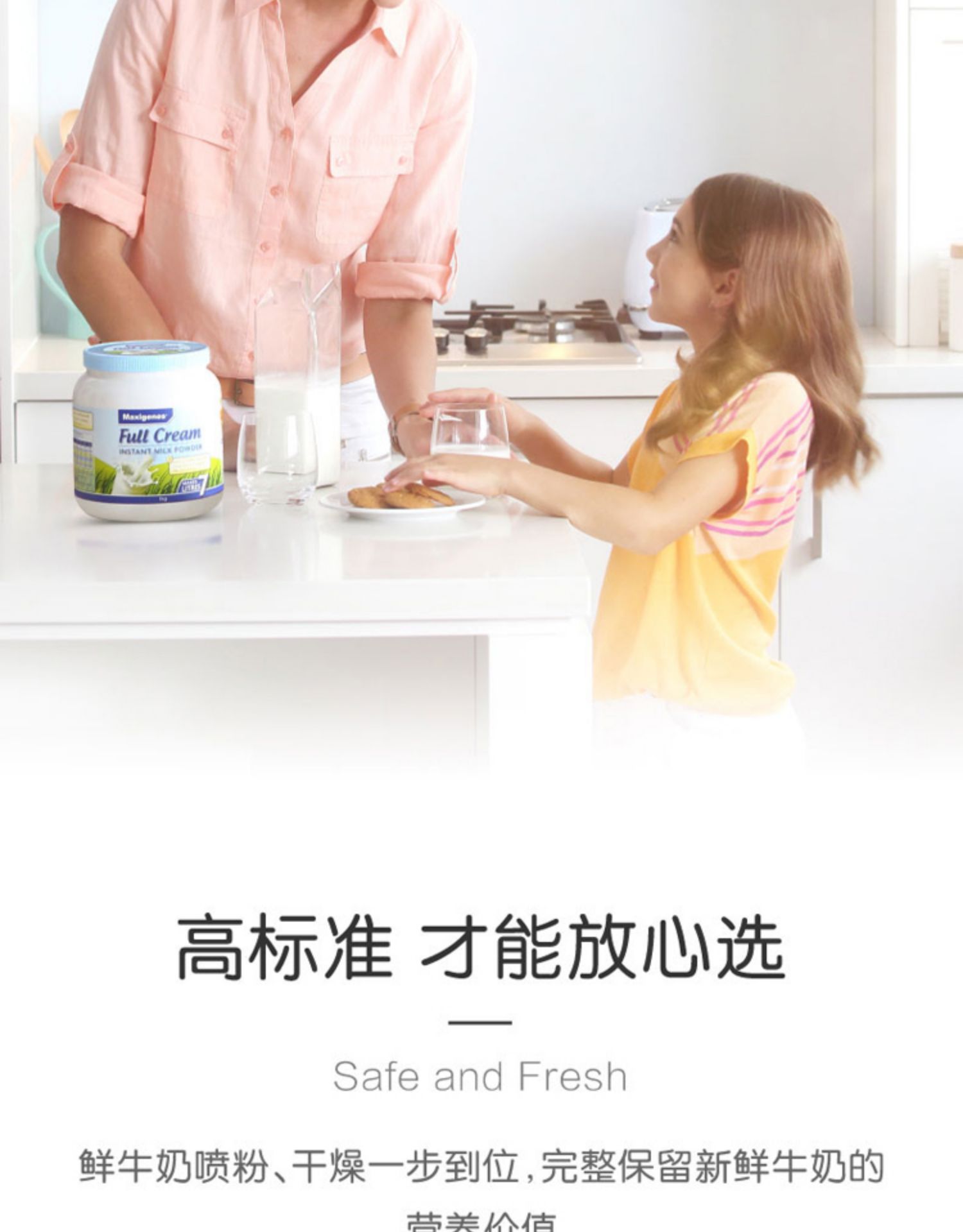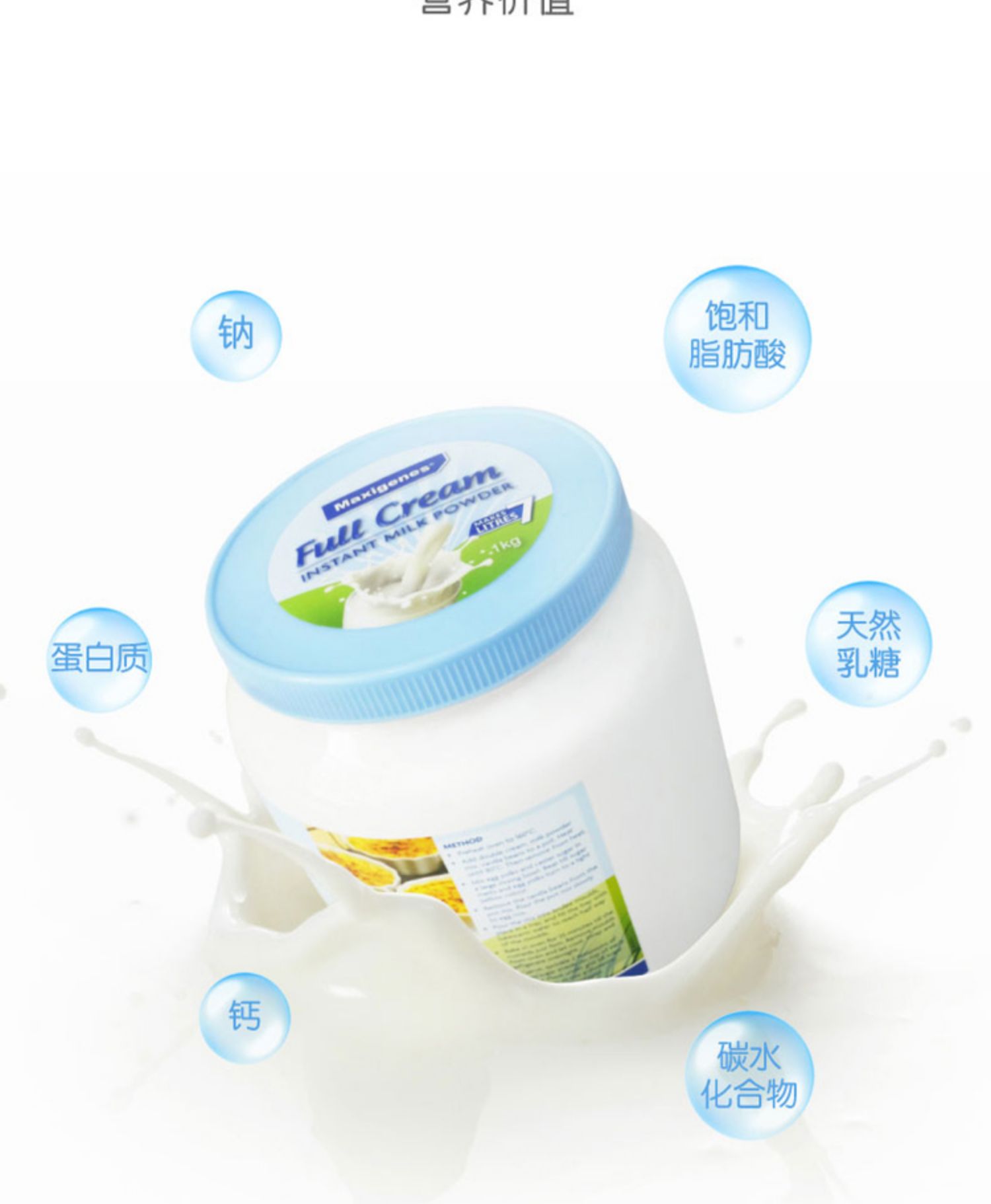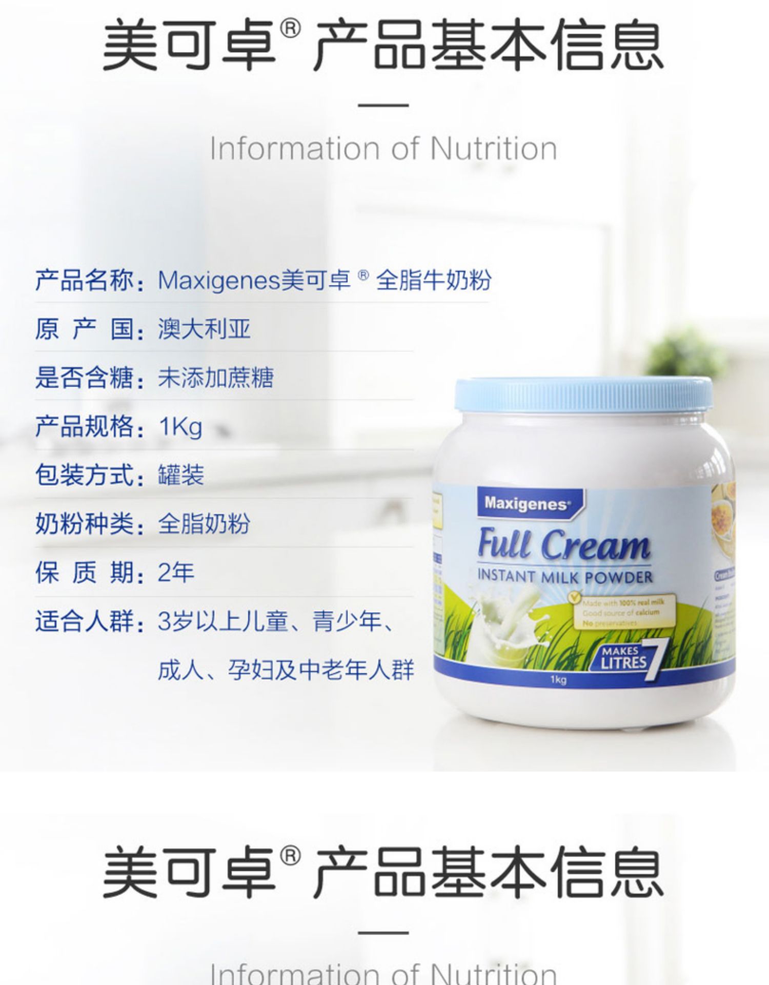 美可卓 Maxigenes 澳洲进口美可卓蓝胖子全脂蓝妹子脱脂牛奶粉学生1kg 跨境购