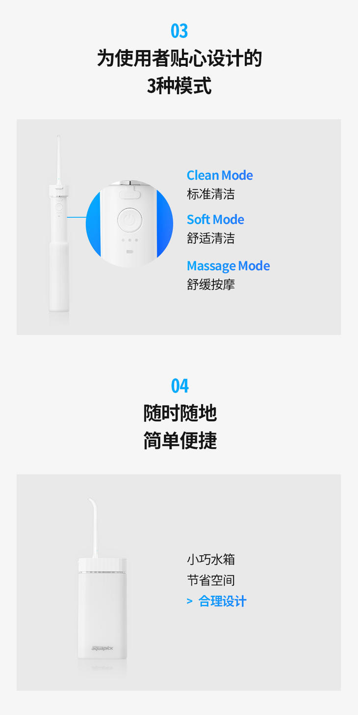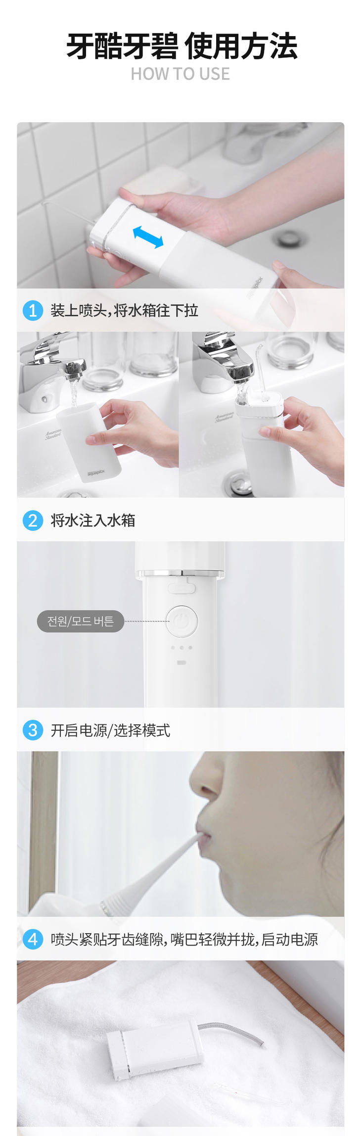 【20年韩国品牌 精工品质】aquapick牙酷牙碧冲牙器 无线便携 脉冲净齿 2种款式可选