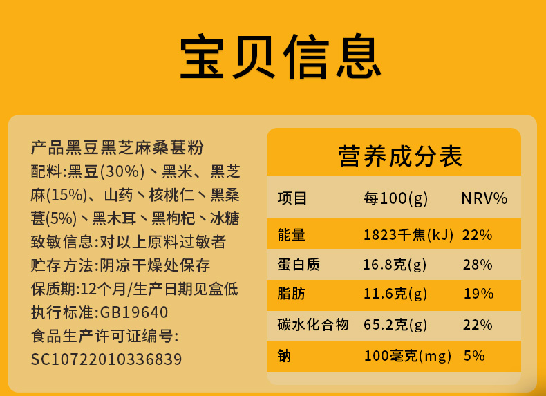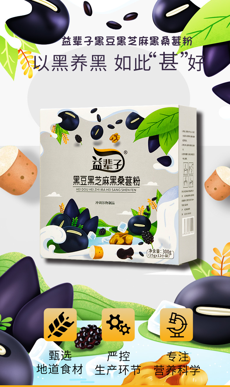 【大桥食品】黑豆黑芝麻 黑桑葚粉300g ✅ 0添加糖 · 醇香自然甜