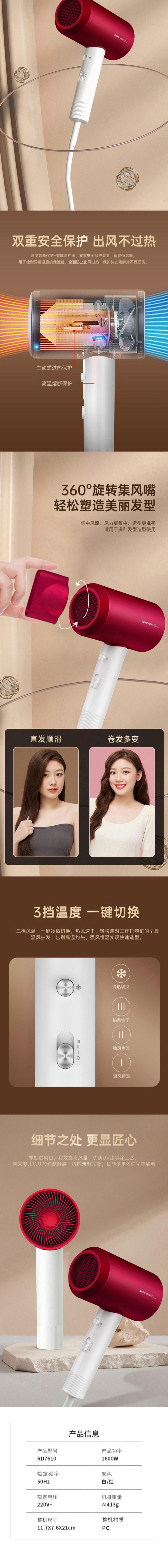 超人 电吹风红1600W RD7610