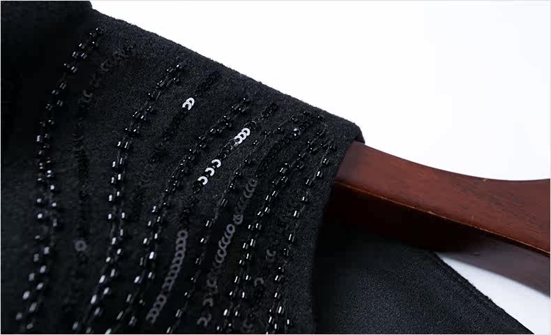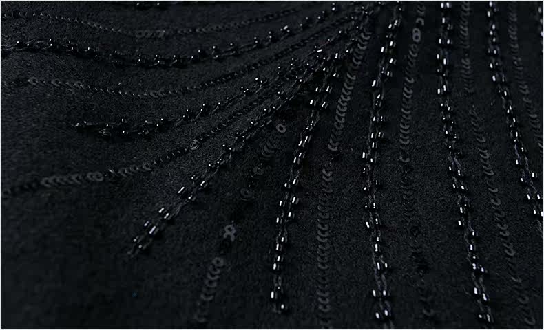 FMY-F20DL36004冬季复古气质优雅绣花黑色毛呢连衣裙