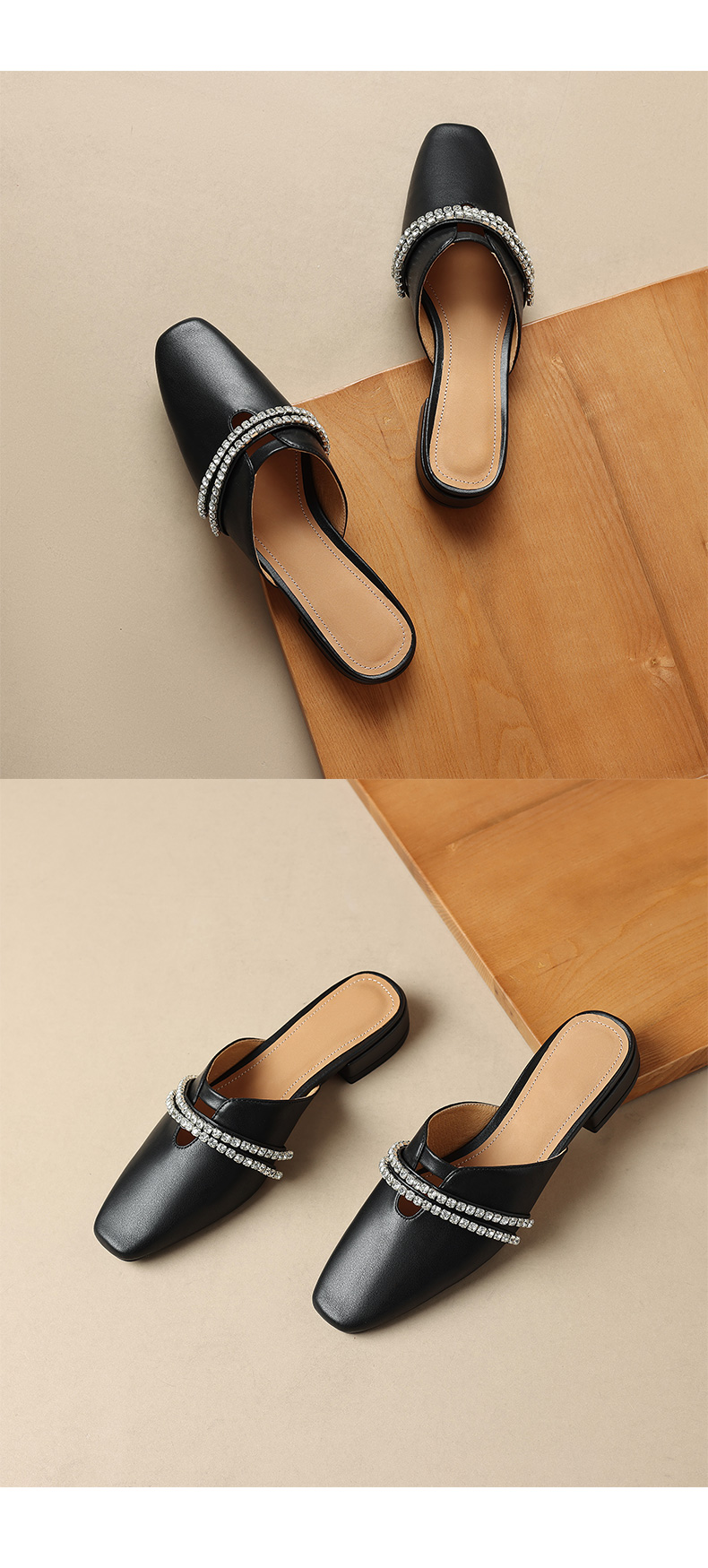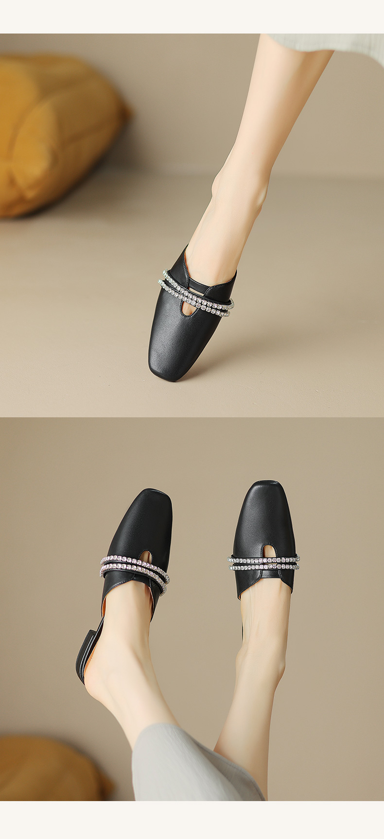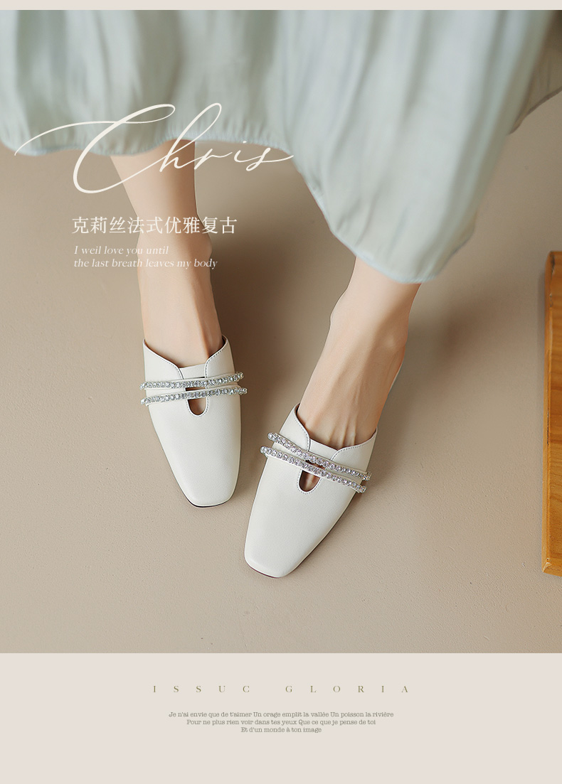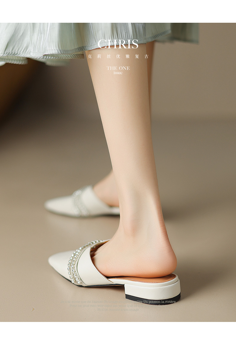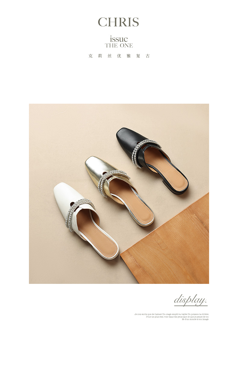优雅法式,包头里外全皮低跟拖鞋HBP-5366