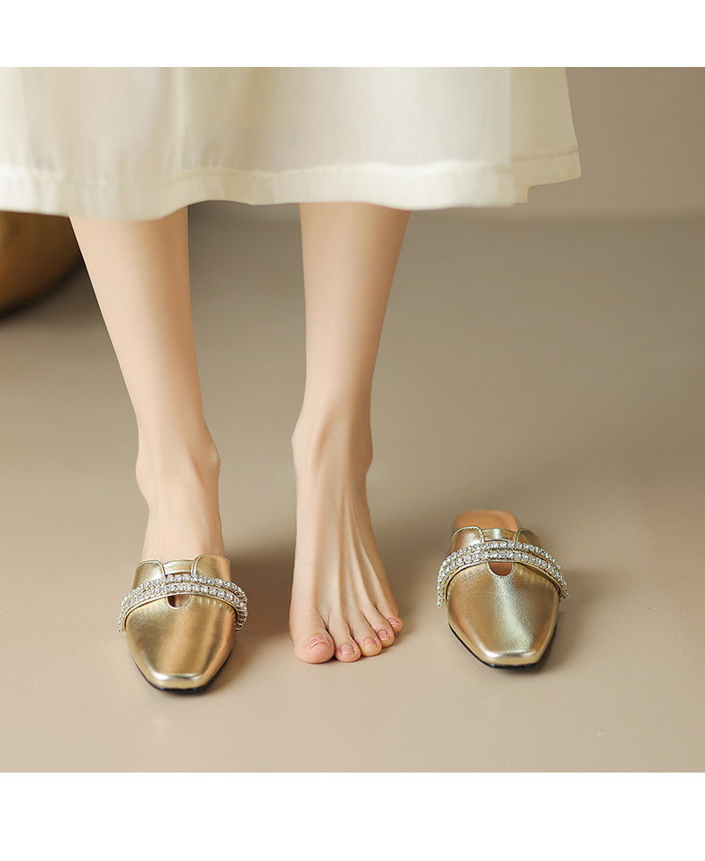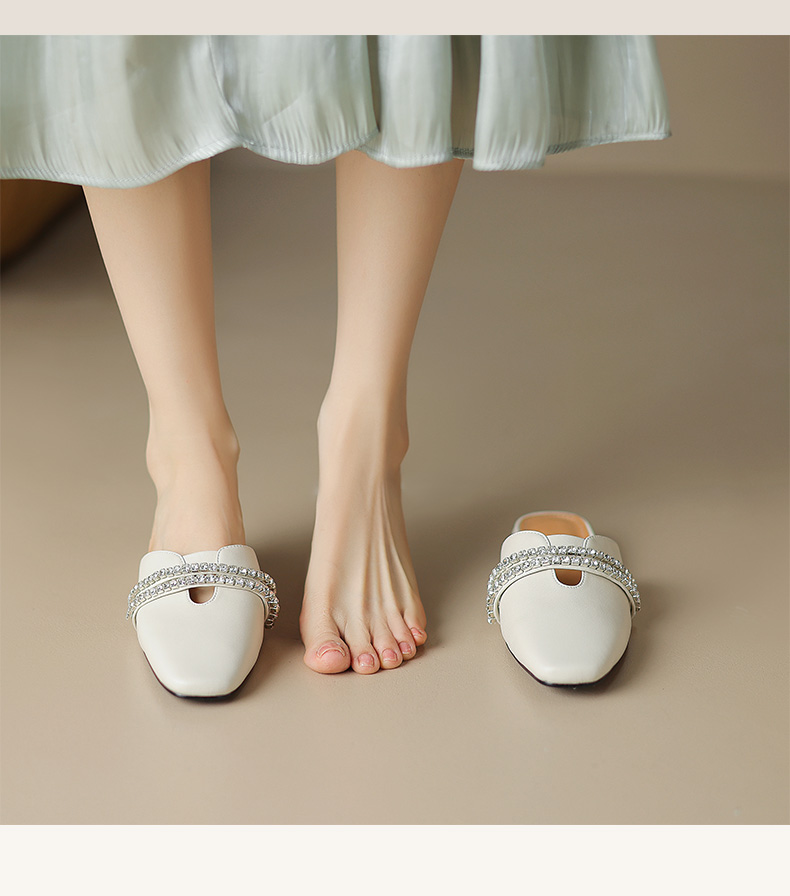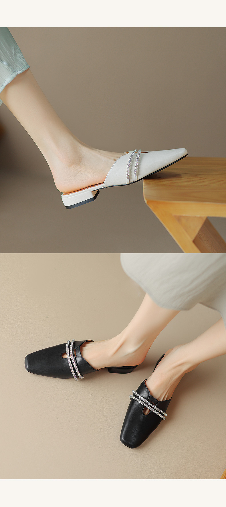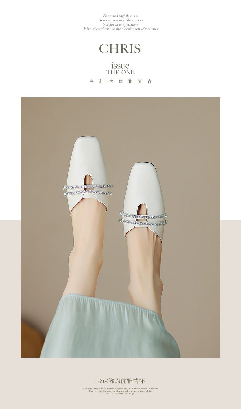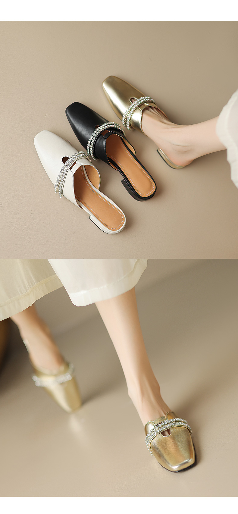 优雅法式,包头里外全皮低跟拖鞋HBP-5366
