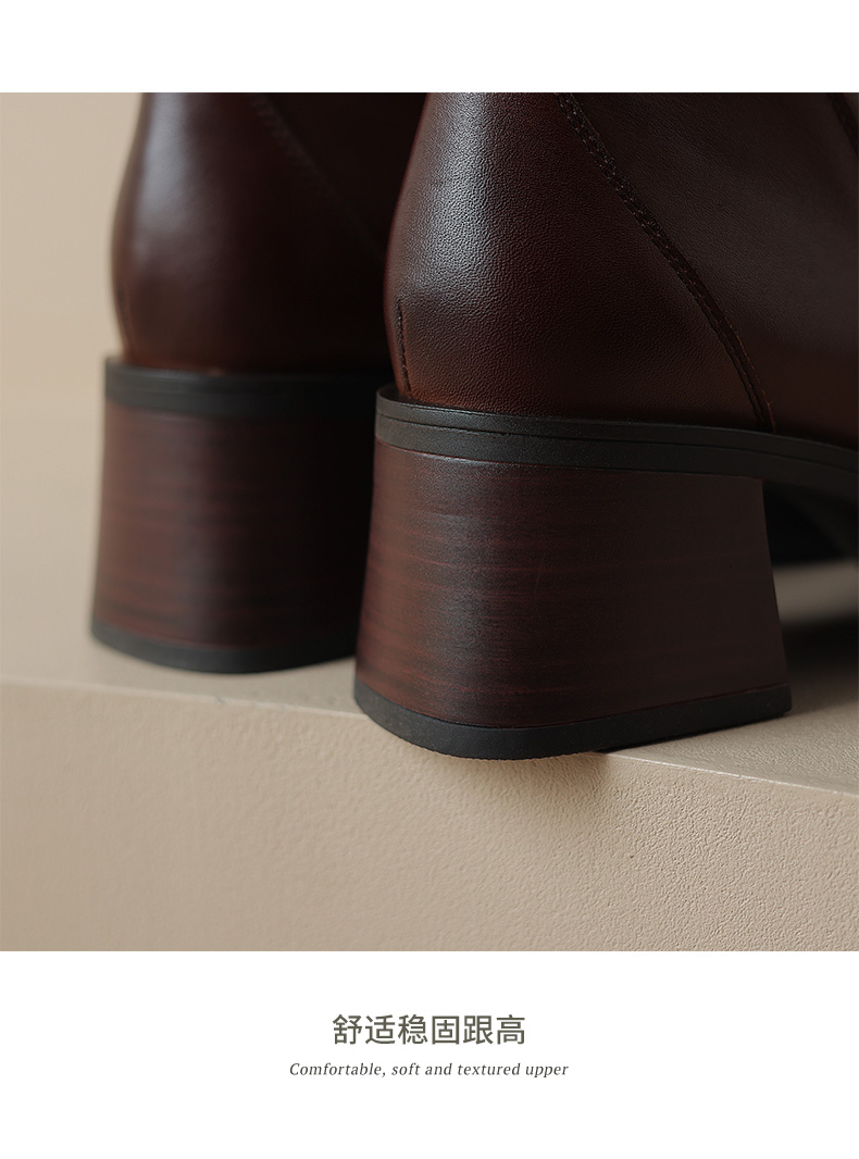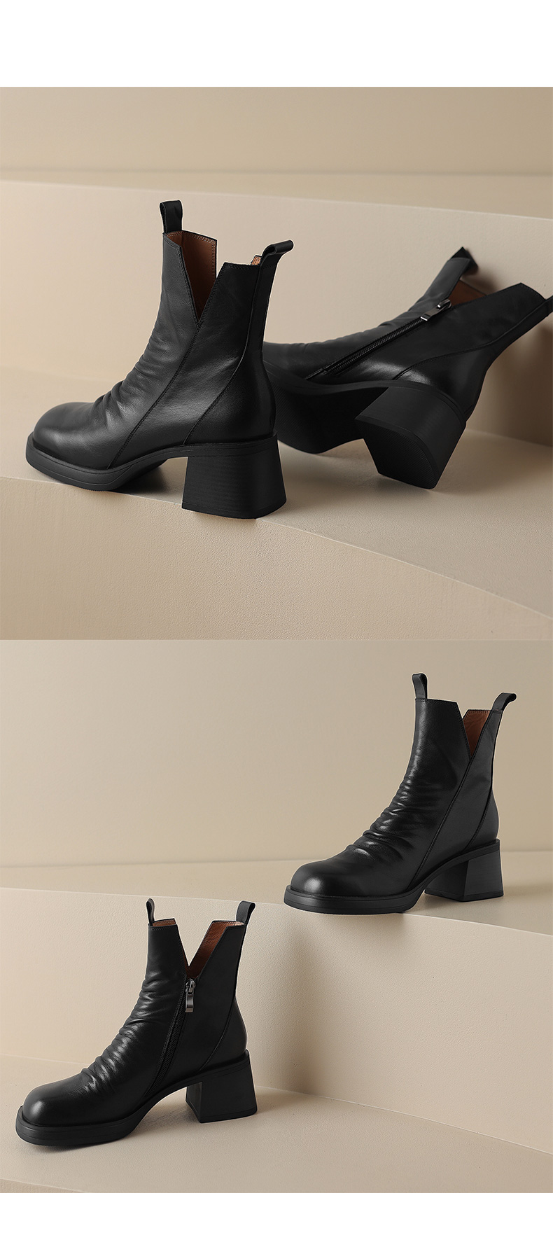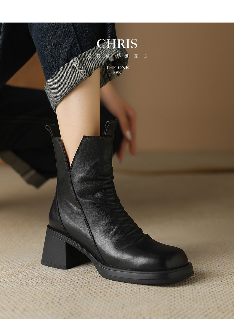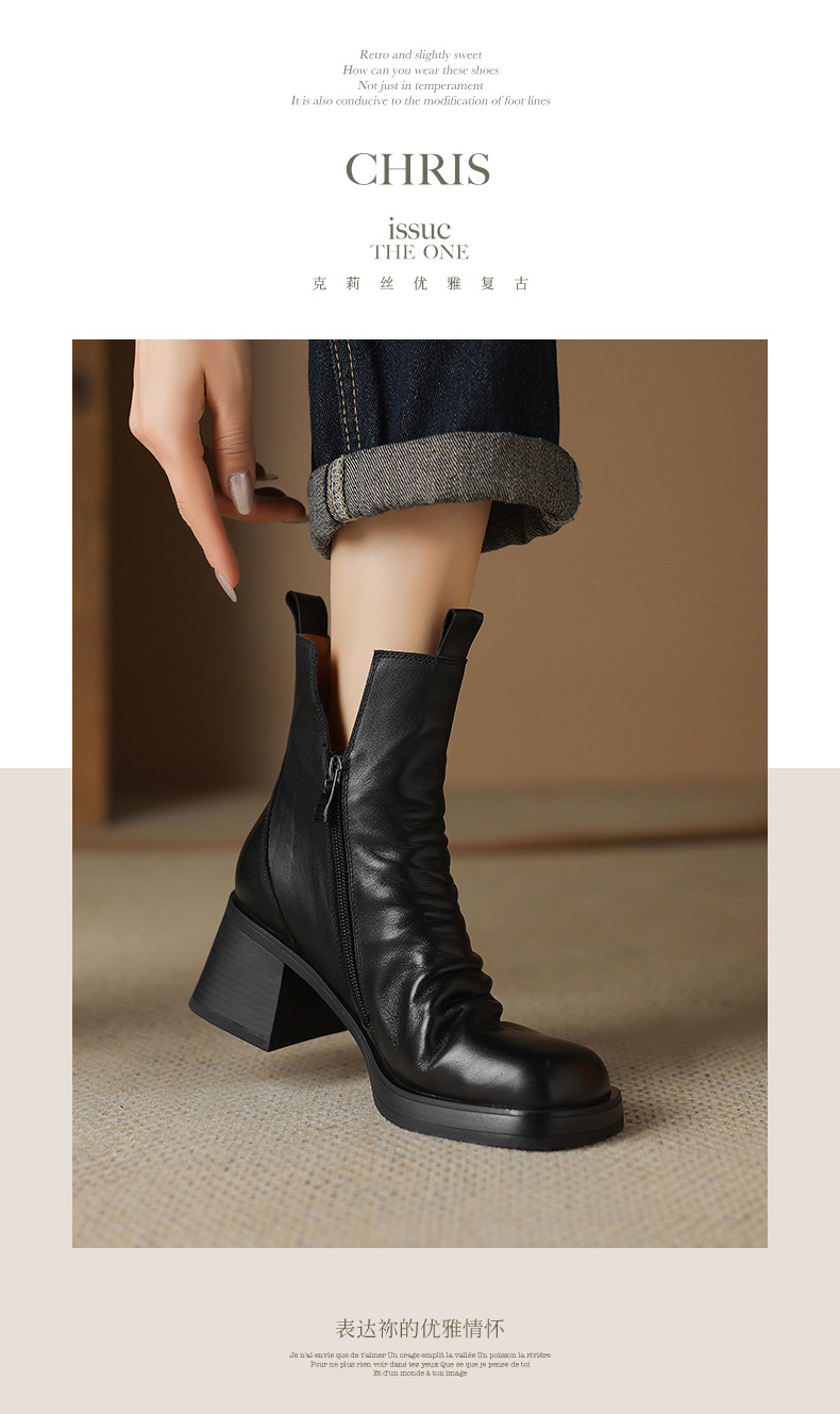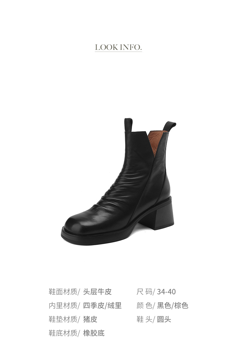 秋冬新款,头层牛皮粗跟圆头短靴YX-A1010