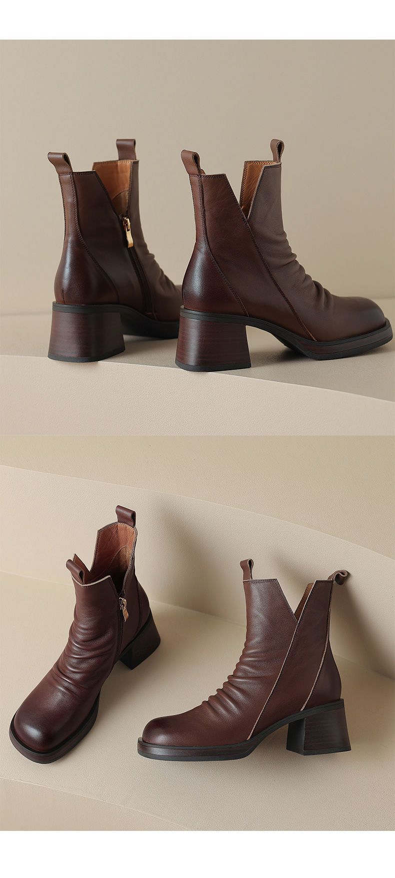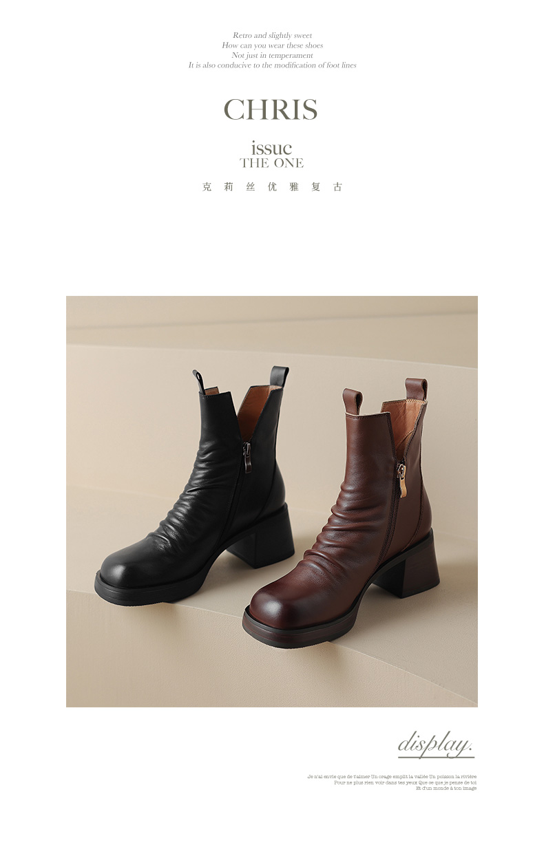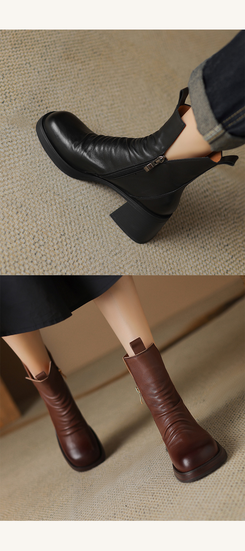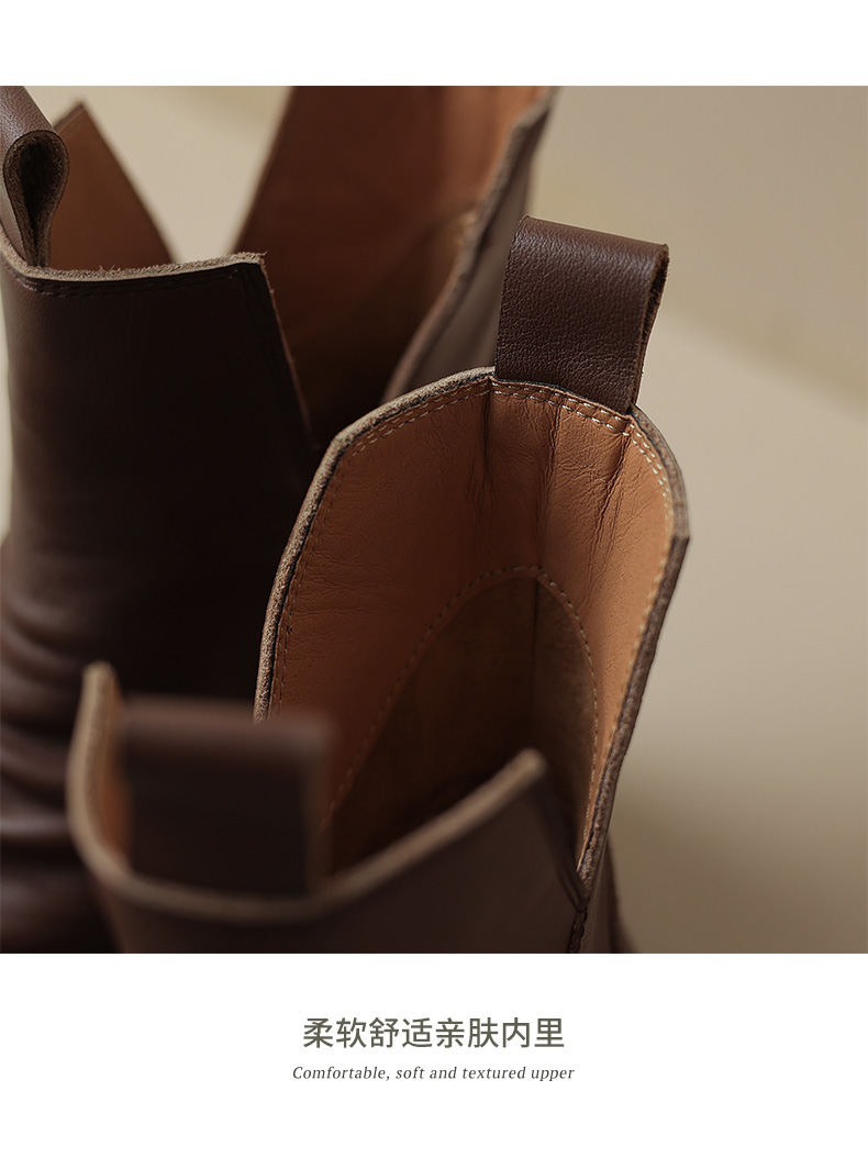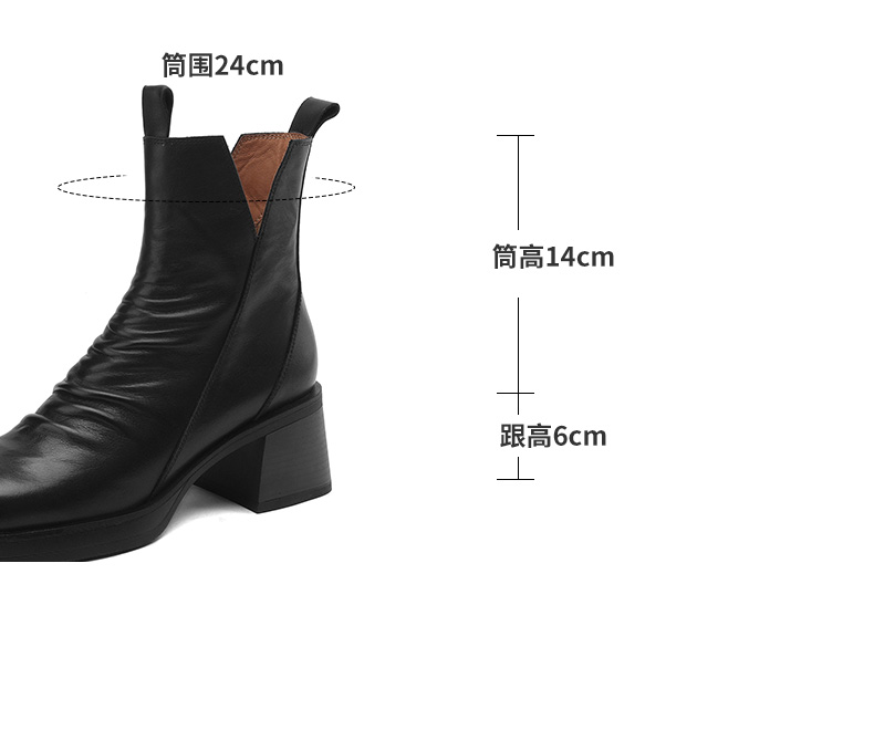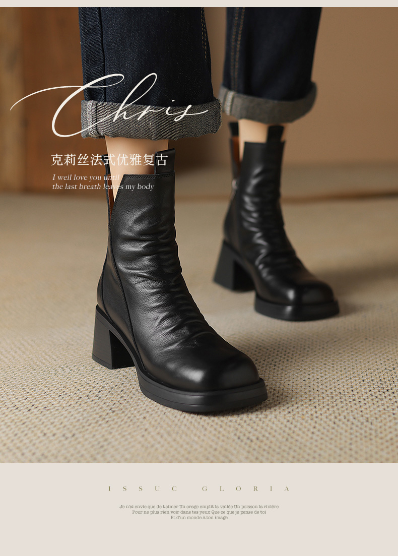 秋冬新款,头层牛皮粗跟圆头短靴YX-A1010