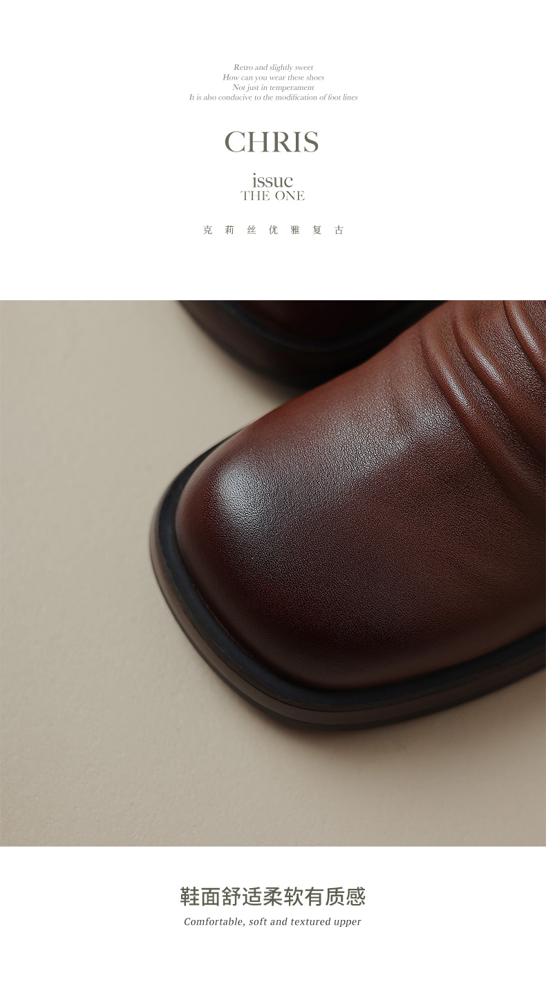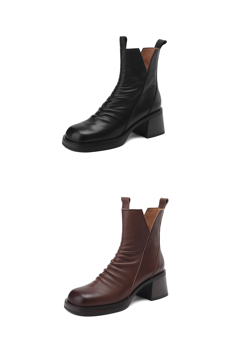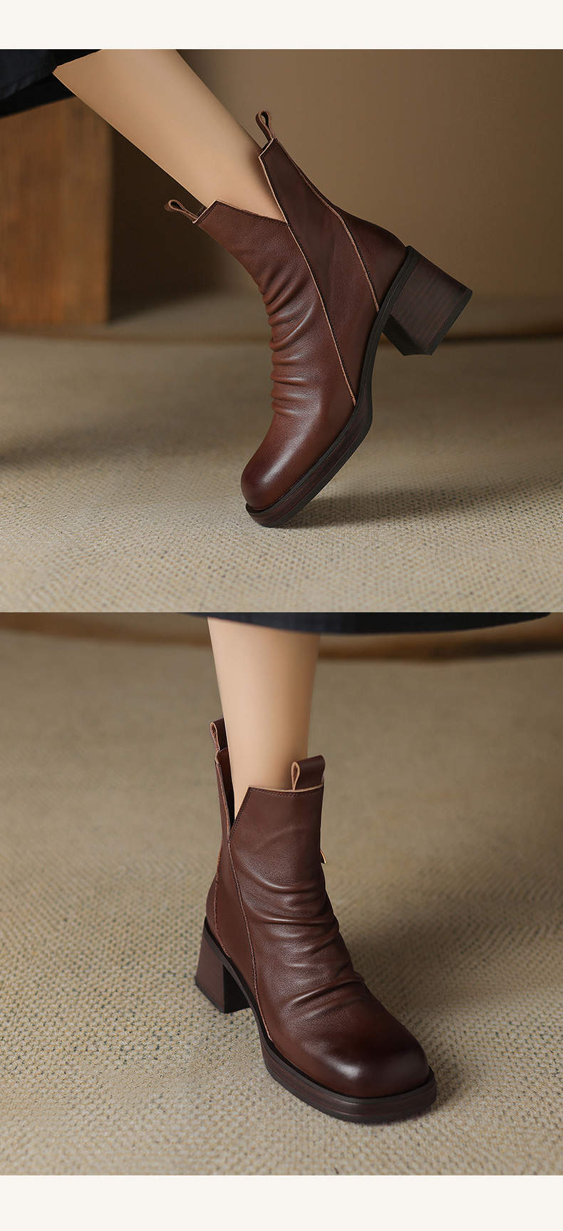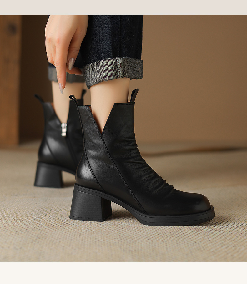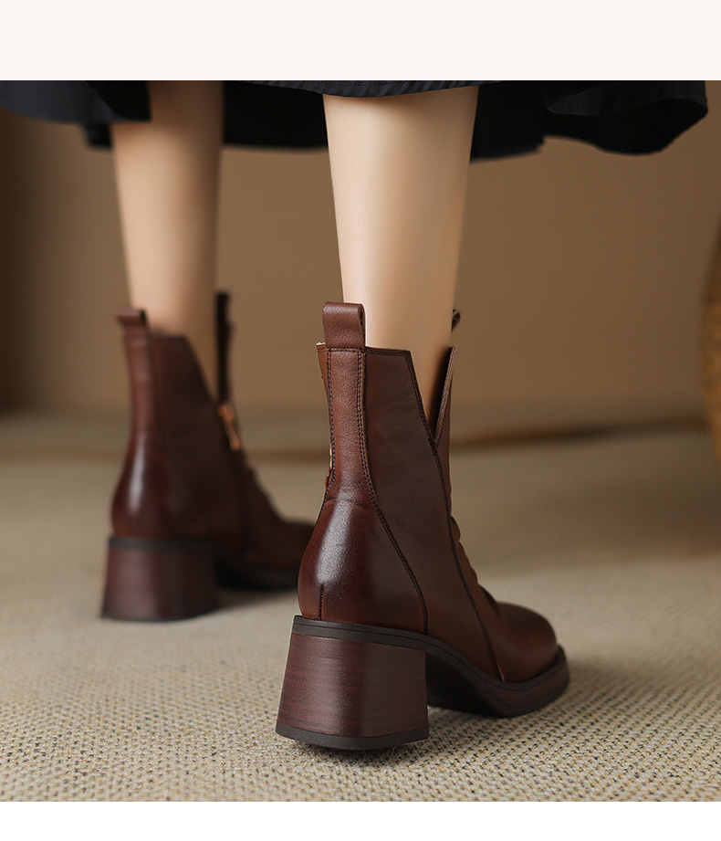 秋冬新款,头层牛皮粗跟圆头短靴YX-A1010