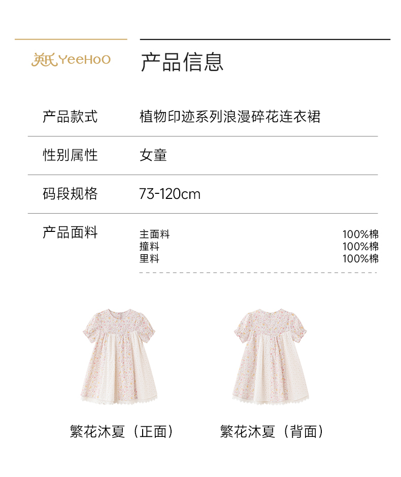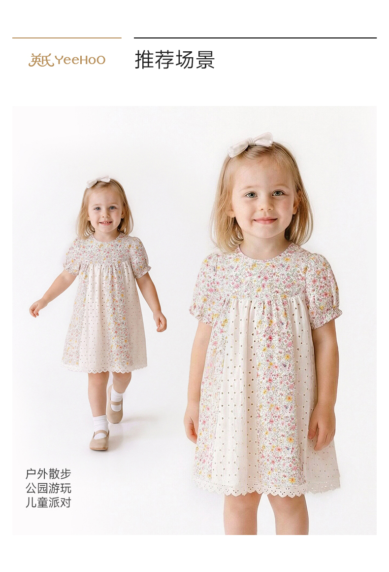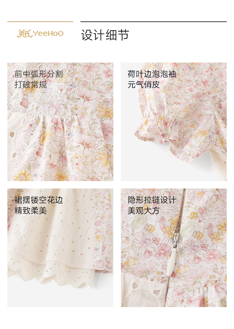 英氏女童裙子夏季小女孩公主裙休闲甜美女生连衣裙女宝宝碎花裙