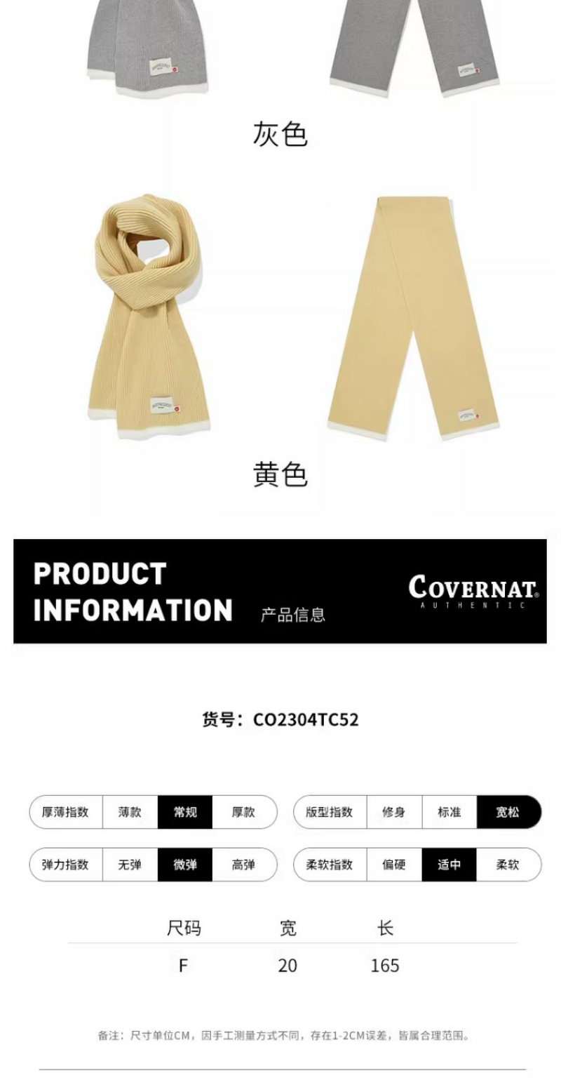 Covernat潮牌冬季新款女保暖马卡龙色围巾潮牌CO2304TC52