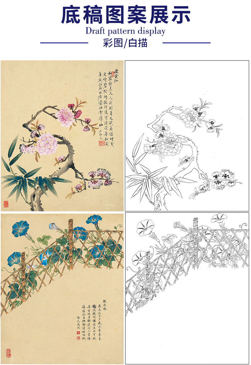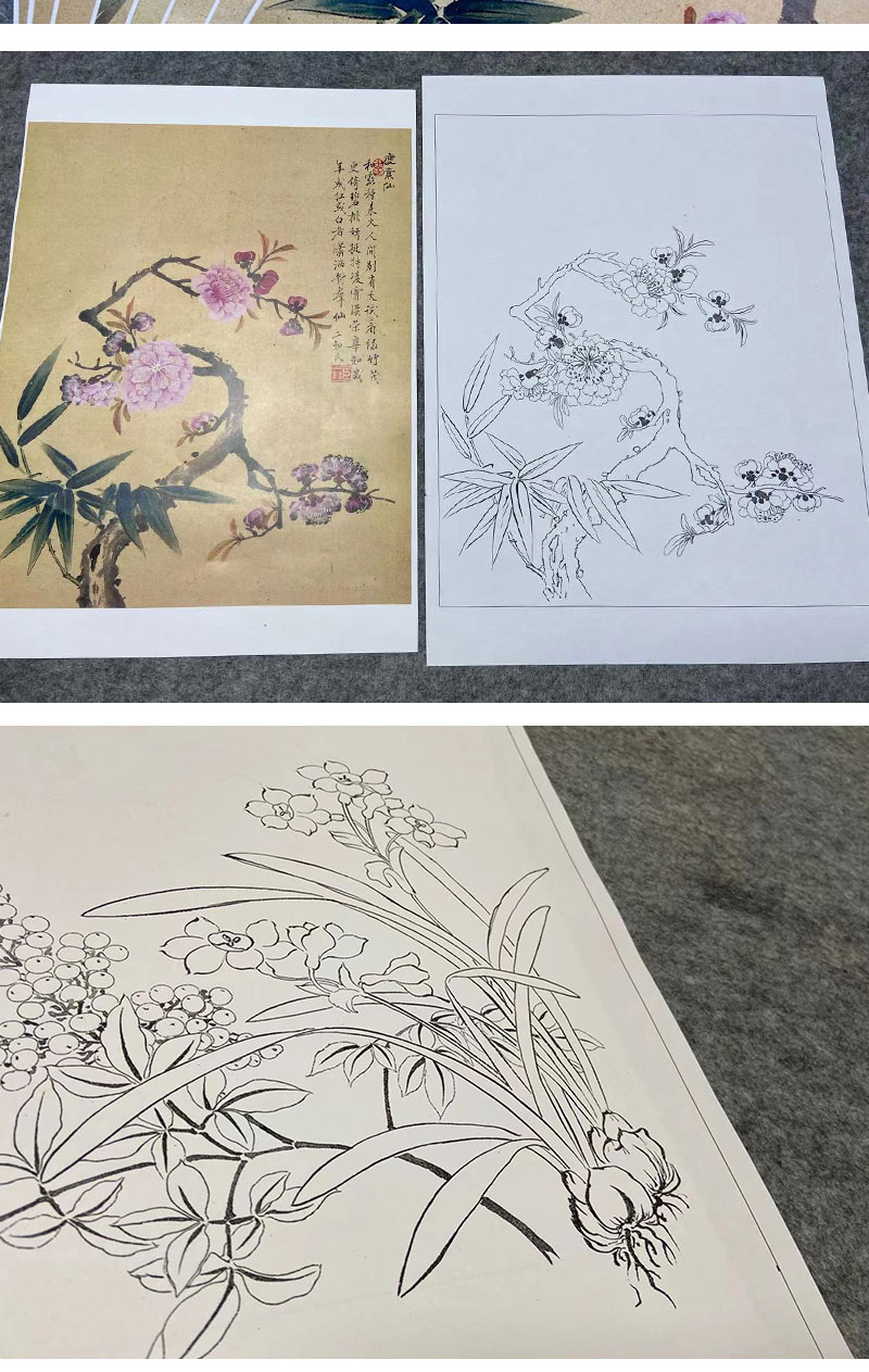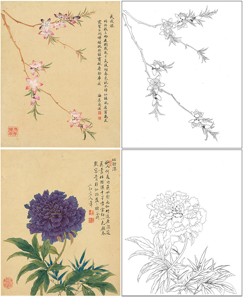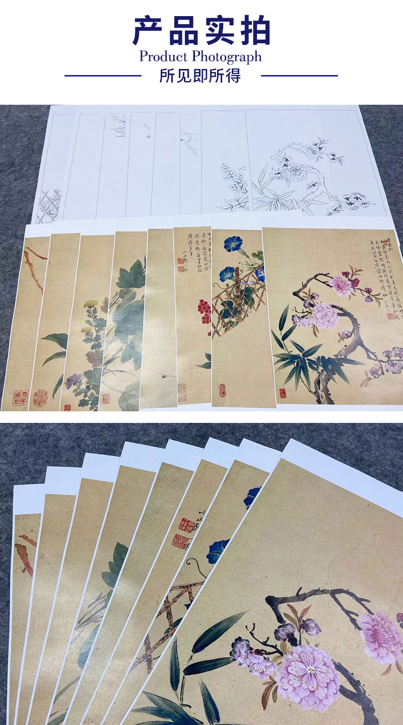邹一桂工笔花鸟画白描底稿花卉图册小品一套八幅册页初学者尺寸30*37厘米MT23