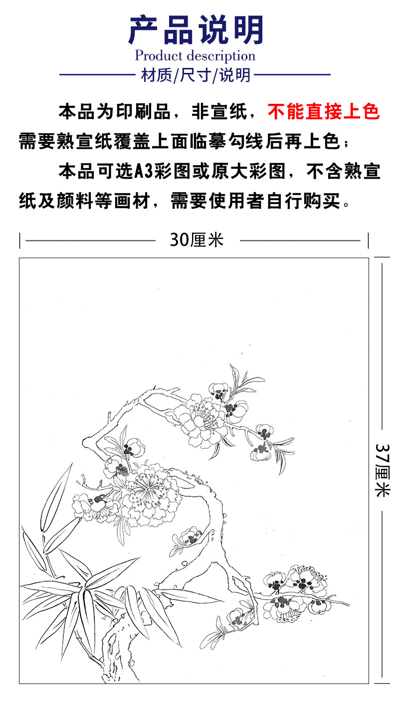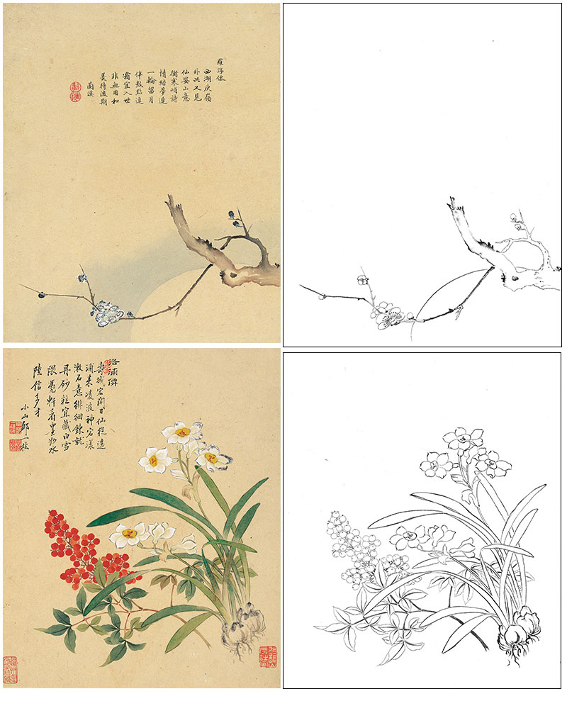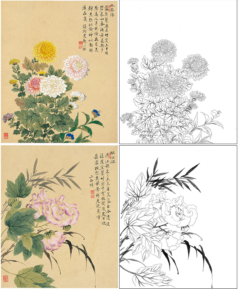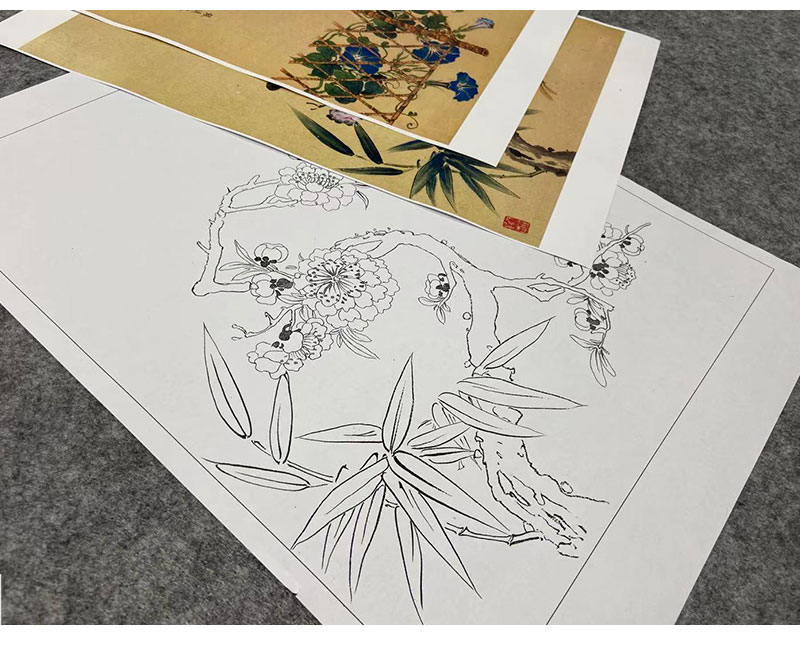 邹一桂工笔花鸟画白描底稿花卉图册小品一套八幅册页初学者尺寸30*37厘米MT23