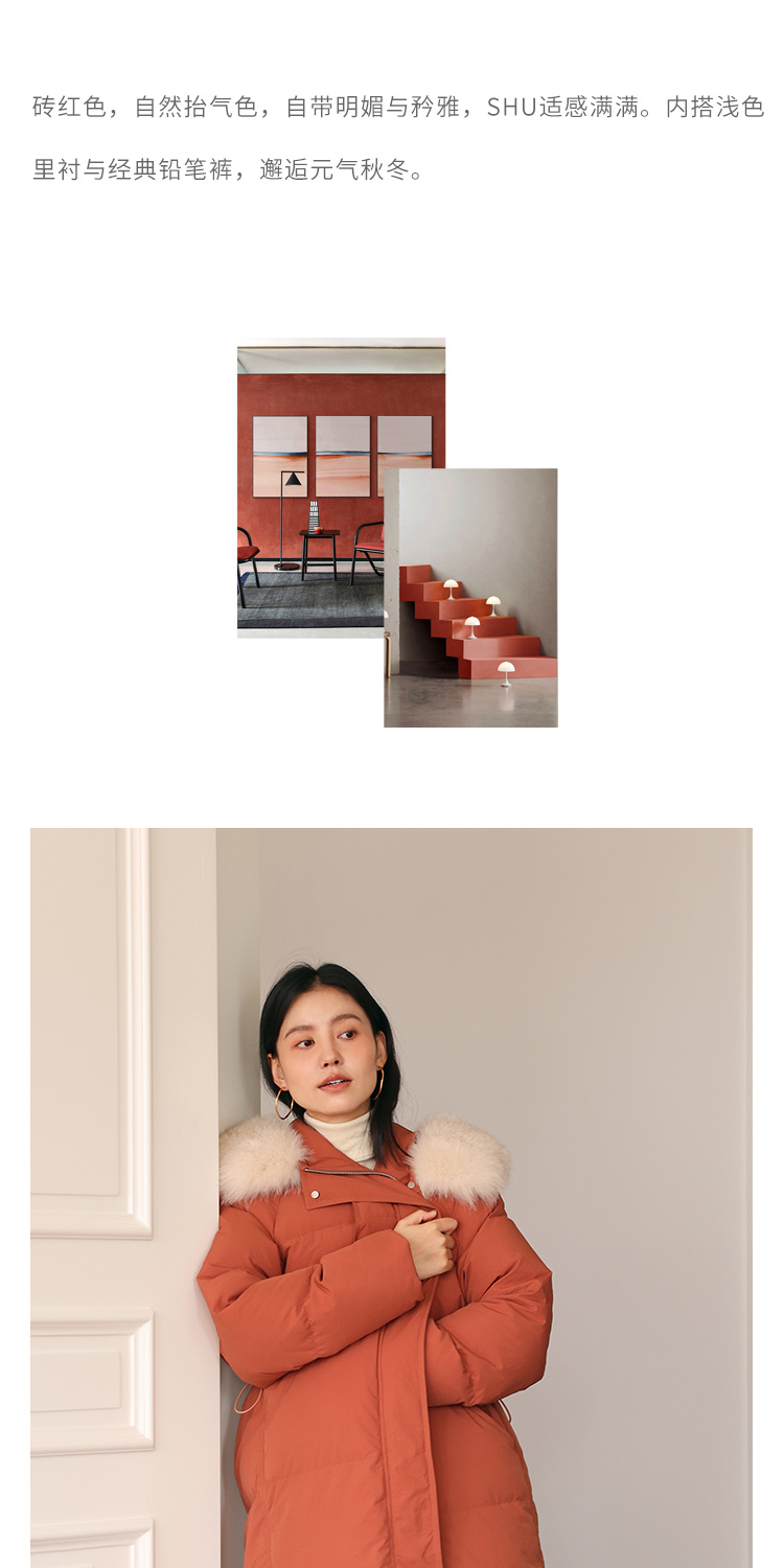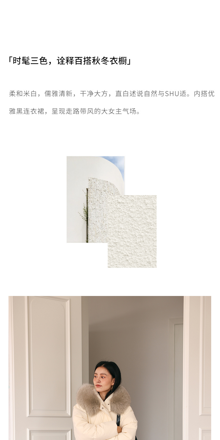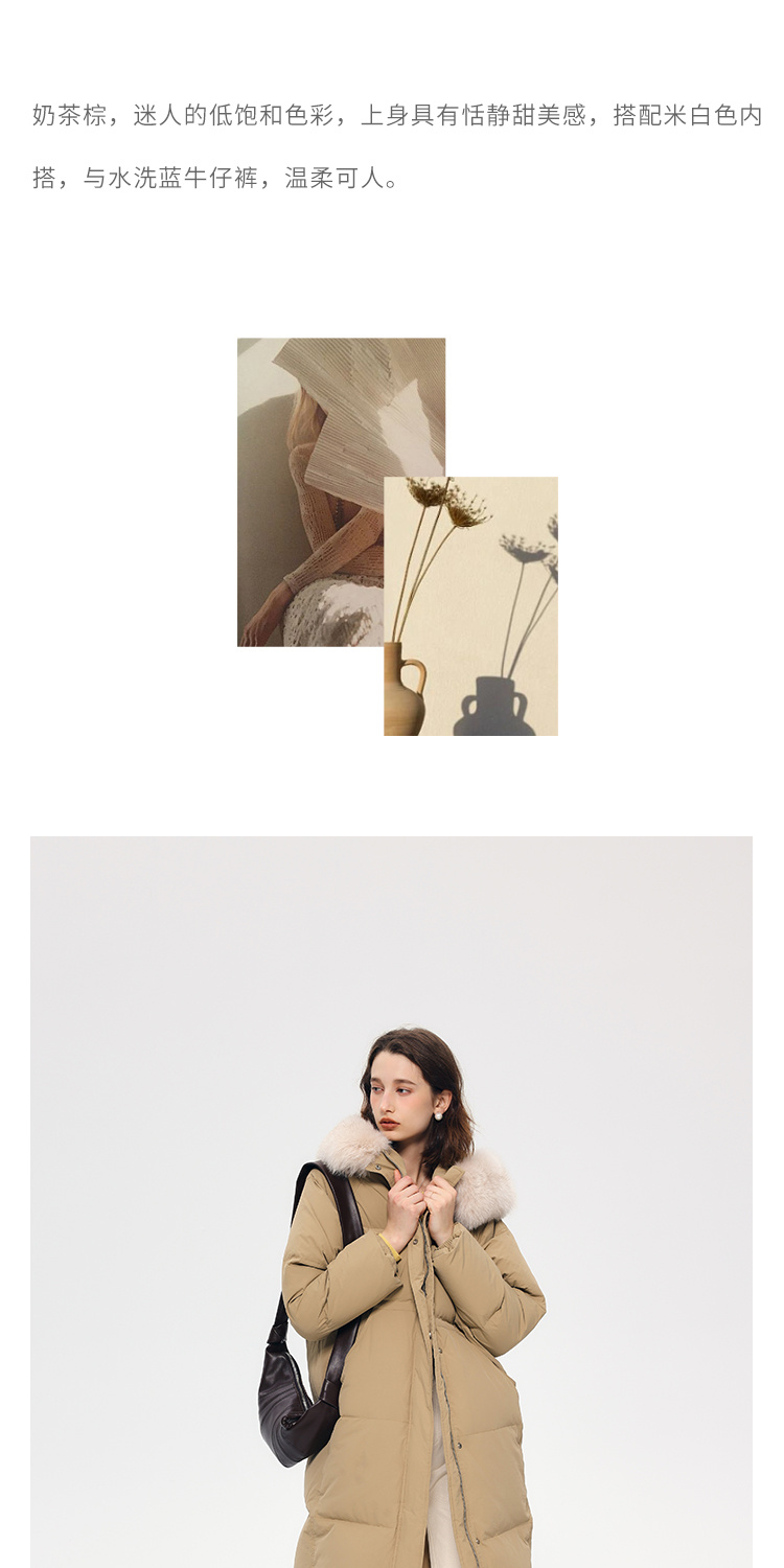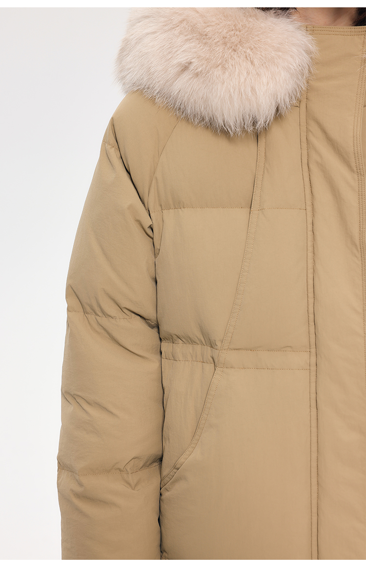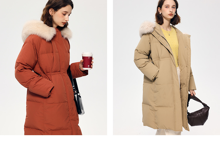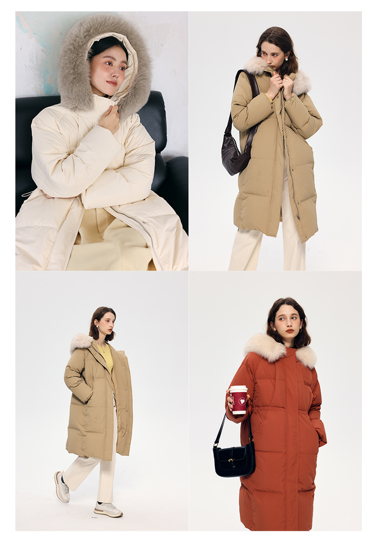 HeyDress蓝狐毛连帽羽绒服女冬季宽松收腰高克重白鸭绒中长款外套