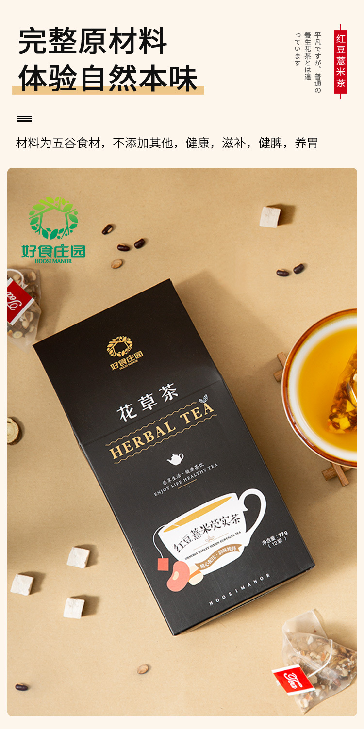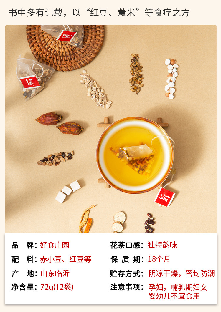 【好食庄园】红豆薏米茶 6g*12袋 夏季花草水果组合三角茶袋泡茶